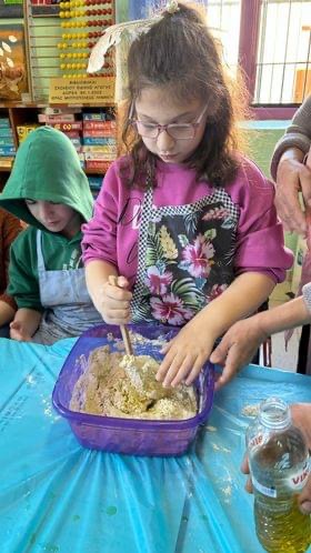 Κάθε παιδί είναι υπεύθυνο για να φροντίσει τη δική του σπορά. Όσο περιμένουν να δώσει ο μόχθος τους καρπό, απολαμβάνουν το ψωμί που ζύμωσαν μόνα τους με αλεύρι Λήμνου. Και κάπως έτσι, παίζοντας, έρχονται σε επαφή με έννοιες όπως η βιωσιμότητα, τα τοπικά τροφικά συστήματα, η συμμετοχή στη διαχείριση και την προστασία τους.