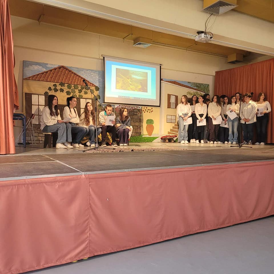 Σχεδόν το σύνολο των μαθητών του Γενικού Λυκείου Μούδρου έλαβε μέρος στην επιμελώς σχεδιασμένη εκδήλωση από τη φιλόλογο του σχολείου κ. Λιζέτα Ταραμάνη με την αρωγή της Σχολικής Νοσηλεύτριας κ. Γιωτας Καραμπετσου .
