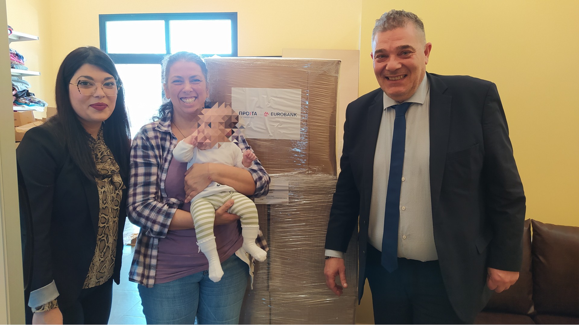 Από την πλευρά της η Αντιδήμαρχος ευχαρίστησε θερμά τόσο την τράπεζα EUROBANK όσο και τον κο Γεώργιο Κουκουλόπουλο προσωπικά για τη μεταξύ τους συνεργασία καθώς και για τη συνεισφορά της τράπεζας στην υποστήριξη των νέων μαμάδων.