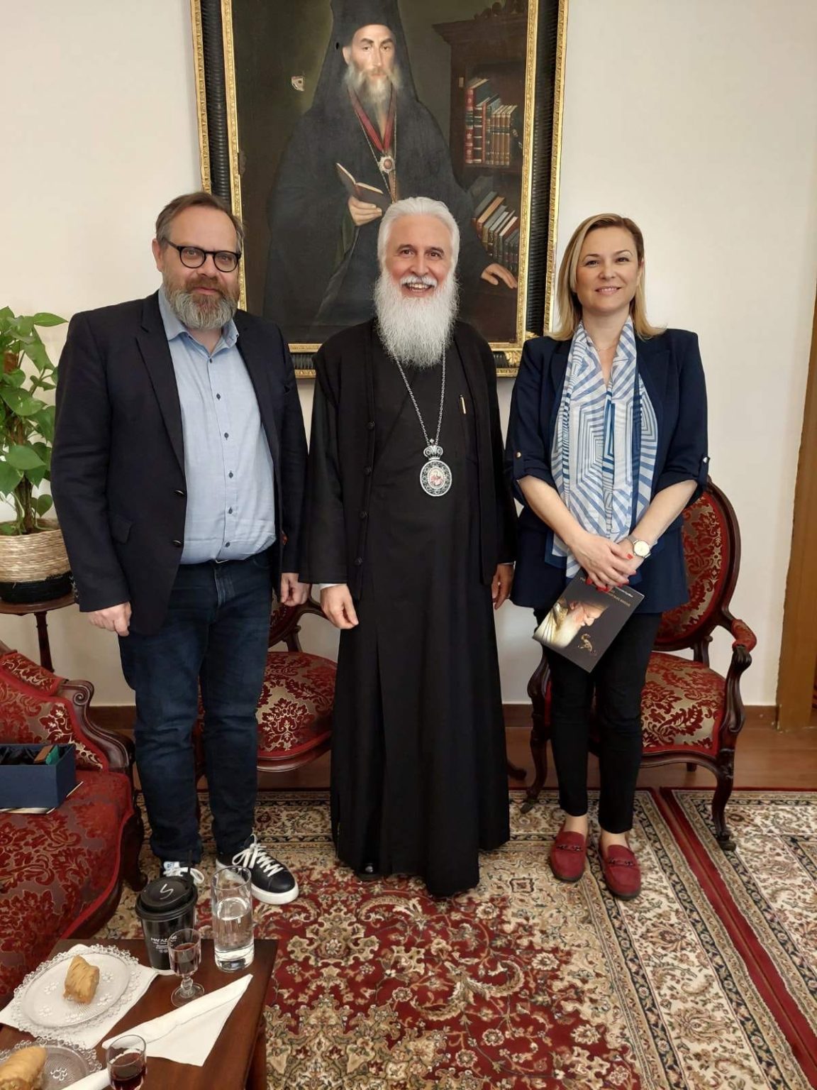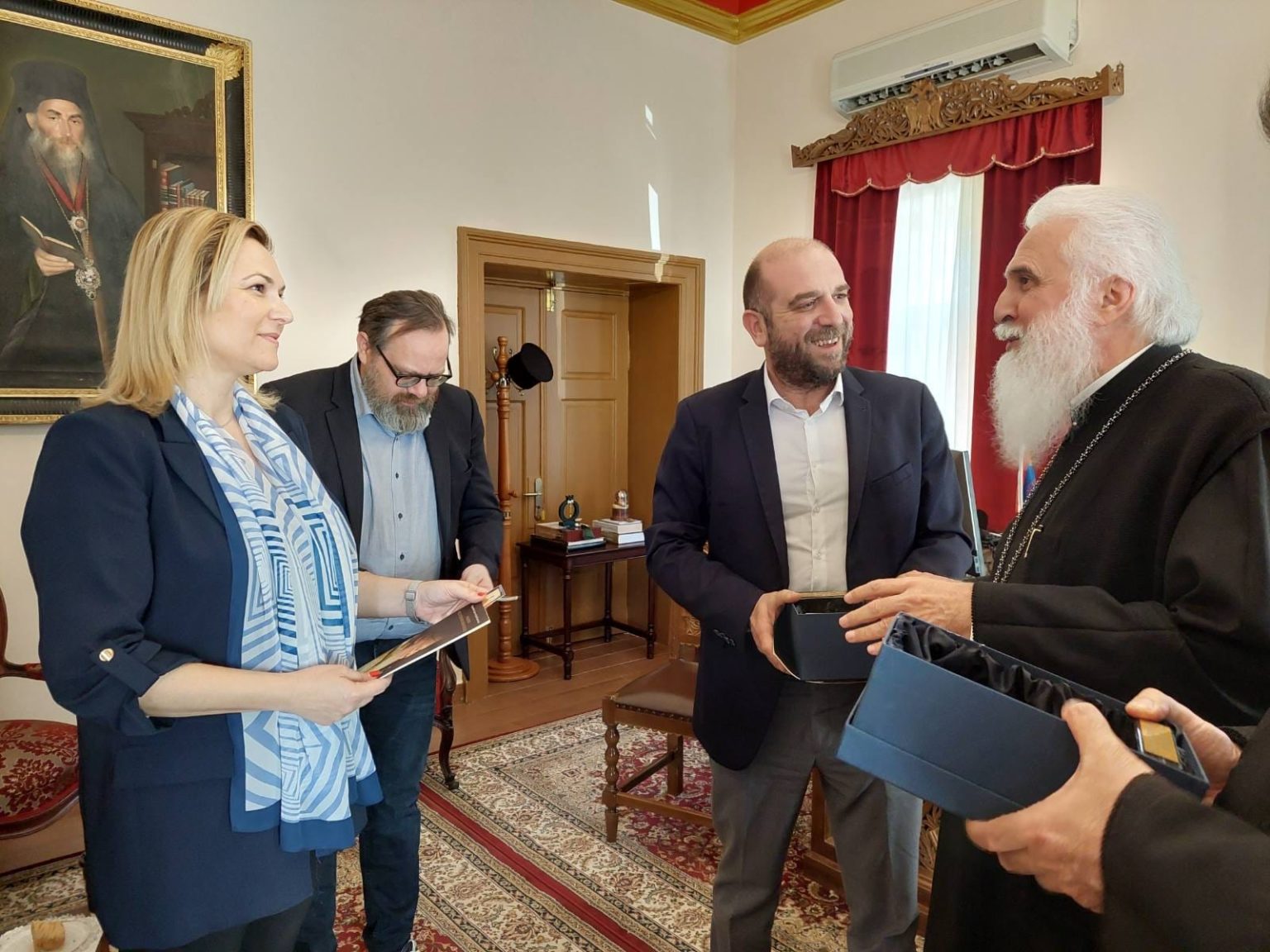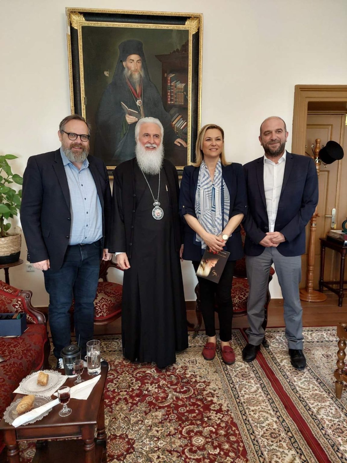 Τον Μητροπολίτη Λήμνου και Αγίου Ευστρατίου κ. Ιερόθεο επισκέφθηκαν εχθές, Παρασκευή 5/5, στην Μητρόπολη, ο Γενικός Γραμματέας Δημόσιας Τάξης του Υπουργείου Προστασίας του Πολίτη κ. Μάνος Λογοθέτης και ο Γενικός Γραμματέας Ναυτιλίας και Λιμένων του κ. Ευάγγελος Κυριαζόπουλος, οι οποίοι πραγματοποίησαν υπηρεσιακή επίσκεψη στο νησί μας.