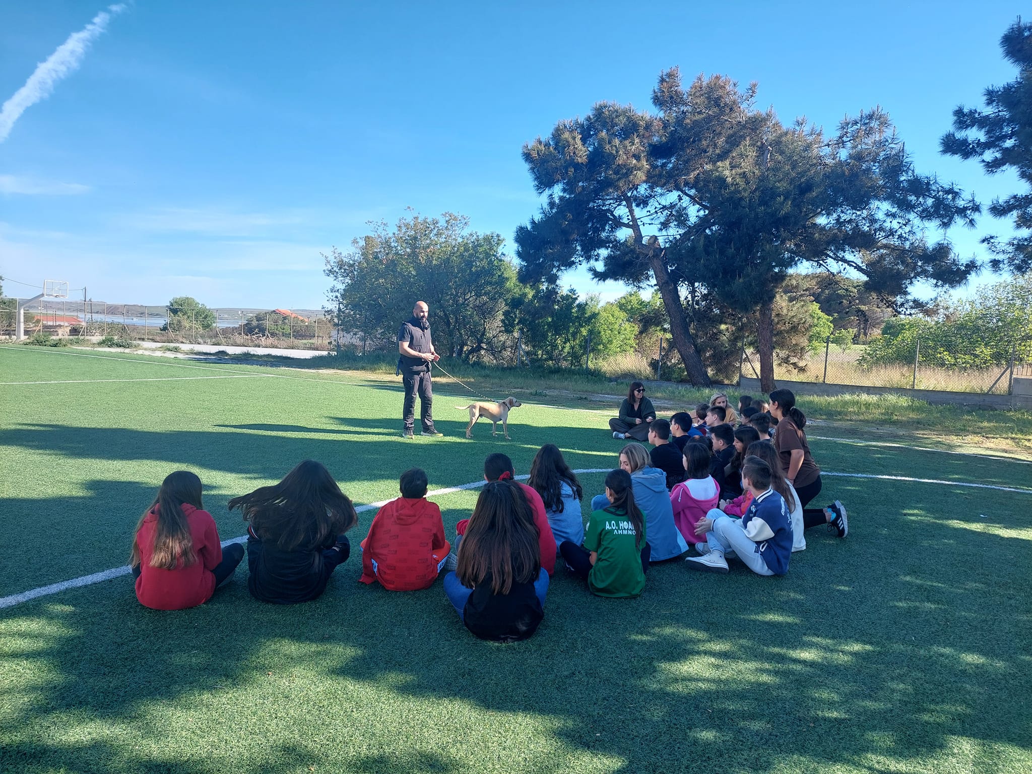 Ακολούθησε την Παρασκευή, 5 Απριλίου 2024, δράση φιλοζωίας: στο πλαίσιο υλοποίησης του εγκεκριμένου εκπαιδευτικού προγράμματος "Φροντίδα και προστασία ζώων συντροφιάς" μαθητές και μαθήτριες της Α' τάξης με τις εκπαιδευτικούς του προγράμματος είχαν την ευκαιρία να γνωρίσουν από κοντά τον εκπαιδευτή σκύλων, κ. Χρήστο Καγκή και τη δημιουργική ομάδα του. Έμειναν ενθουσιασμένοι από όσα άκουσαν και έμαθαν και ήρθαν σε επαφή με σκύλους συντροφιάς και την εκπαίδευσή τους.