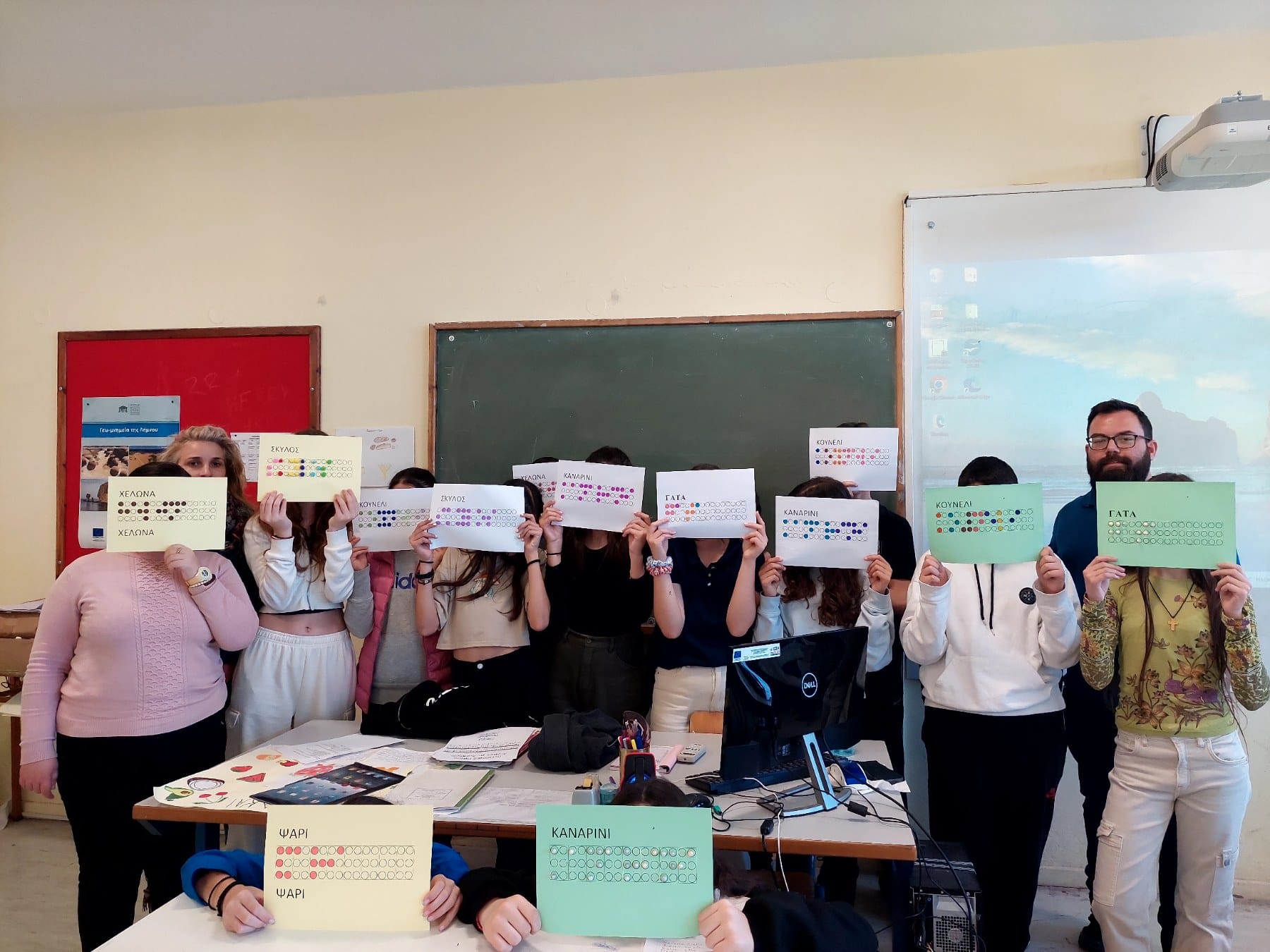 Με αφορμή την παγκόσμια ημέρα αδέσποτων ζώων στις 4 Απριλίου σε μια προσπάθεια ευαισθητοποίησης των μαθητών/τριών οι εκπαιδευτικοί Ελένη Αβραάμ, Κρυστάλλω Πάντσιου, Ευαγγελία Τσάκου και Φωκάς Δημήτριος έμαθαν στους μαθητές τις λέξεις: σκύλος, γάτα, καναρίνι, ψάρι, χελώνα και κουνέλι στα Αγγλικά, Γαλλικά, Γερμανικά, Braille αλλά και στην νοηματική γλώσσα. Ευχαριστούμε πολύ τους μαθηματικούς μας κ. Δημήτριο Φωκά και κ. Γιάννη Μεταξά για το φωτογραφικό υλικό της δράσης.