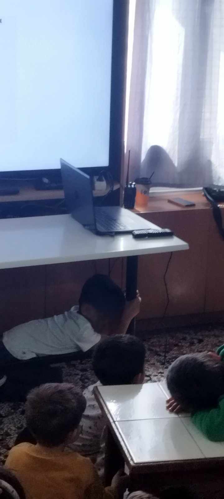 Εκεί, με την υποστήριξη και καθοδήγηση της κυρίας Πηνελόπης Μπούντου, παρακολούθησαν με προσοχή εκπαιδευτικό video για την περίπτωση εκδήλωσης πυρκαγιάς στο σχολείο, ενημερώθηκαν μέσω ηλεκτρονικού φυλλαδίου για την αντιμετώπιση σεισμού και με τη βοήθεια ενός μαθητή μας υπό την καθοδήγηση της υπεύθυνης του προγράμματος έγινε βιωματική παρουσίαση αντίδρασης κατά τη διάρκεια σεισμού!