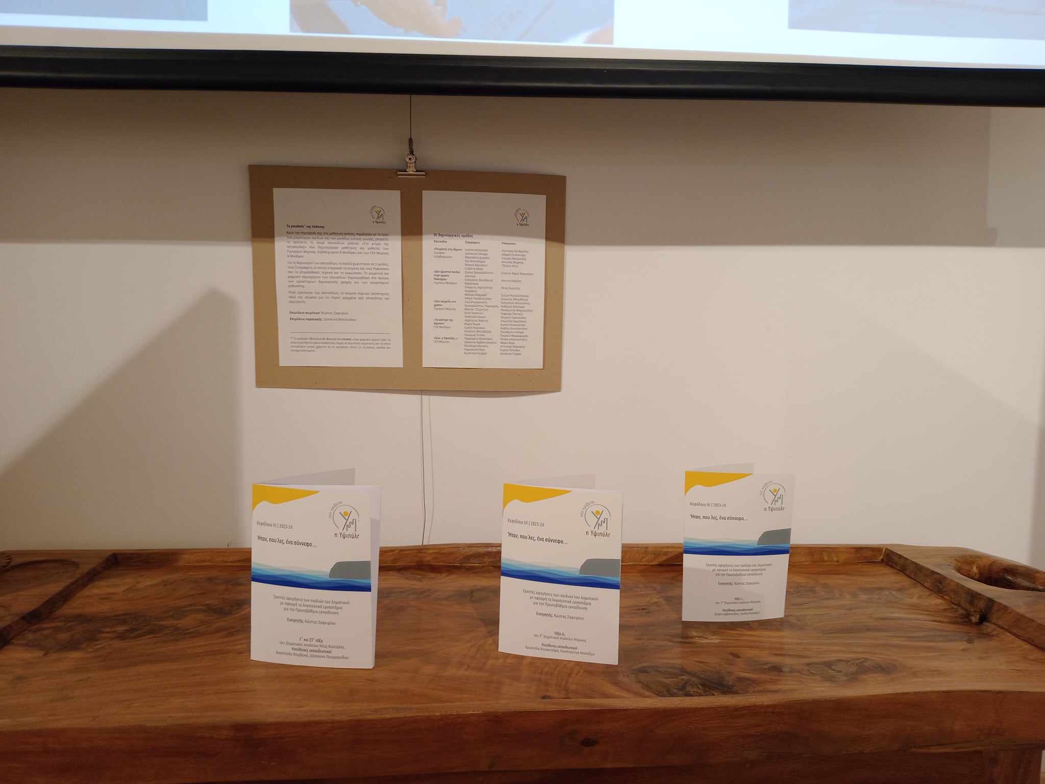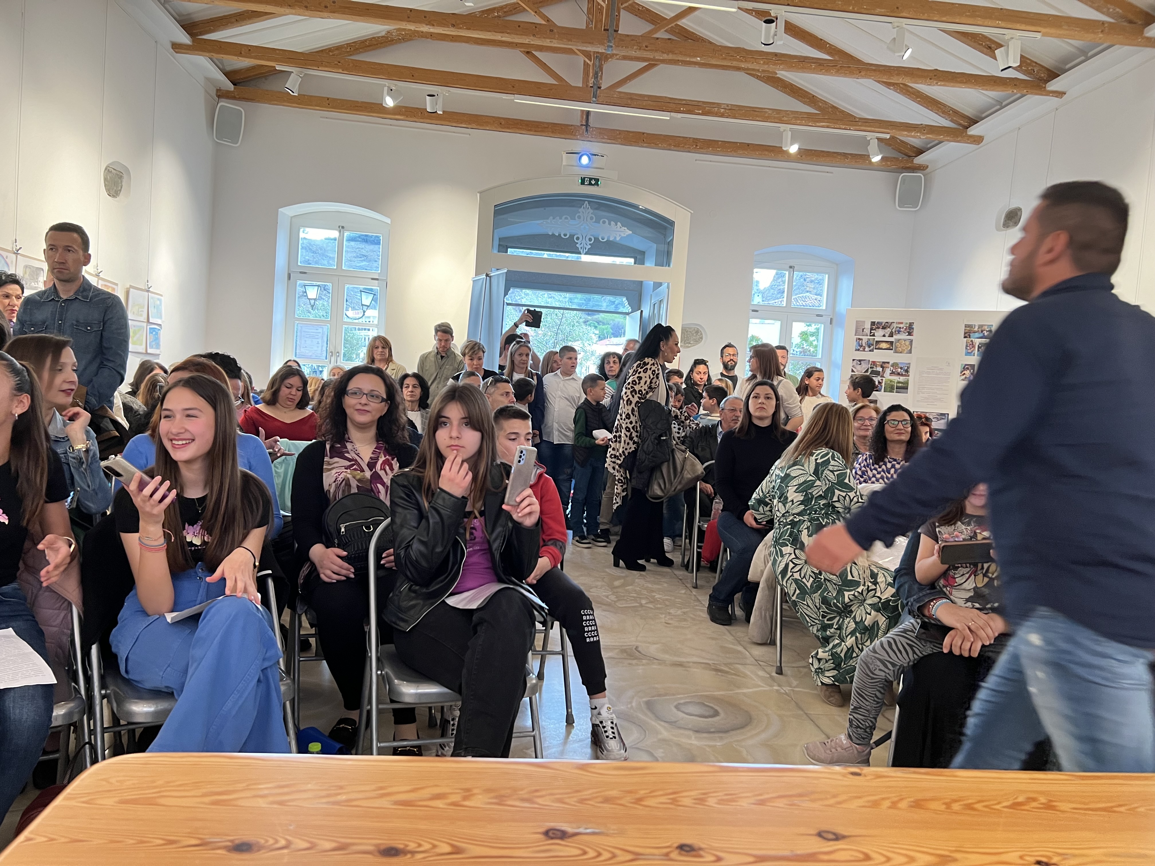 Τη γιορτή πλαισίωνε μαθητική έκθεση με τα εικαστικά, συγγραφικά, ηχητικά, ακόμη και κηπουρικά έργα των 10 σχολικών ομάδων που συμμετείχαν στις δράσεις και τα εργαστήρια του Κεφαλαίου ΙΙΙ του προγράμματος.