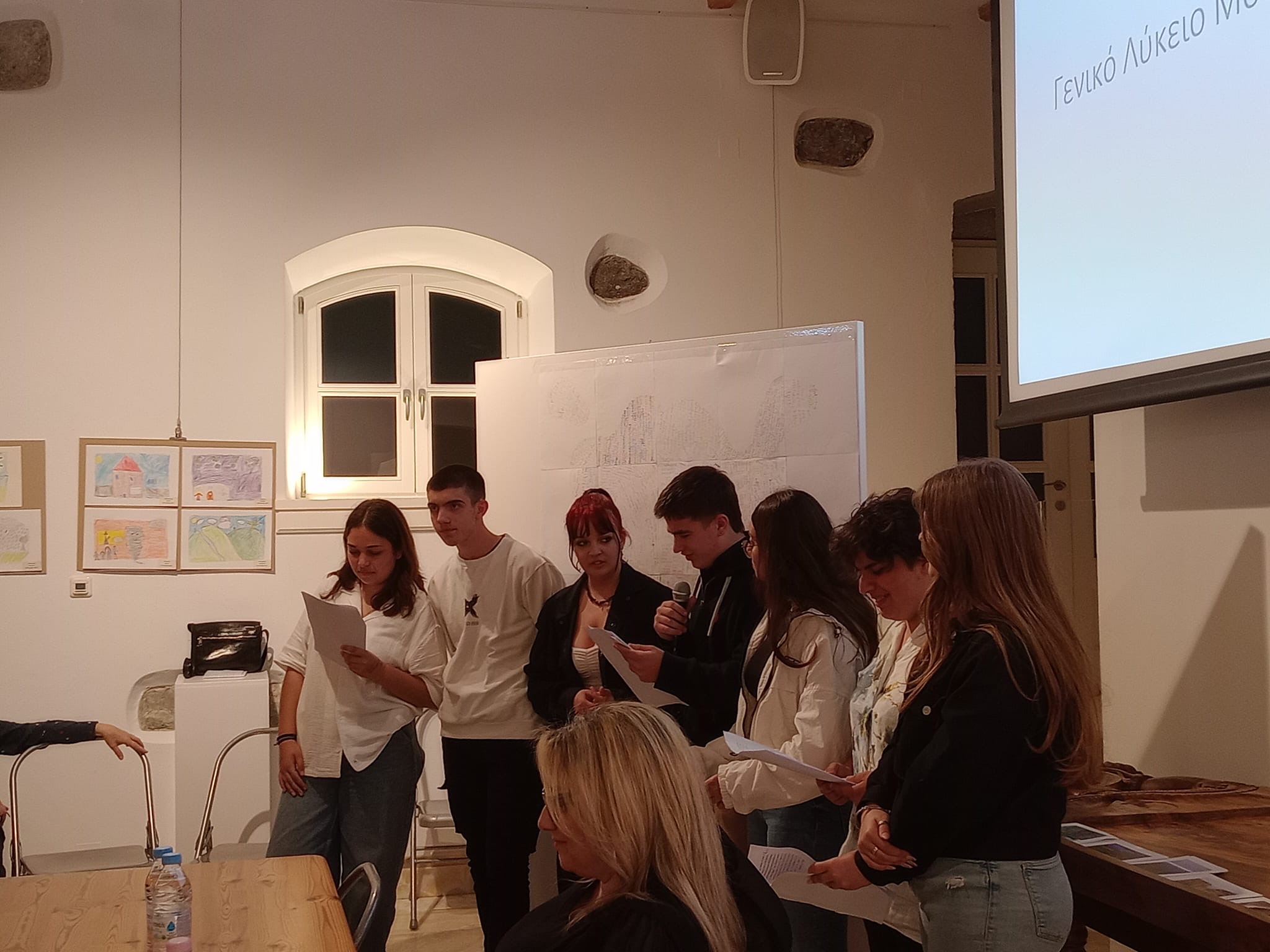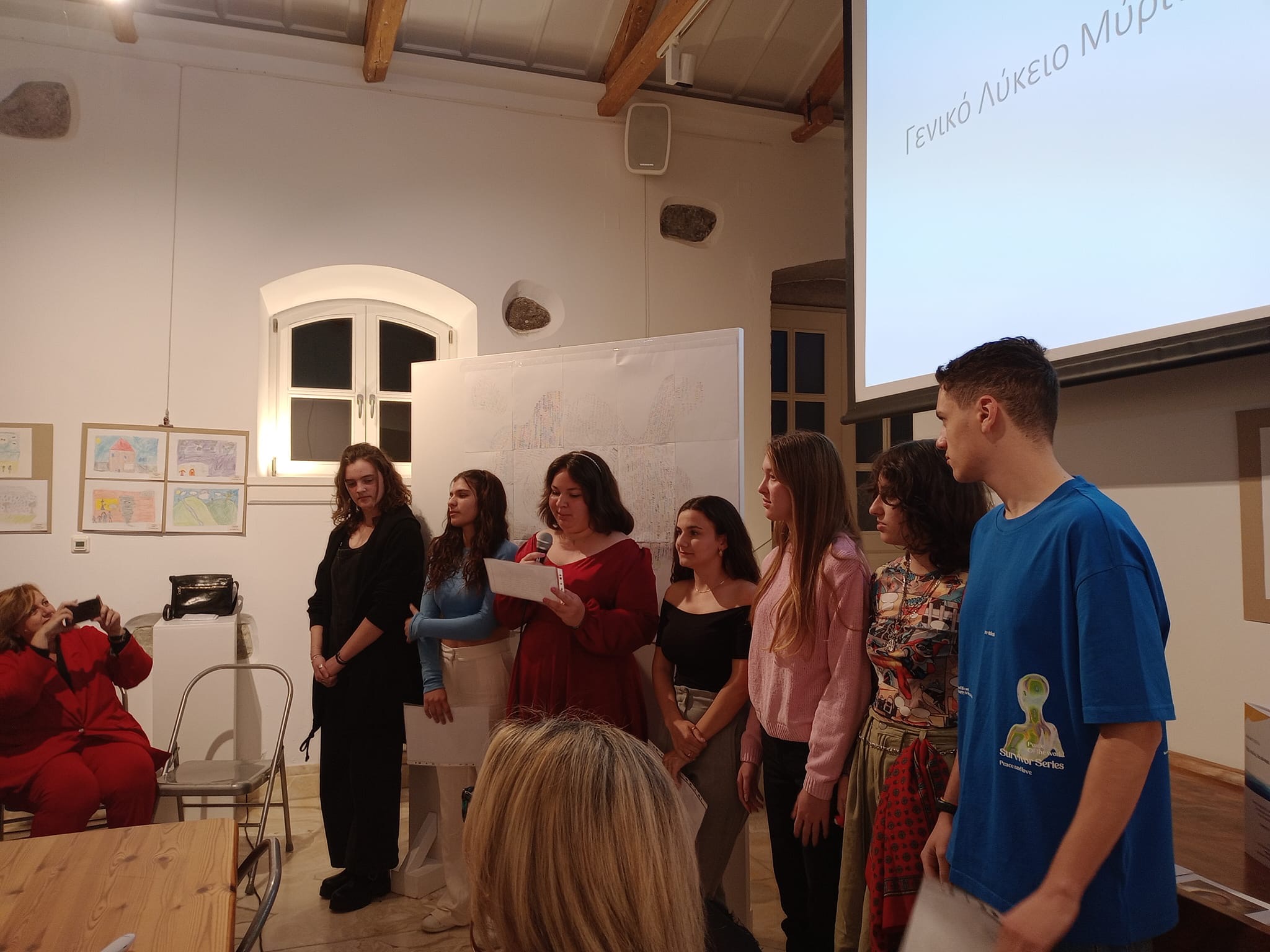 Το 1ο Δημοτικό Μύρινας μας μίλησε για όσα αποκόμισε από το λογοτεχνικό και τα εικαστικά εργαστήρια. Το Γυμνάσιο Μύρινας αναφέρθηκε στην εμπειρία του από τα εργαστήρια δημιουργικής γραφής και το ΓΕΛ Μύρινας στα εργαστήρια podcasting.