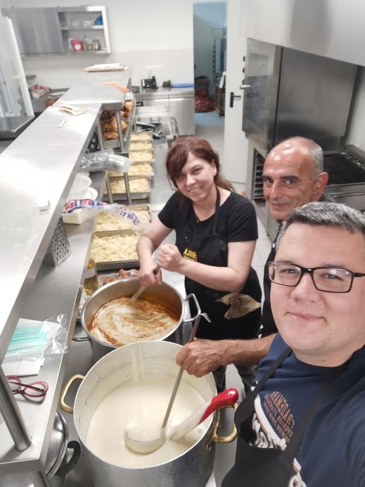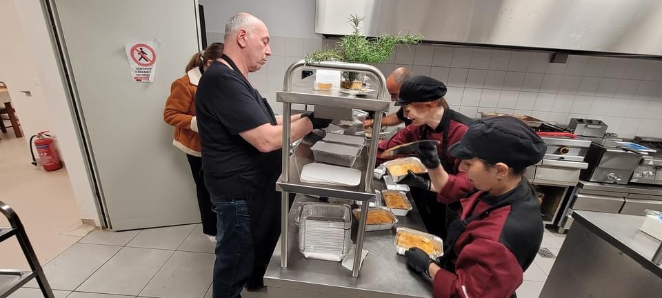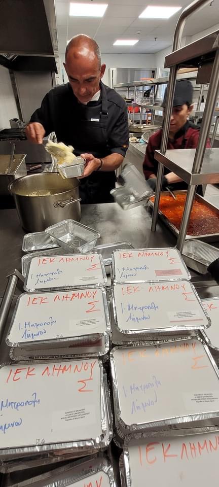Με τη χορηγία, από την Ιερά Μητρόπολη Λήμνου & Αγίου Ευστρατίου και τη Μονάδα Φροντίδας Ηλικιωμένων Σωματείο "Ο ΚΑΛΟΣ ΣΑΜΑΡΕΙΤΗΣ", όλων των απαραίτητων υλικών, που χρειάστηκαν για την παρασκευή των φαγητών, ο έμπειρος chef - Εκπαιδευτής του ΙΕΚ, Ηλίας Κελεμένης, μαζί με τους σπουδαστές του Τμήματος «Τεχνικός μαγειρικής τέχνης -Αρχιμάγειρας Chef της Σχολής μαγείρεψαν 242 ΓΕΥΜΑΤΑ ΑΓΑΠΗΣ, στην επαγγελματική κουζίνα του Γηροκομείου Λήμνου, που χρησιμοποιείται για την πραγματοποίηση των εργαστηριακών μαθημάτων της ΣΑΕΚ.