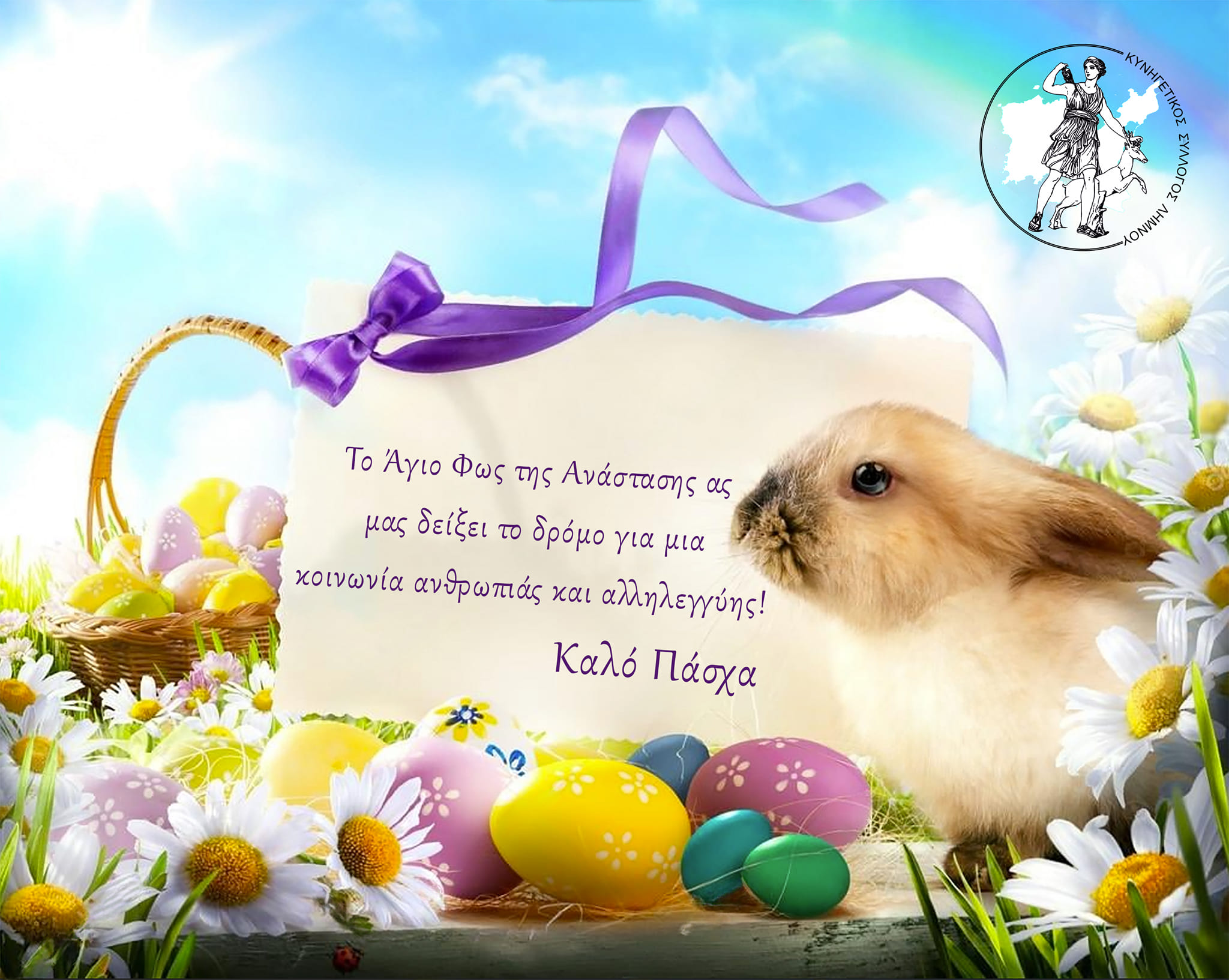 Ευχόμαστε στα μέλη και τους φίλους του Συλλόγου μας Καλή Ανάσταση, με υγεία. Το Άγιο Φως να γεννήσει στις ψυχές όλων ελπίδα, αγάπη και σεβασμό και δύναμη!!!!»