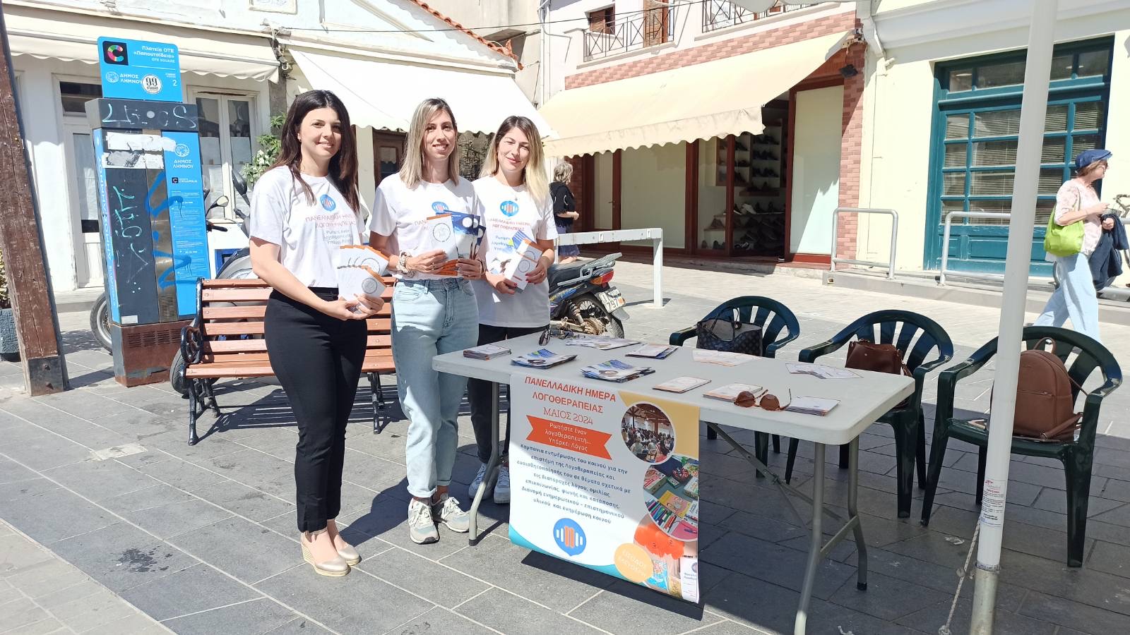 Αυτό έκαναν από το πρωί σήμερα στην πλατεία Υψιπύλης τρεις λογοθεραπεύτριες από τις 6 που δραστηριοποιούνται στη Λήμνο, η Έλενα Ανεστοπούλου, η Αντιγόνη Νασούλη και η Γεωργία Τσίνα, δίνοντας πληροφορίες και χρήσιμο υλικό για τα στάδια ανάπτυξης λόγου και Ομιλίας του παιδιού αλλά και για τις πιο συχνές διαταραχές.