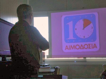 Εχθές, ο πρόεδρος του Συλλόγου Αιμοδοτών Λήμνου, Βάιος Καλλιγερής, επισκέφτηκε το σχολειό και ενημέρωσε τα παιδιά για την αιμοδοσία και τις δράσεις των Συλλόγων Εθελοντών Αιμοδοτών.