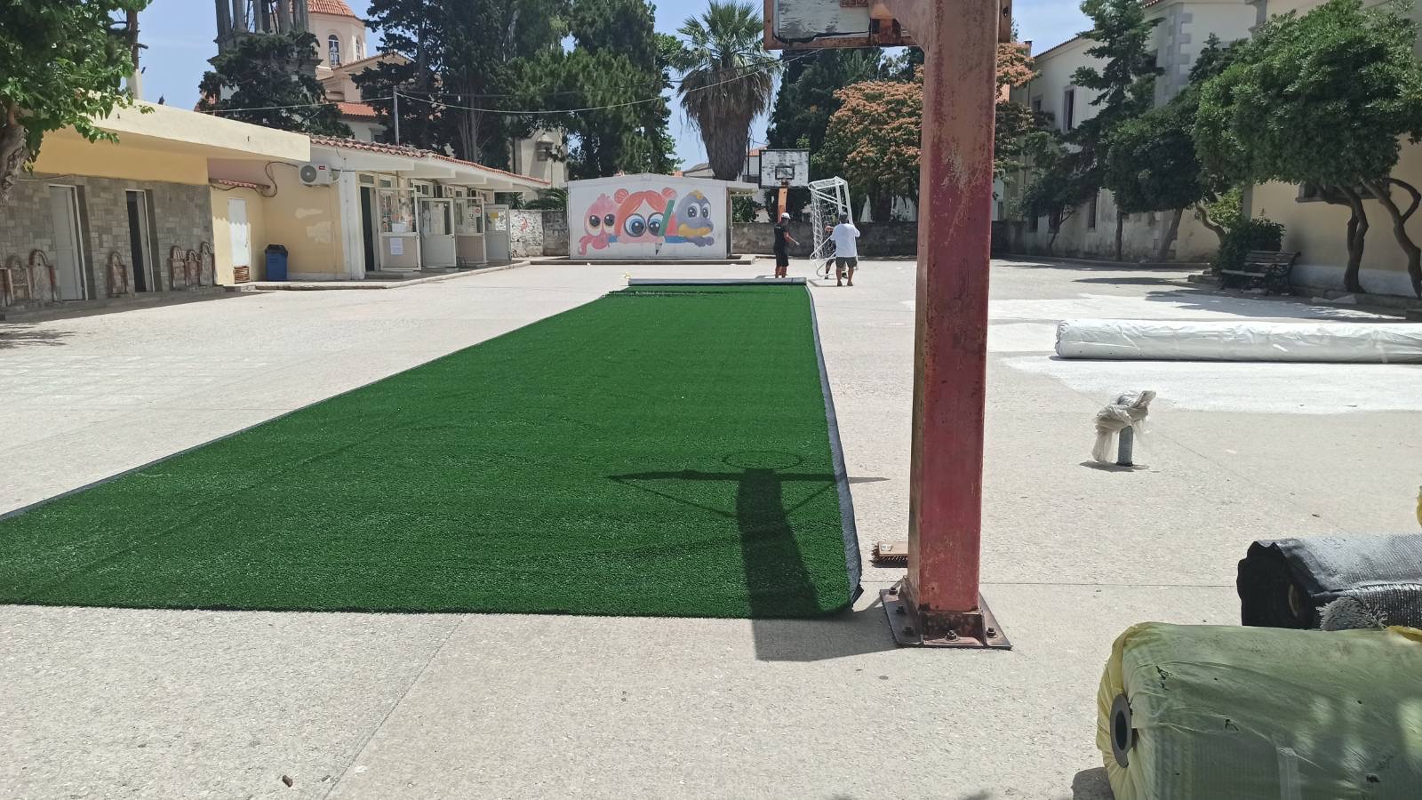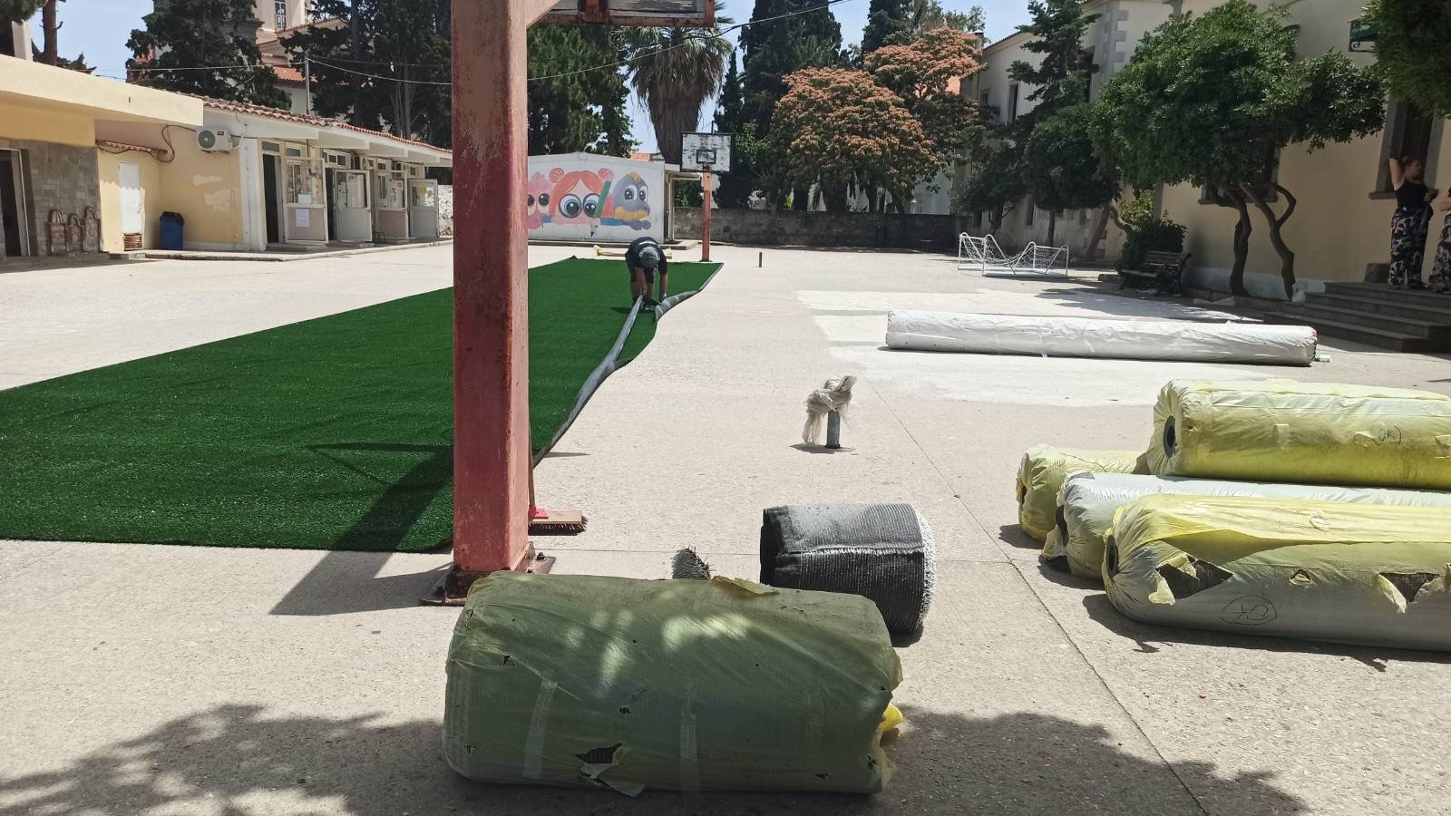 Η πραγματικότητα είναι ότι ο χλοοτάπητας ως προσωρινό μέτρο είναι απαραίτητο, ωστόσο, το κτίριο δεν καλύπτει τις σύγχρονες εκπαιδευτικές απαιτήσεις της εποχής.