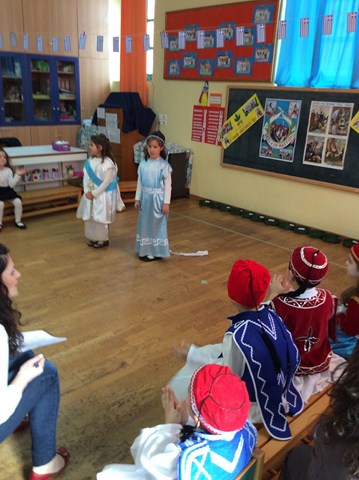 Όλοι οι ήρωες και οι ηρωίδες του 21 με τις παραδοσιακές τους φορεσιές, πέρασαν από τη σκηνή του 1ου νηπιαγωγείου Μύρινας και όπως λεει ο ποιητής "Γυναίκες Σουλιώτισσες, ξαφνιάσματα της φύσης, εχθρέ γιατί δεν ρώτησες ποιον πας να κατακτήσεις"...