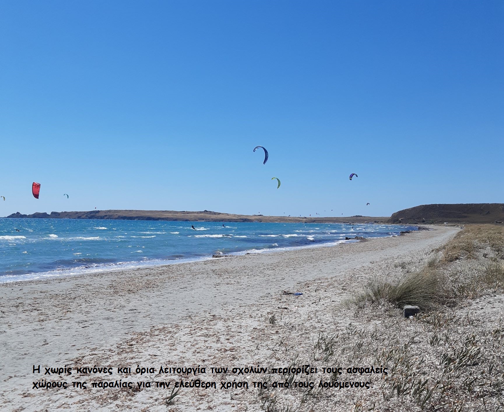 Στην περίπτωση της παραλίας του Κέρους και με δεδομένο ότι ήδη έχουν αναπτυχθεί επιχειρηματικές δραστηριότητες με αθλήματα και όχι μόνο, θέση μας είναι να μπουν κανόνες και όρια για το πόσες σχολές Kitesurfing, surfing και πόσα beach bar μπορεί να υπάρχουν στο Κέρος. Να εφαρμοστεί η νομοθεσία που ορίζει ότι το 50% της παραλίας πρέπει να είναι ελεύθερη. Με βάση αυτή τη θέση, ψηφίζουμε και το σχετικό ψήφισμα του Δημοτικού Συμβουλίου που ζητά την αναθεώρηση της απόφασης των Υπουργείων.