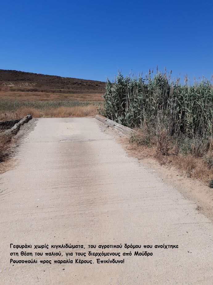 - Τη συντήρηση – επισκευή παραλιακού δρόμου και δρόμου προσέγγισης του Κέρους. Αυτή τη στιγμή έχει επισκευαστεί μόνο ο δρόμος προσέγγισης στην παραλία του Κέρους και μόνο με ξύσιμο του δρόμου χωρίς επιχωμάτωση, γεγονός που θα τον κάνει αδιάβατο με τις πρώτες βροχές. Αγροτικός δρόμος που χρησίμευε για την πρόσβαση λουόμενων κατοίκων από την περιοχή του Μούδρου και του Ρουσοπουλίου προς την παραλία του Κέρους, έχει κλειστεί και έχει ανοιχτεί άλλος μικρότερος με μια μικρή γέφυρα χωρίς κιγκλιδώματα που την καθιστούν επικίνδυνη για τα διερχόμενα οχήματα. Στον παραλιακό δρόμο δεν υπάρχουν επαρκείς χώροι πάρκινγκ. Παράλληλα, είναι ζωτικής σημασίας η επισκευή και συντήρηση της αγροτικής οδοποιίας σε όλη την περιοχή για τους κατοίκους της Καλλιόπης.