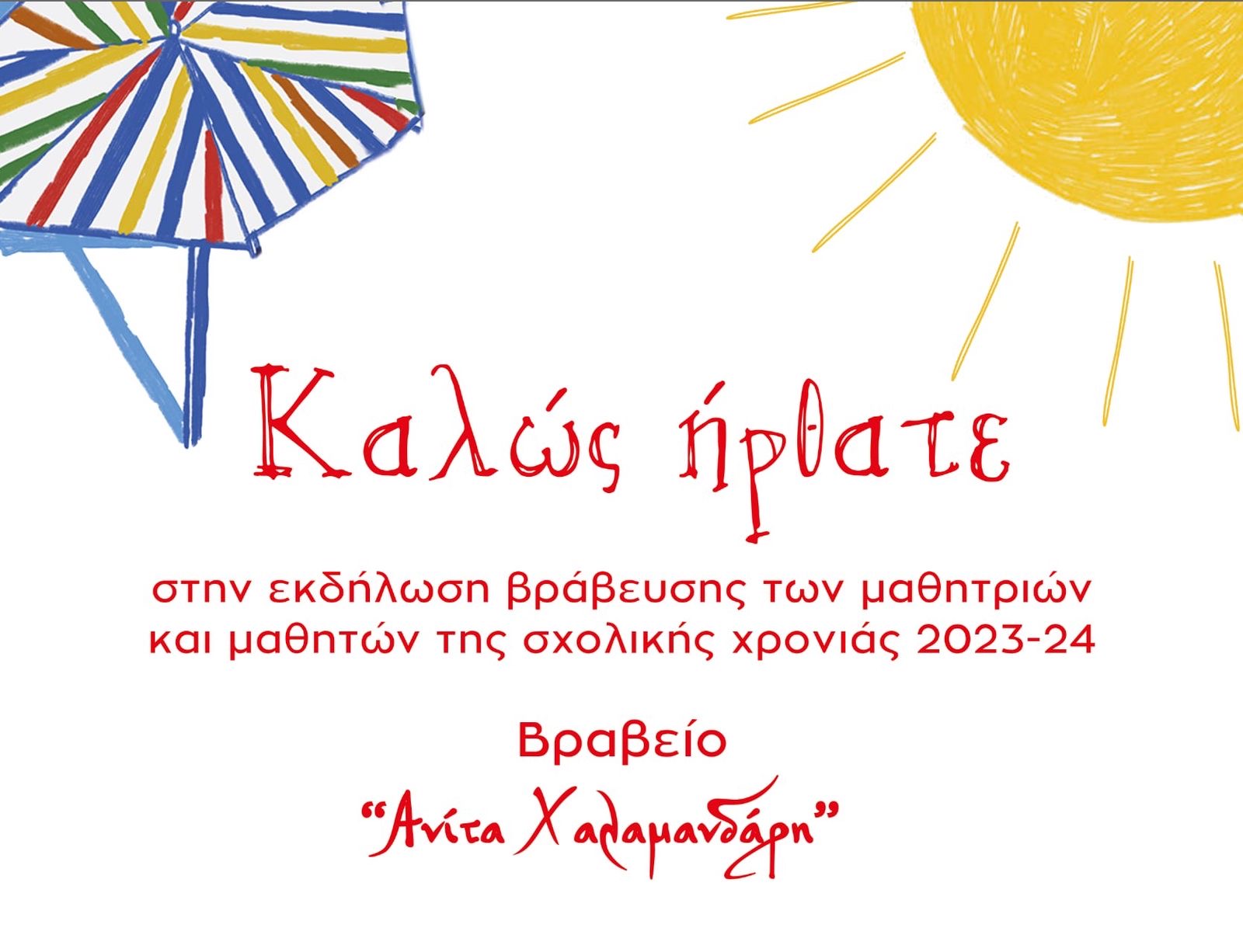 Απευθύνει συγχαρητήρια στους μαθητές που βραβεύτηκαν για τις επιδόσεις τους και τις διακρίσεις τους και στους γονείς τους, που είναι πάντα δίπλα τους, και εύχεται καλή πρόοδο σε όλα τα παιδιά!