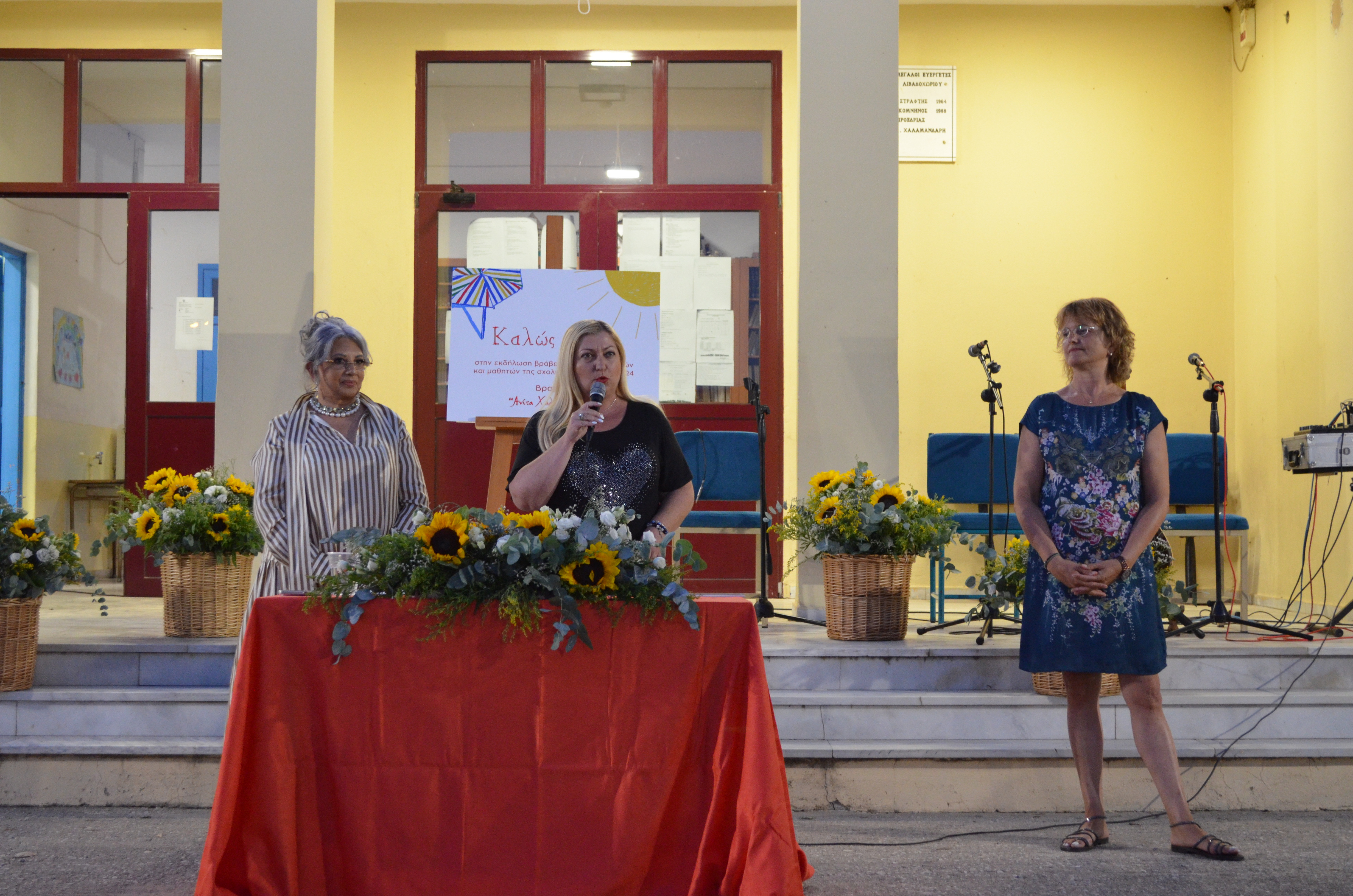 Στη διάρκεια της τελετής διαβάστηκε η συγχαρητήρια επιστολή που απέστειλε ο Συντονιστής Εκπαιδευτικού Έργου του σχολείου μας και Σύμβουλος Φιλολόγων, κ. Βασίλειος Μακρυπούλιας. Επίσης, έγινε αναφορά στη συμμετοχή του σχολείου σε Ευρωπαϊκά Προγράμματα και στα Βραβεία που απέσπασε σε Πανελλήνιους Μαθητικούς Διαγωνισμούς με δημιουργίες από τους Μαθητικούς Ομίλους Ρομποτικής, Φιλαναγνωσίας, Εθελοντισμού και Τέχνης οι οποίοι δίνουν διέξοδο στην δημιουργική έκφραση και φαντασία των παιδιών και εντάσσονται στην εκπαιδευτική του κουλτούρα.