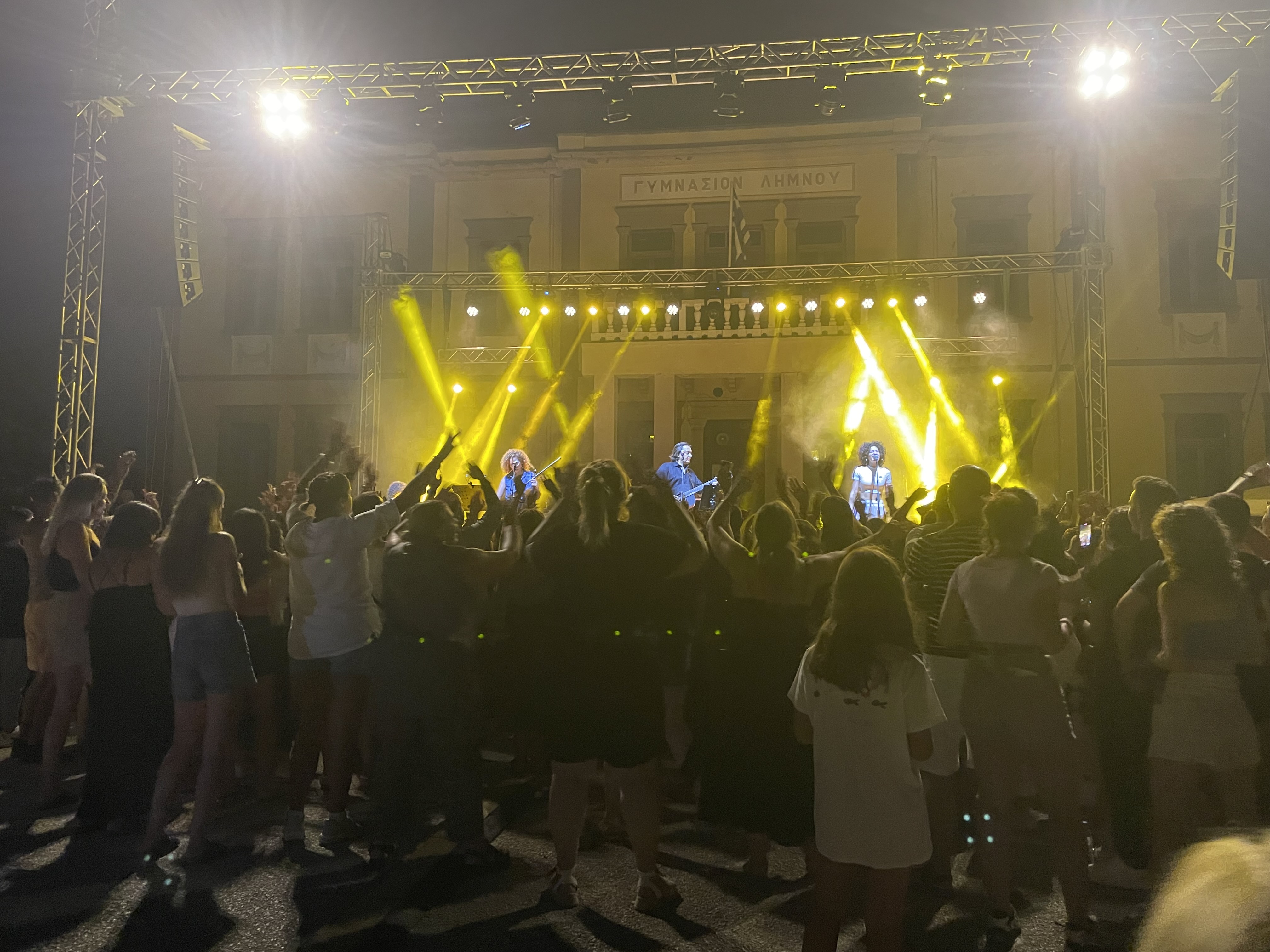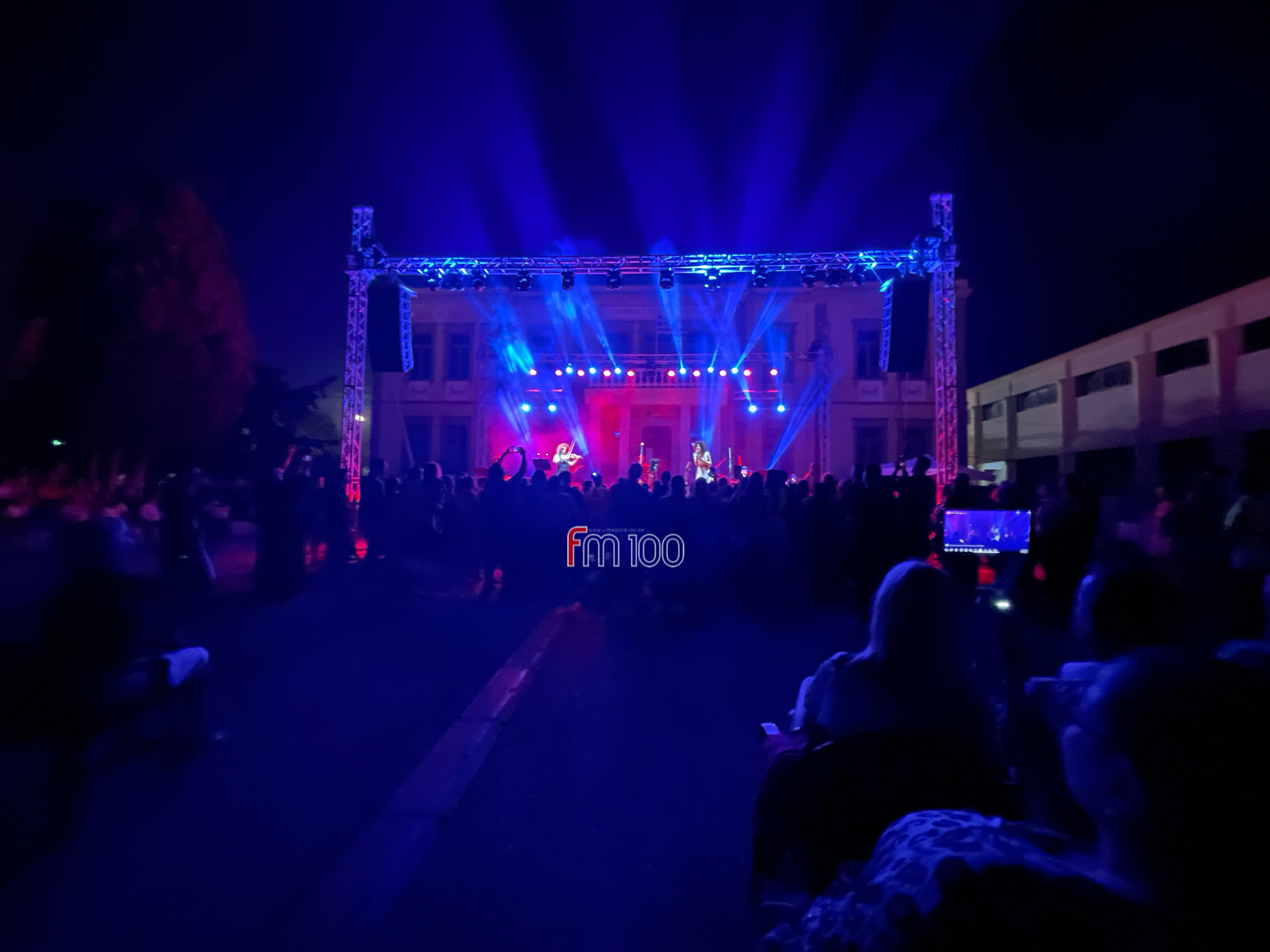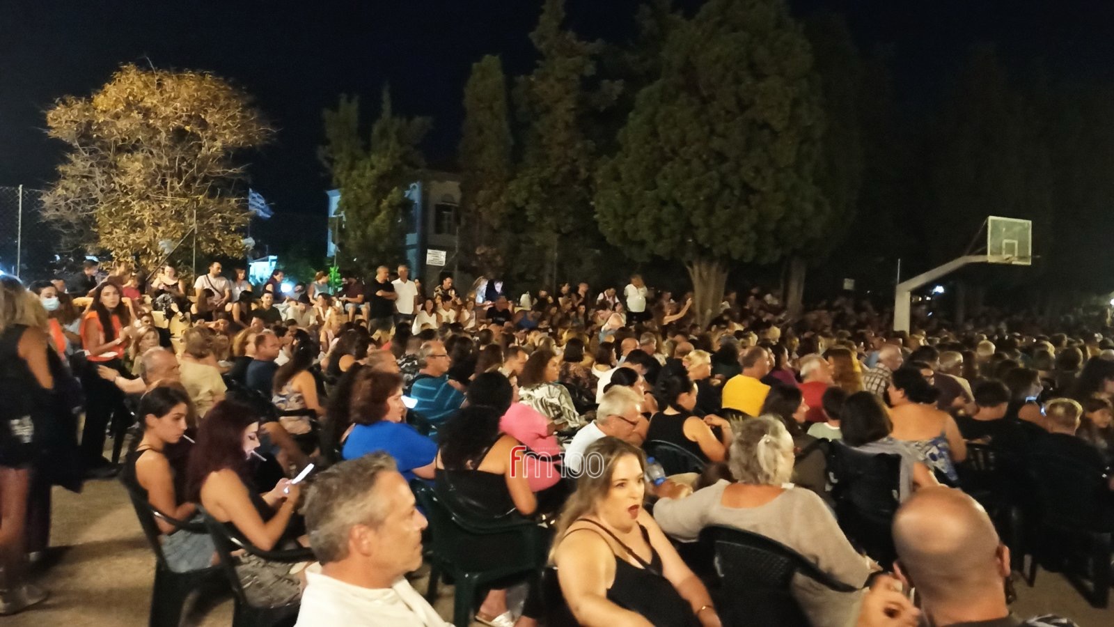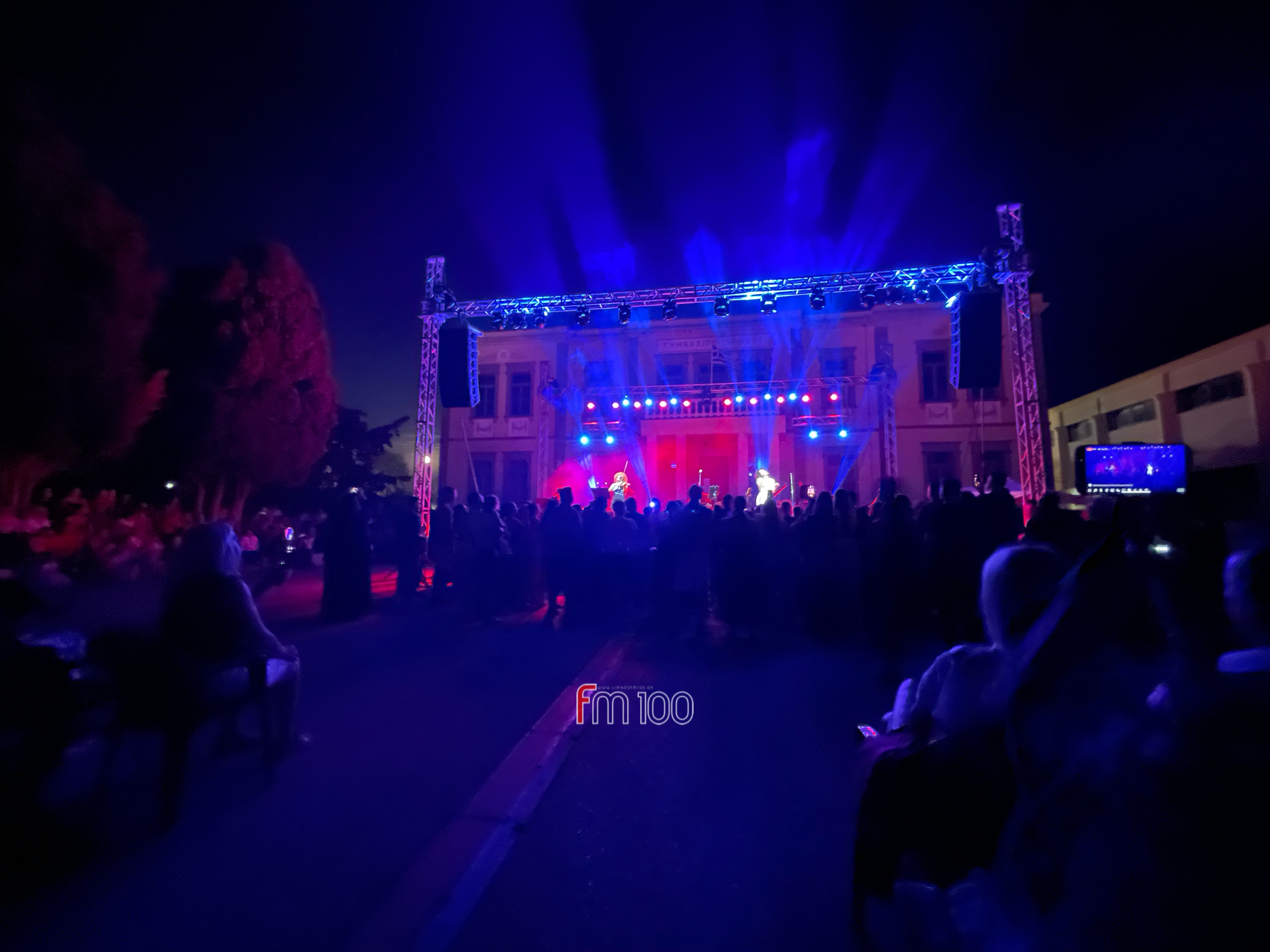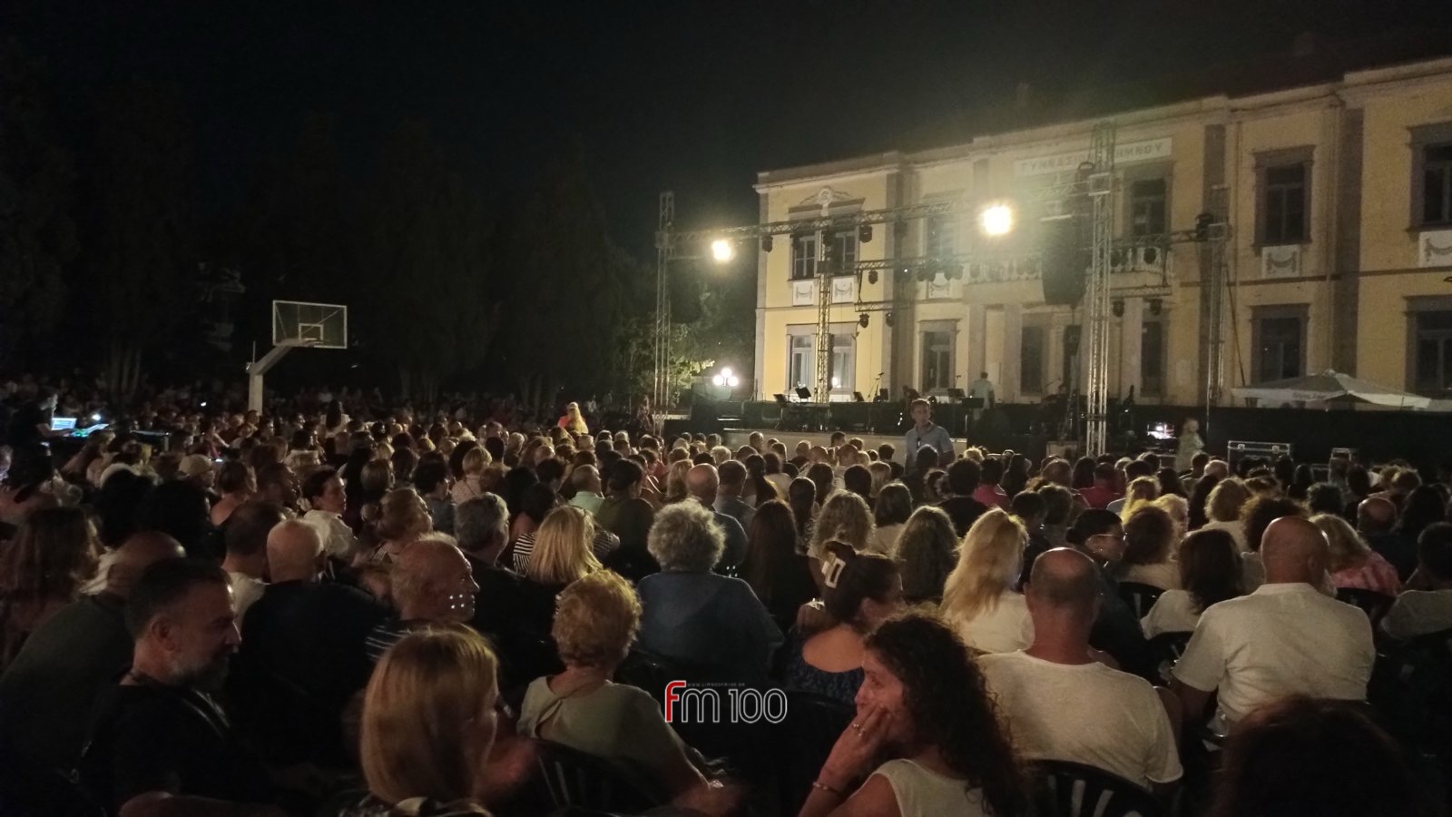 Το γκαζόν απέναντι από την είσοδο του Γυμνασίου φιλοξένησε παρέες με τραπεζάκια, καρεκλίτσες, κρασί, εδέσματα! Όμορφο και το έξω σκηνικό, συμπλήρωνε το μέσα. Τώρα που είπα εδέσματα. Από την αρχή της συναυλίας μας "έσπαγαν τη μύτη" αδιαλείπτως και χωρίς οίκτο τα καλούδια που ετοίμαζε η Δήμητρα στην καντίνα.