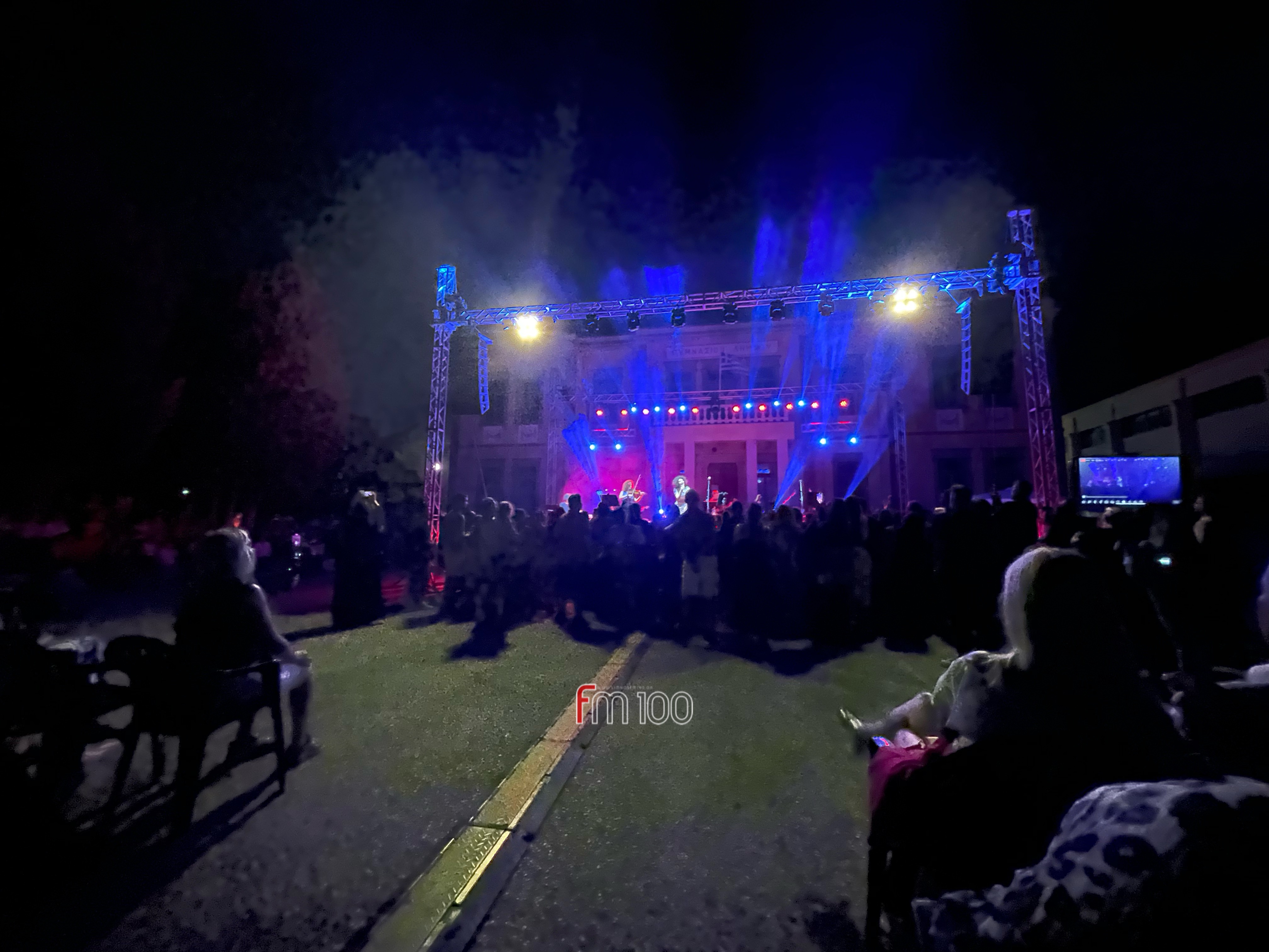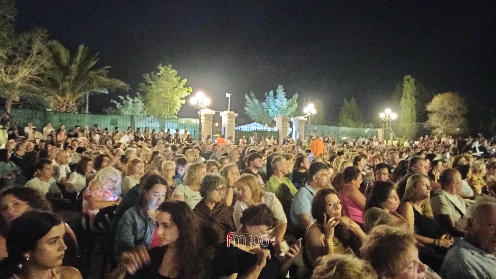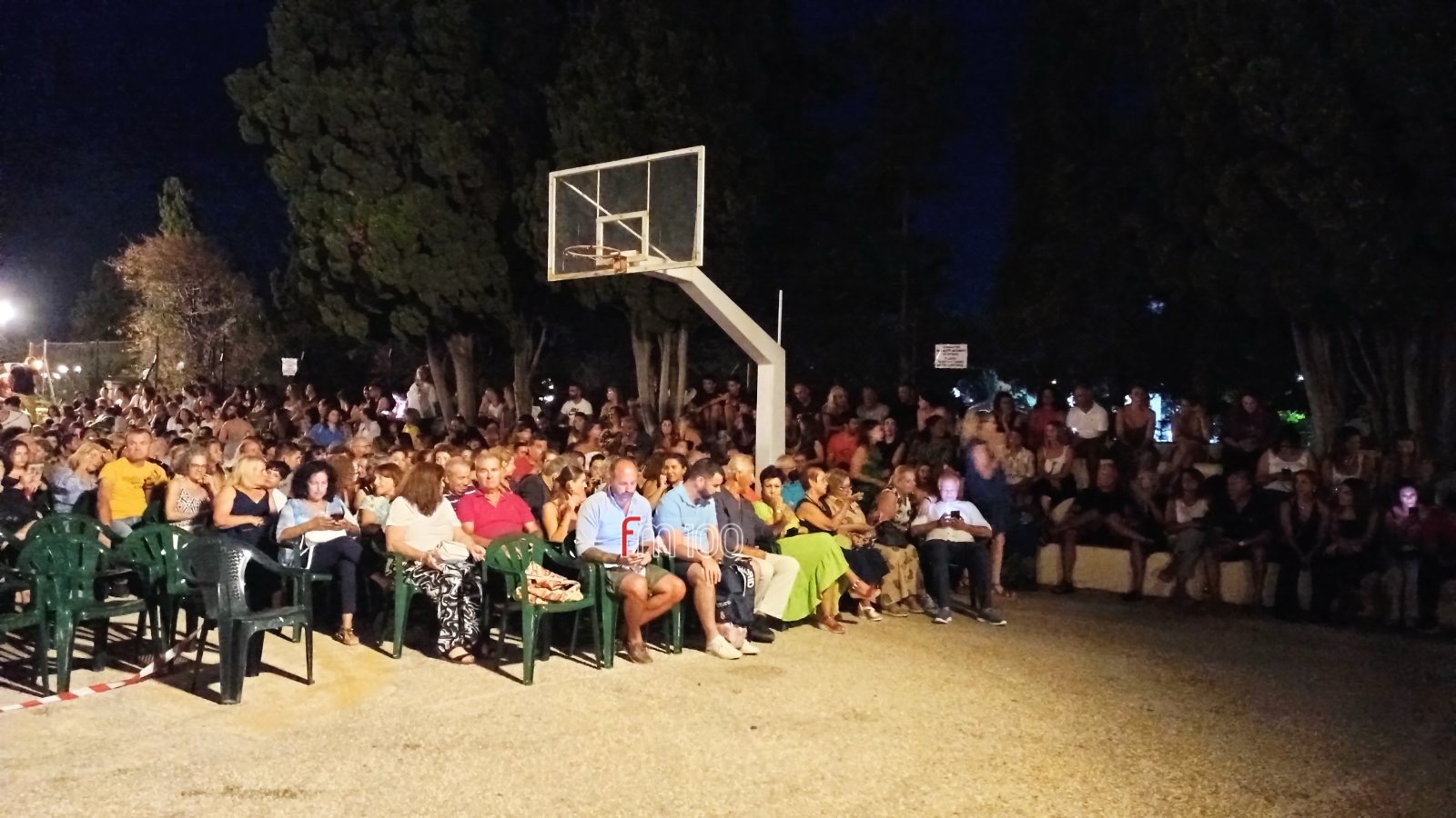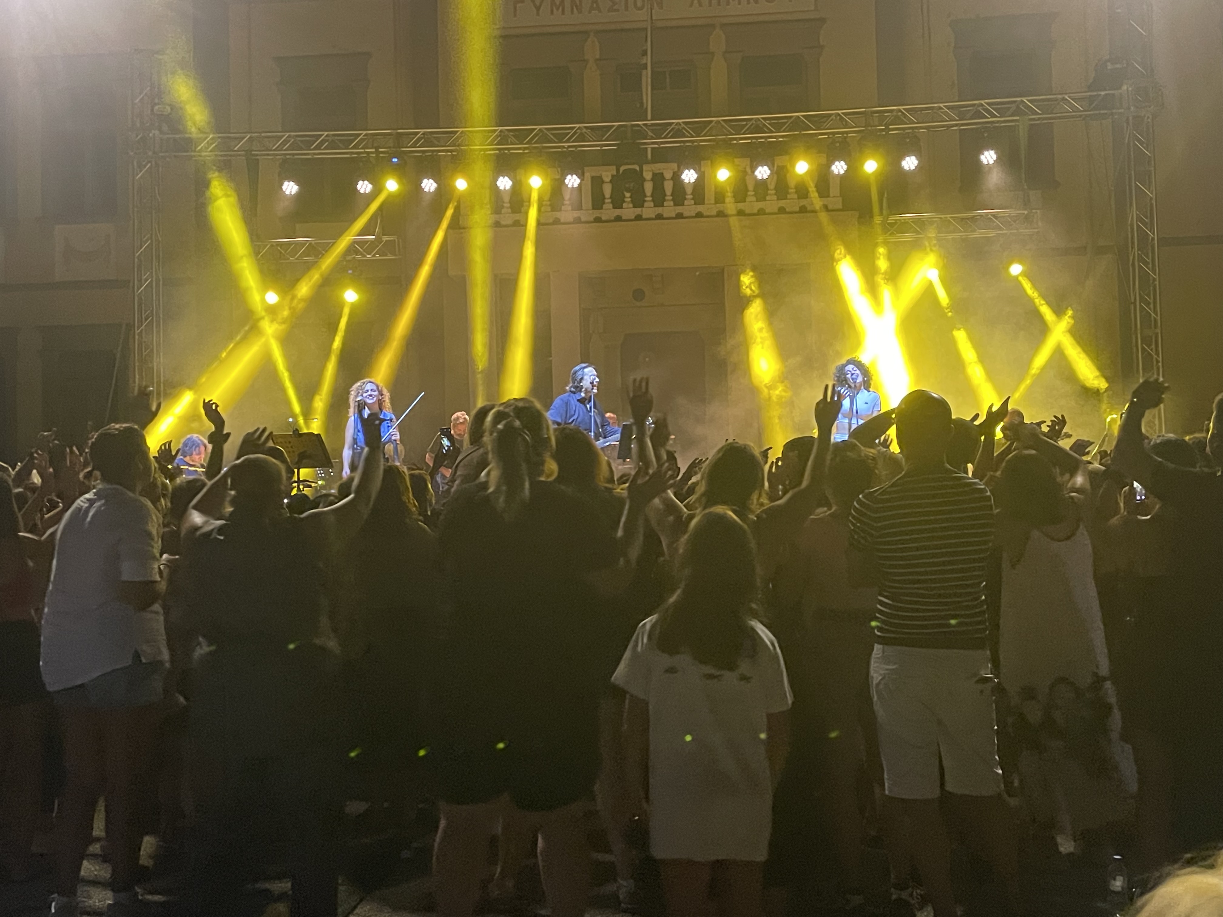 Το γκαζόν απέναντι από την είσοδο του Γυμνασίου φιλοξένησε παρέες με τραπεζάκια, καρεκλίτσες, κρασί, εδέσματα! Όμορφο και το έξω σκηνικό, συμπλήρωνε το μέσα. Τώρα που είπα εδέσματα. Από την αρχή της συναυλίας μας "έσπαγαν τη μύτη" αδιαλείπτως και χωρίς οίκτο τα καλούδια που ετοίμαζε η Δήμητρα στην καντίνα.