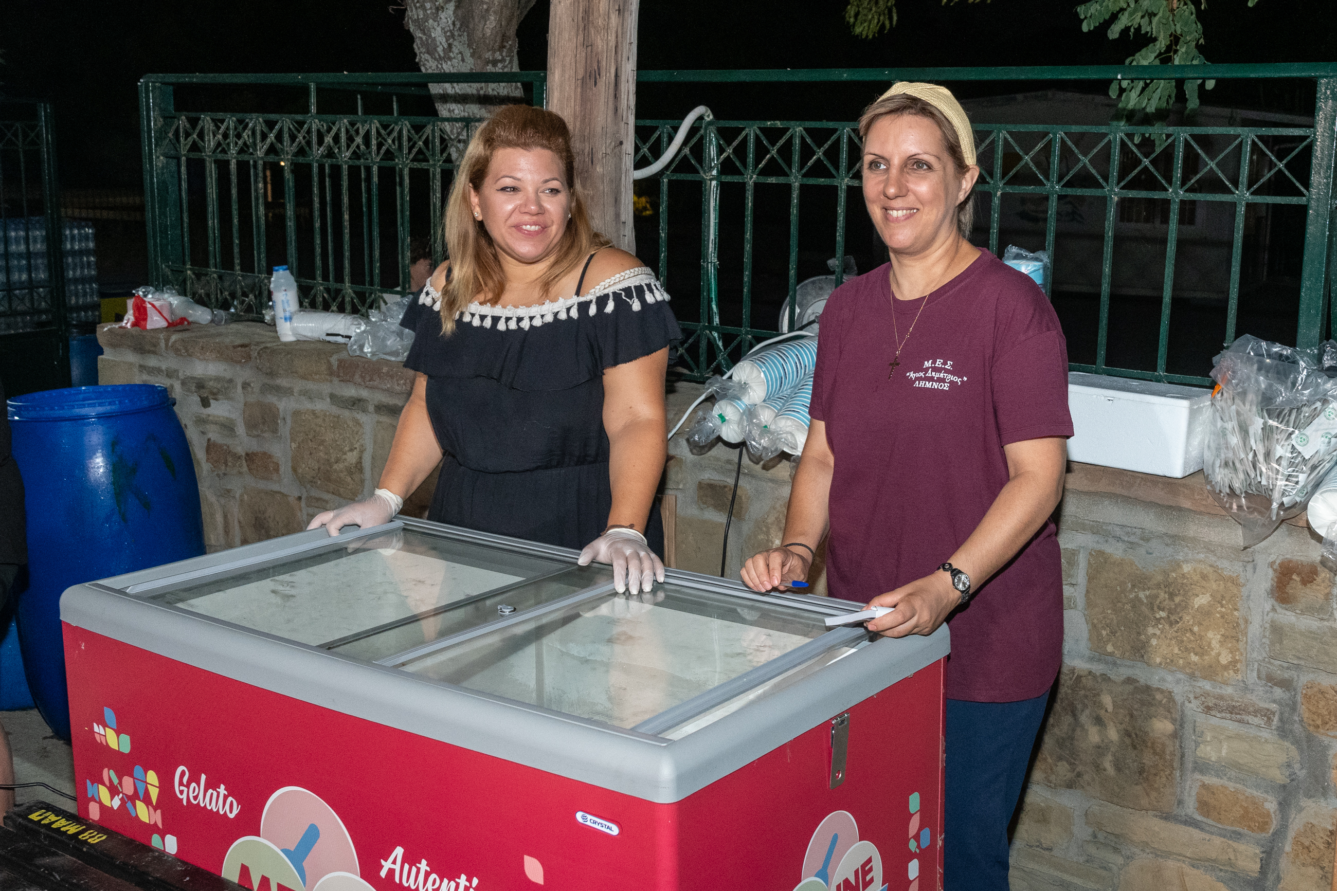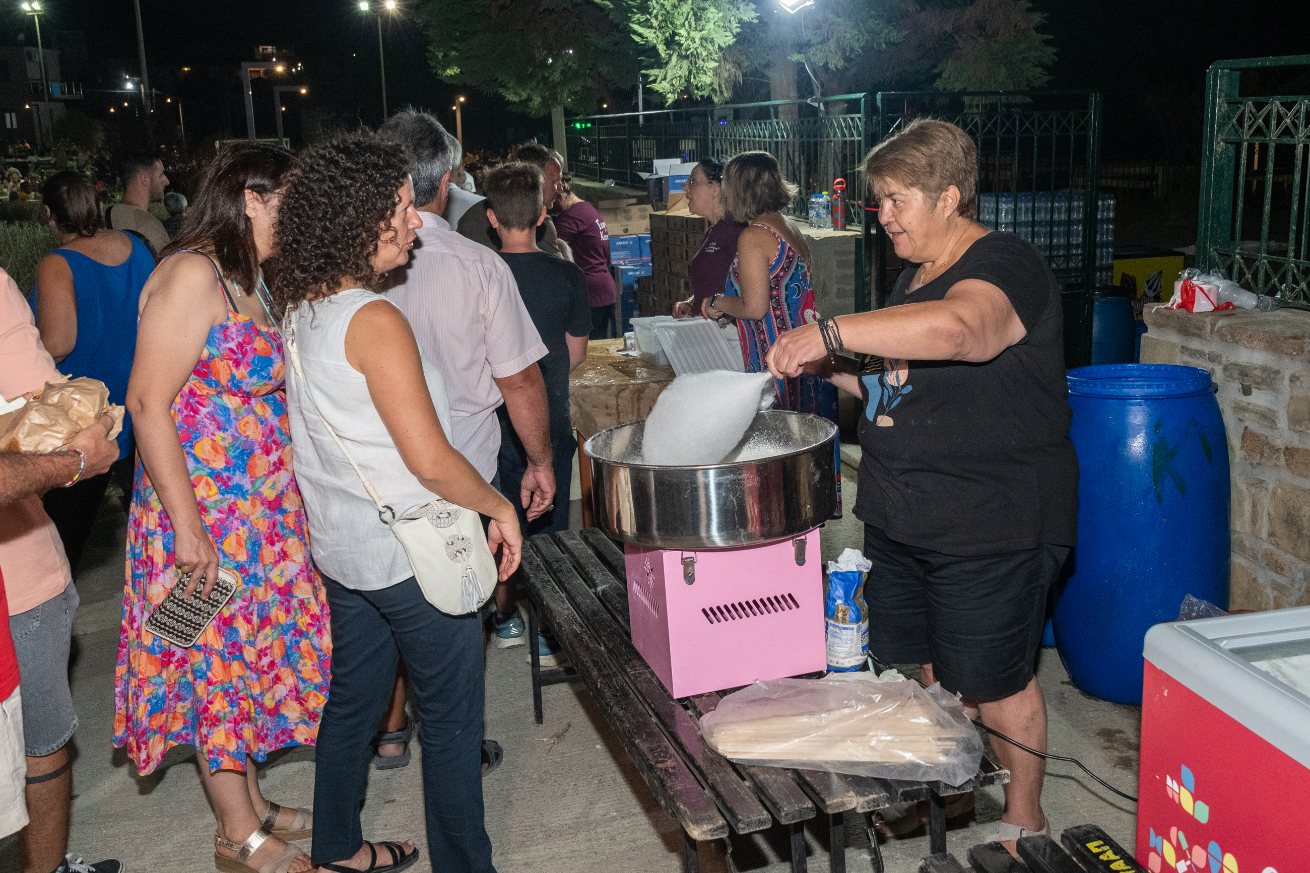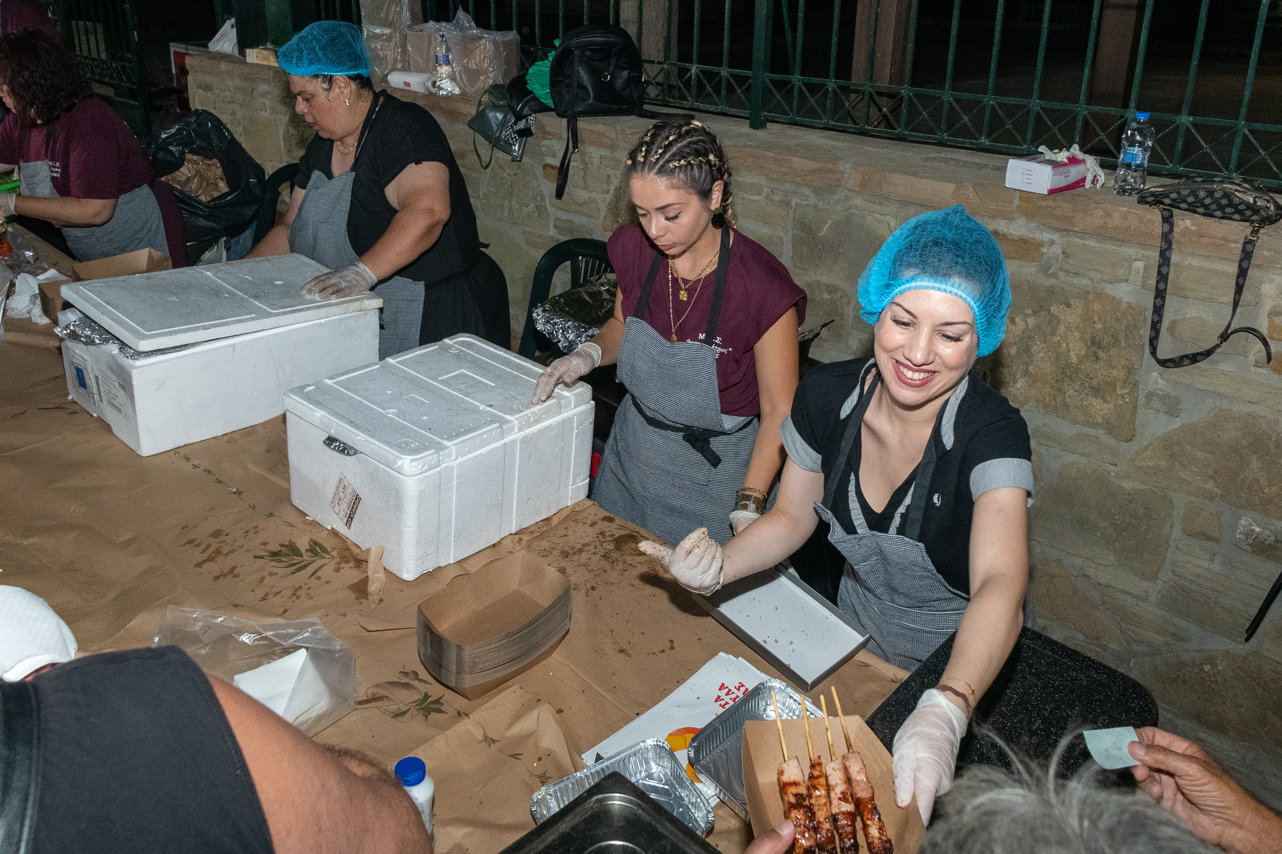Από νωρίς το απόγευμα τα κάρβουνα πήραν φωτιά, προκειμένου οι ψησταριές να υποδεχθούν τα ζουμερά σουβλάκια. Πάγκοι με ροδοκόκκινους λουκουμάδες συνοδευμένοι με μέλι Λήμνου ή πραλίνα, μαλλί της γριάς, παγωτά αλλά και αναψυκτικά και νερά κατάφεραν να γλυκάνουν και να δροσίσουν τον κόσμο που βρέθηκε στη γιορτή.