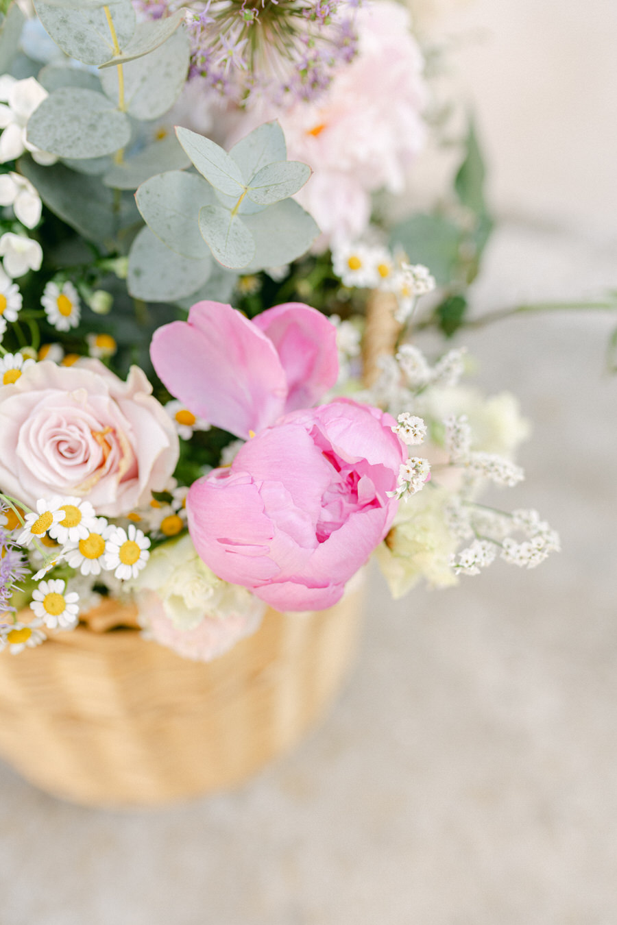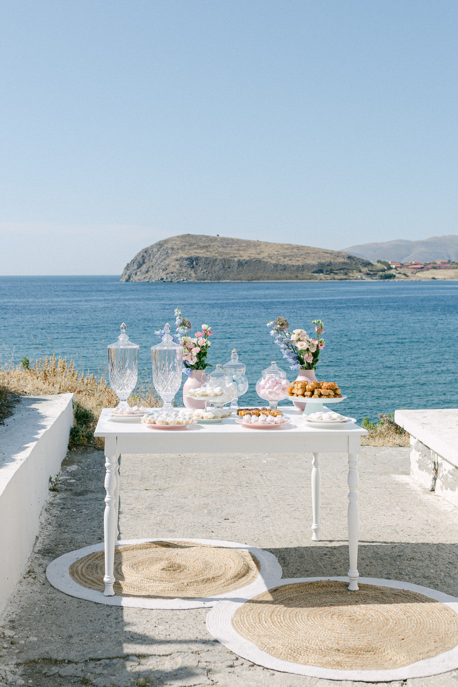 Η Θάλεια και ο Γιάννης ήθελαν ο γάμος τους να αντανακλά τη φυσική ομορφιά της Λήμνου, γι' αυτό επέλεξαν ένα μινιμαλιστικό αλλά κομψό θέμα. Η χρωματική παλέτα περιελάμβανε απαλά λευκά, γλυκά απαλά μπλε, ήπια πράσινα και πινελιές ροζ, συμπληρώνοντας τέλεια τους ευγενικούς ναυτικούς τόνους του νησιού. Η ανθοδέσμη της νύφης ήταν ένα ντελικάτο μείγμα από αγριολούλουδα και πράσινα κλαδιά, προσθέτοντας μια πινελιά τοπικής γεύσης στη γιορτή.
