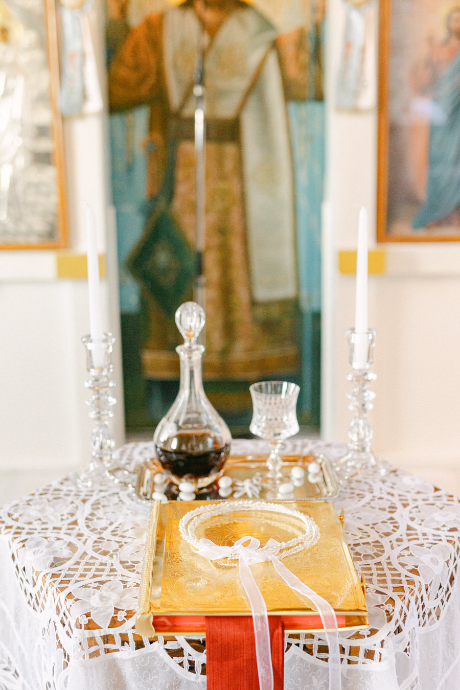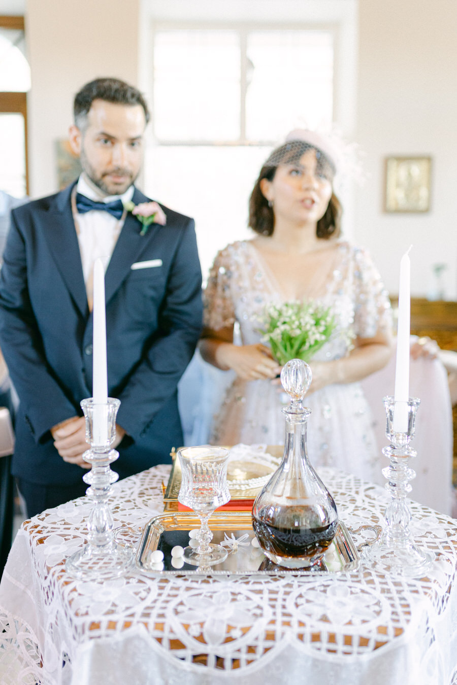 Το νησί της Λήμνου είναι ένα μέρος όπου ο χρόνος μοιάζει να σταματάει. Το ζευγάρι επέλεξε να φιλοξενήσει το γάμο του στη γραφική Αγία Παρασκευή Βόντελα, στη Μύρινα. Πρόκειται για ένα γαλήνιο μέρος γνωστό για την παραδοσιακή αρχιτεκτονική του και την εκπληκτική θέα στο Αιγαίο. Η τελετή έλαβε χώρα σε μια τοποθεσία που προσφέρει πανοραμική θέα στη θάλασσα.