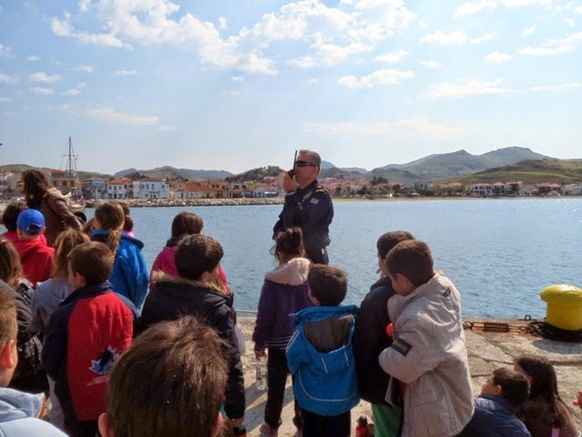 Τα παιδιά των Α' και Β' τάξεων επισκέφτηκαν το Λιμεναρχείο, όπου άντρες της Λιμενικής Αρχής, μίλησαν στους μαθητές για το επάγγελμά τους, αλλά και για τη θαλάσσια ζωή και μόλυνση.