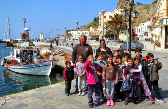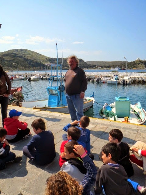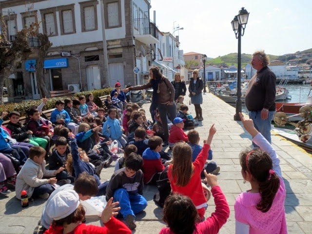 Έπειτα περπάτησαν ως το μικρό λιμανάκι. Εκεί συνάντησαν τους ψαράδες της Μύρινας που τους μίλησαν για τα ψάρια που υπάρχουν στις θάλασσες της Λήμνου, καθώς και για τις δυσκολίες και τις ομορφιές της δουλειάς του.