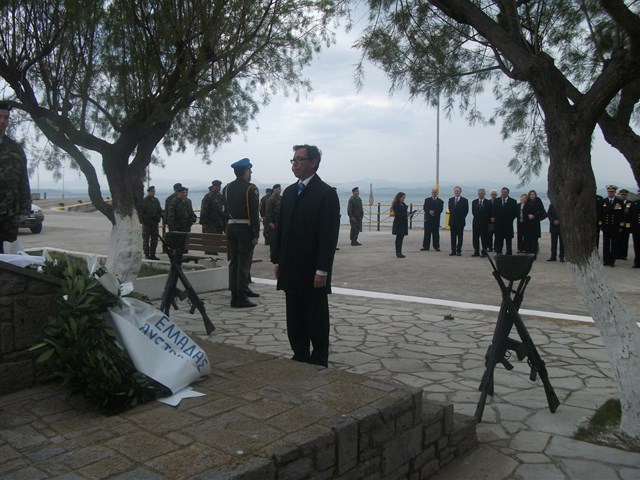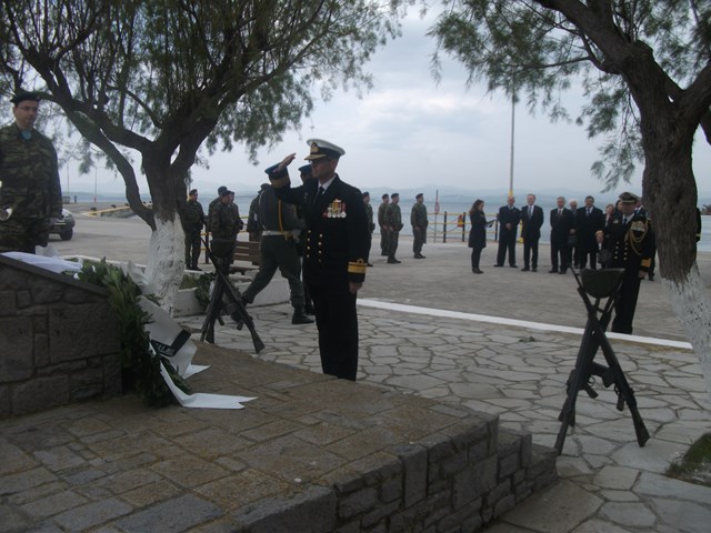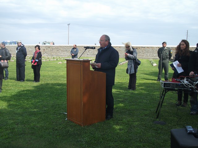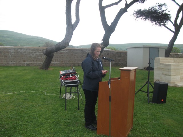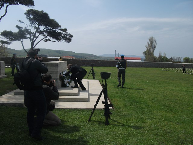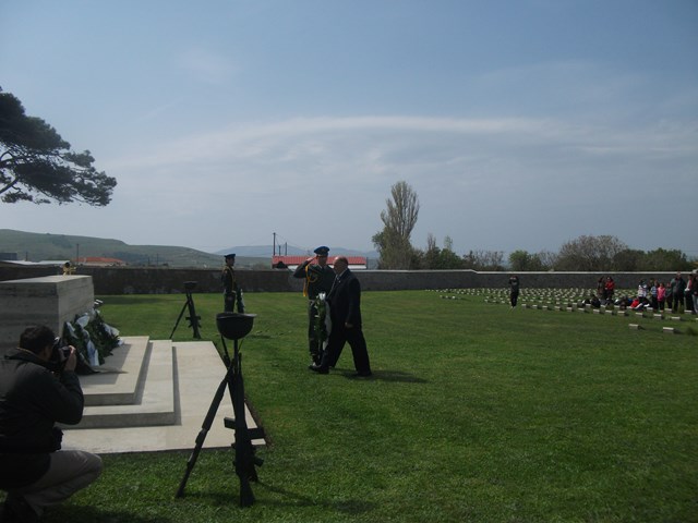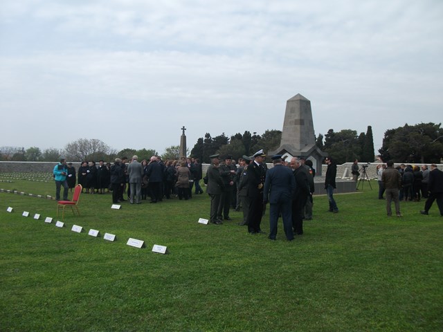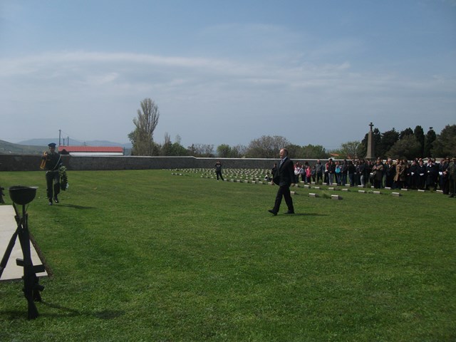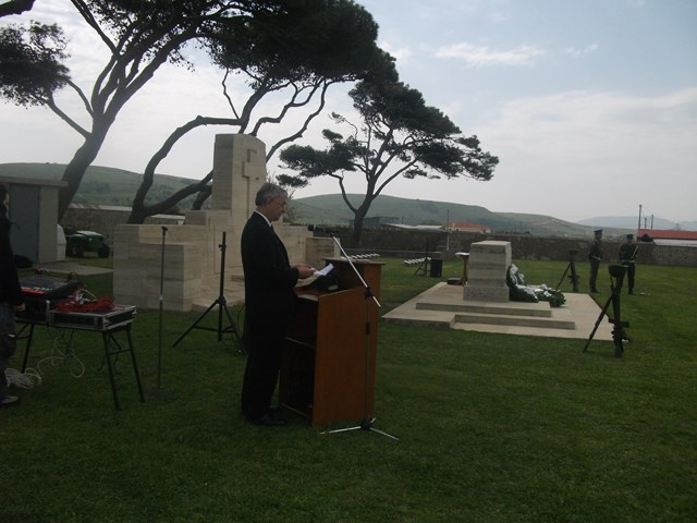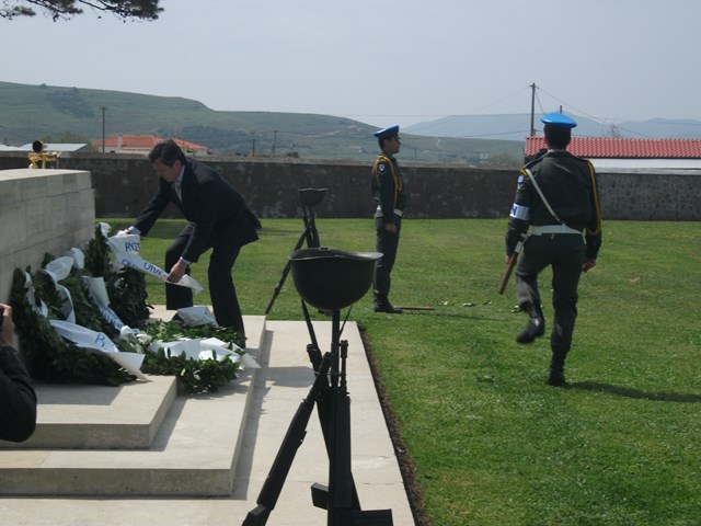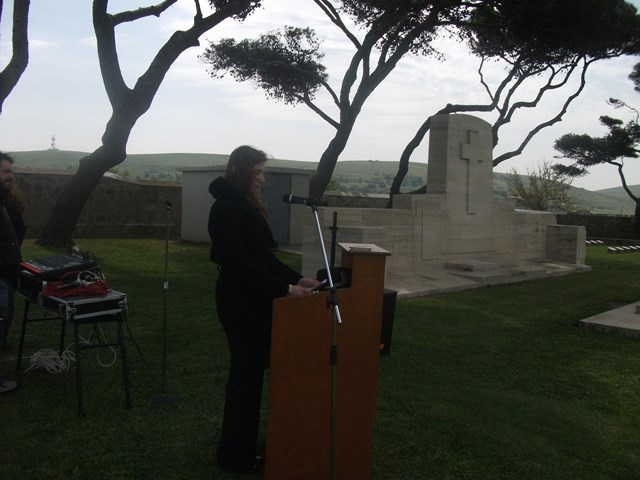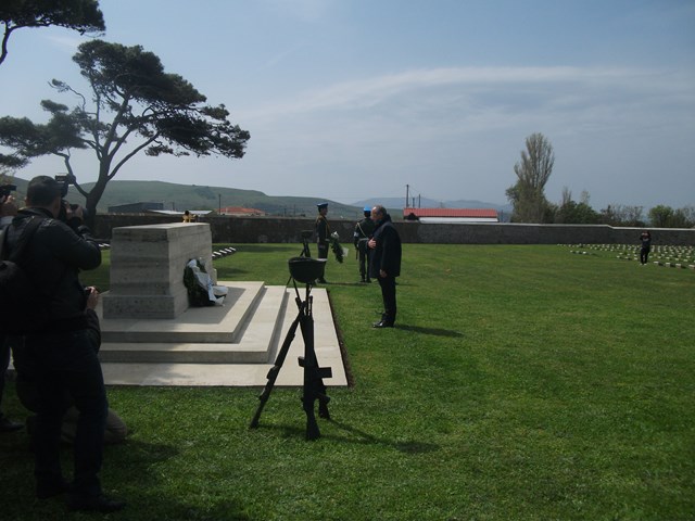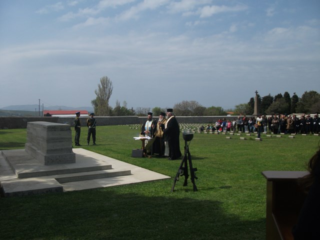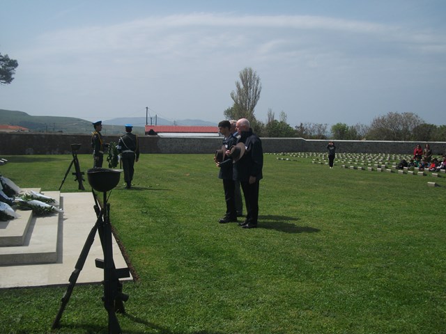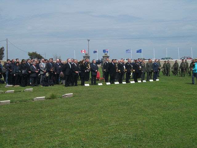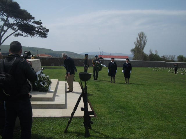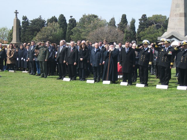 Στη συνέχεια, στο Συμμαχικό Κοιμητήριο του Μούδρου πραγματοποιήθηκε η επίσημη εκδήλωση με Επιμνημόσυνη Δέηση από τον Σεβασμιότατο Μητροπολίτη Λήμνου και Αγίου Ευστρατίου κ. Ιερόθεο, κατάθεση στεφάνων, χαιρετισμοί επισήμων, με κεντρική ομιλήτρια την κα Άννα Μπουκόρου, Εκπαιδευτικό του Επαγγελματικού Λυκείου Μούδρου με θέμα «Η Μάχη της Καλλίπολης», ενώ ιδιαίτερη εντύπωση προκάλεσε η ομιλία της μαθήτριας Bianca Gerrard του Beaufort Secondary College, της πολιτείας Βικτώρια Αυστραλίας αφιερωμένη στον Στρατιώτη Donald Alexander Gordon Chisholm που βρίσκεται ενταφιασμένος στο Συμμαχικό Κοιμητήριο του Μούδρου.