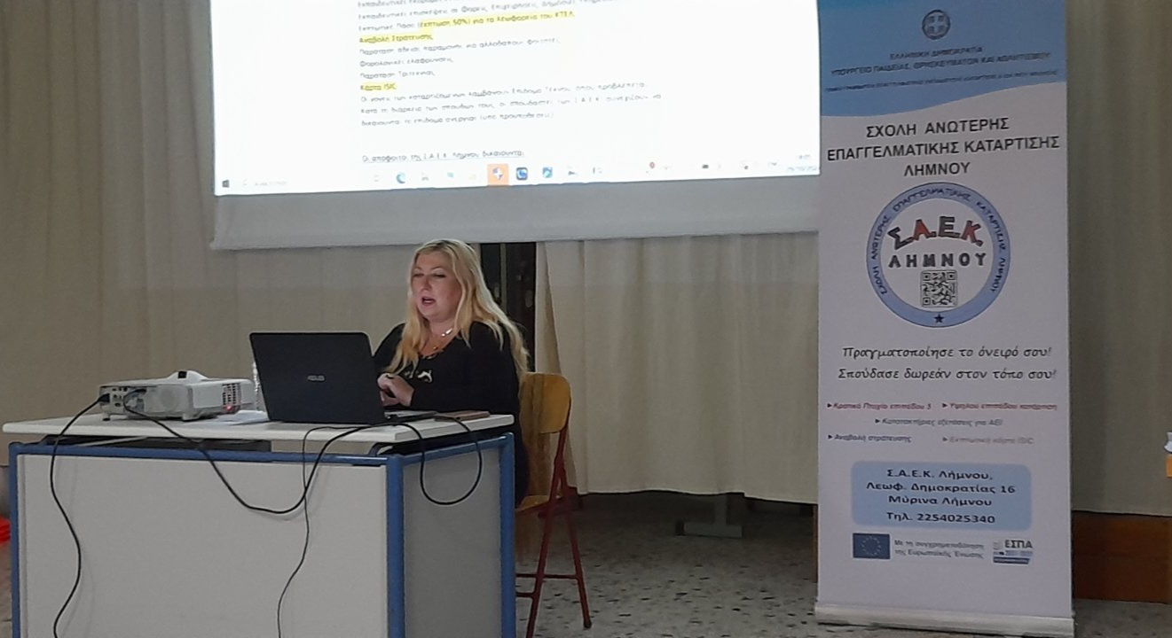 Και συνεχίζει: «Στις 17/10/2024 ξεκίνησε ένα νέο ταξίδι κατάρτισης στη Σ.Α.Ε.Κ. ΛΗΜΝΟΥ με χαμόγελα, προσδοκίες και όνειρα... Με όρεξη για δουλειά και διάθεση για προσφορά!