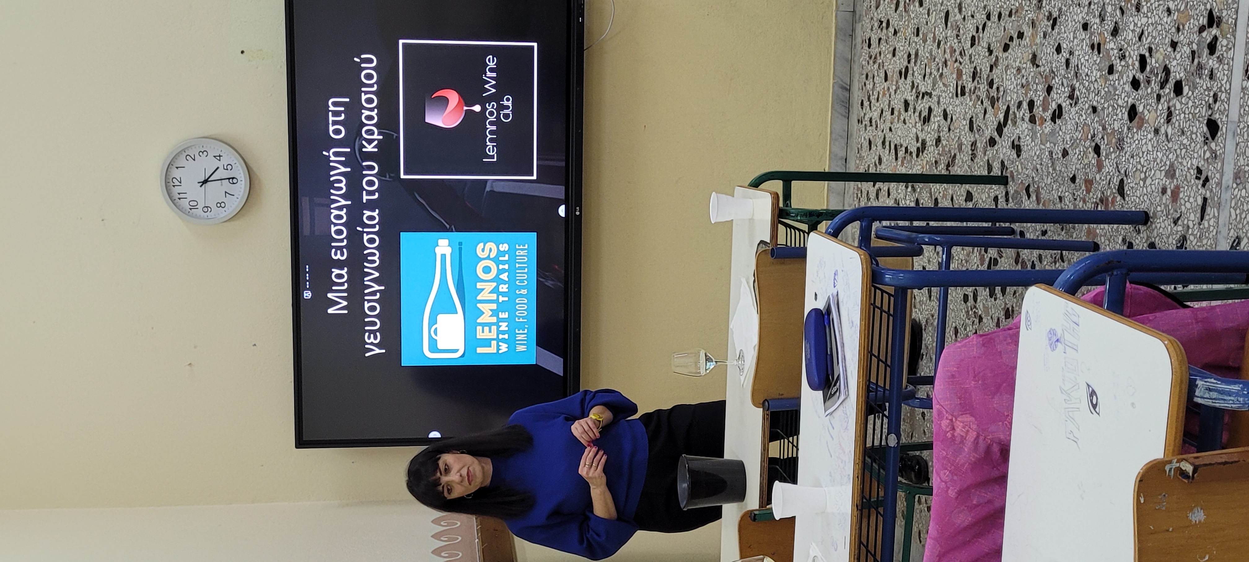 Παρουσίαση γευσιγνωστικών δοκιμών οίνου με προσκεκλημένη την κα Ελευθερία Κωνσταντάρα στους σπουδαστές της ειδικότητας "Τεχνικός Αμπελουργίας και Οινολογίας" της ΣΑΕΚ ΛΗΜΝΟΥ