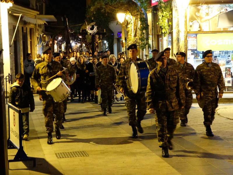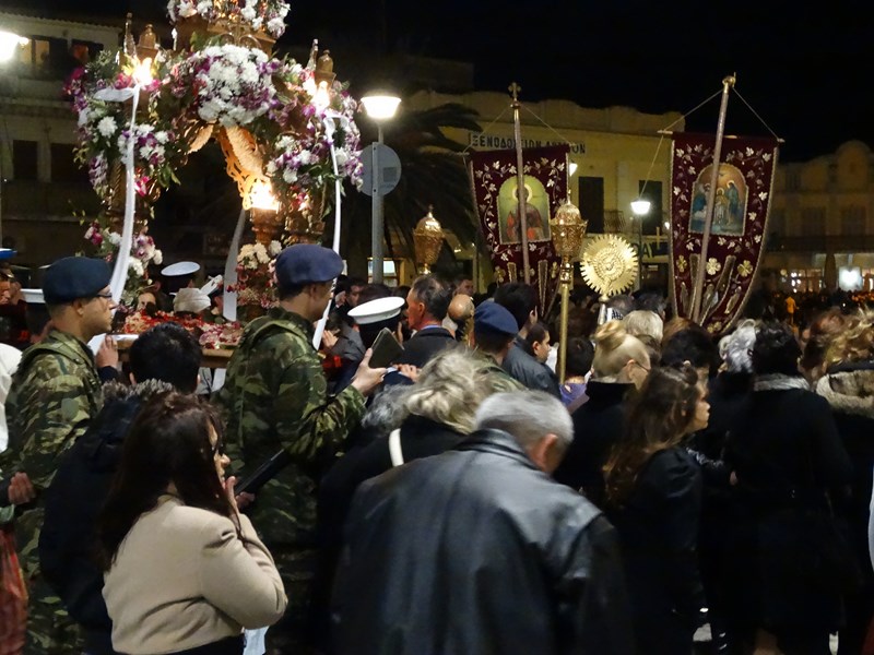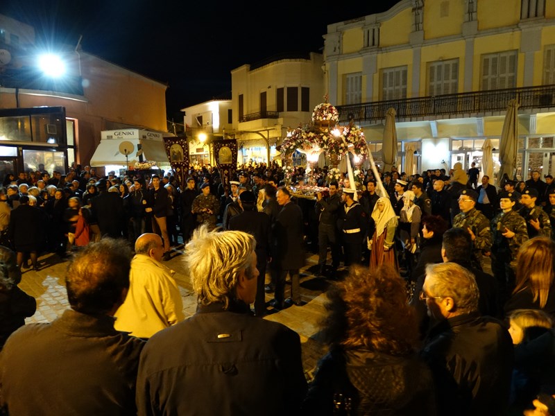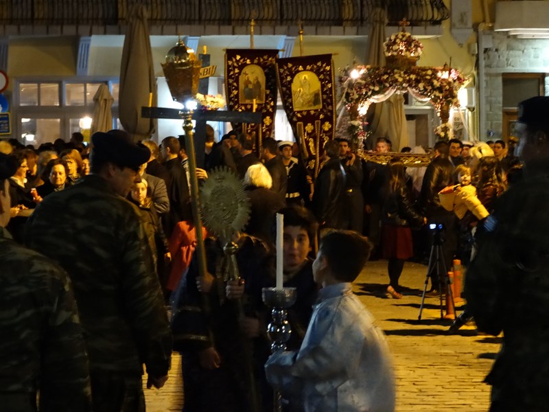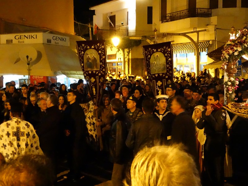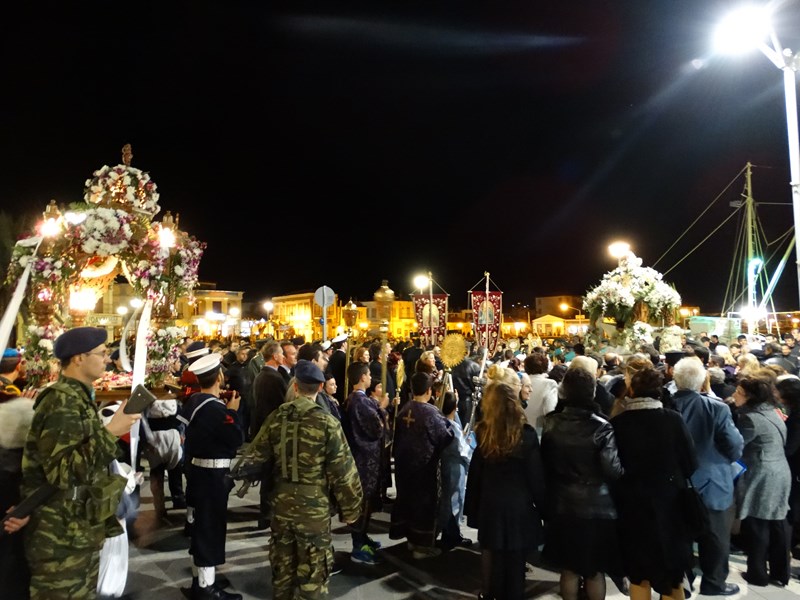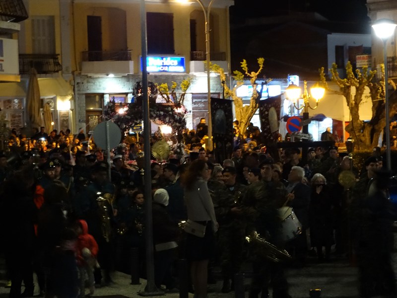 Οι επιτάφιοι και ο κόσμος που τους συνόδευε, αρκετός αλλά λιγότερος σε σχέση με άλλες χρονιές λόγω καιρού, χωρίς την παρουσία φέτος του Μητροπολίτη Λήμνου & Αγίου Ευστρατίου κ. Ιερόθεου, αφού διέσχισαν διαφορετικά σημεία της πόλης, συναντήθηκαν μπροστά απο το δημαρχείο.