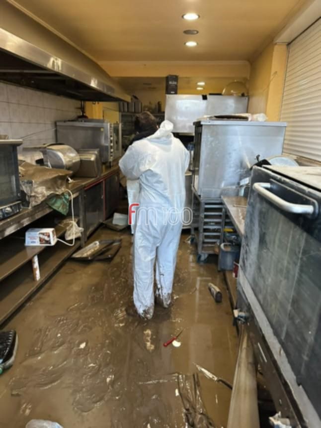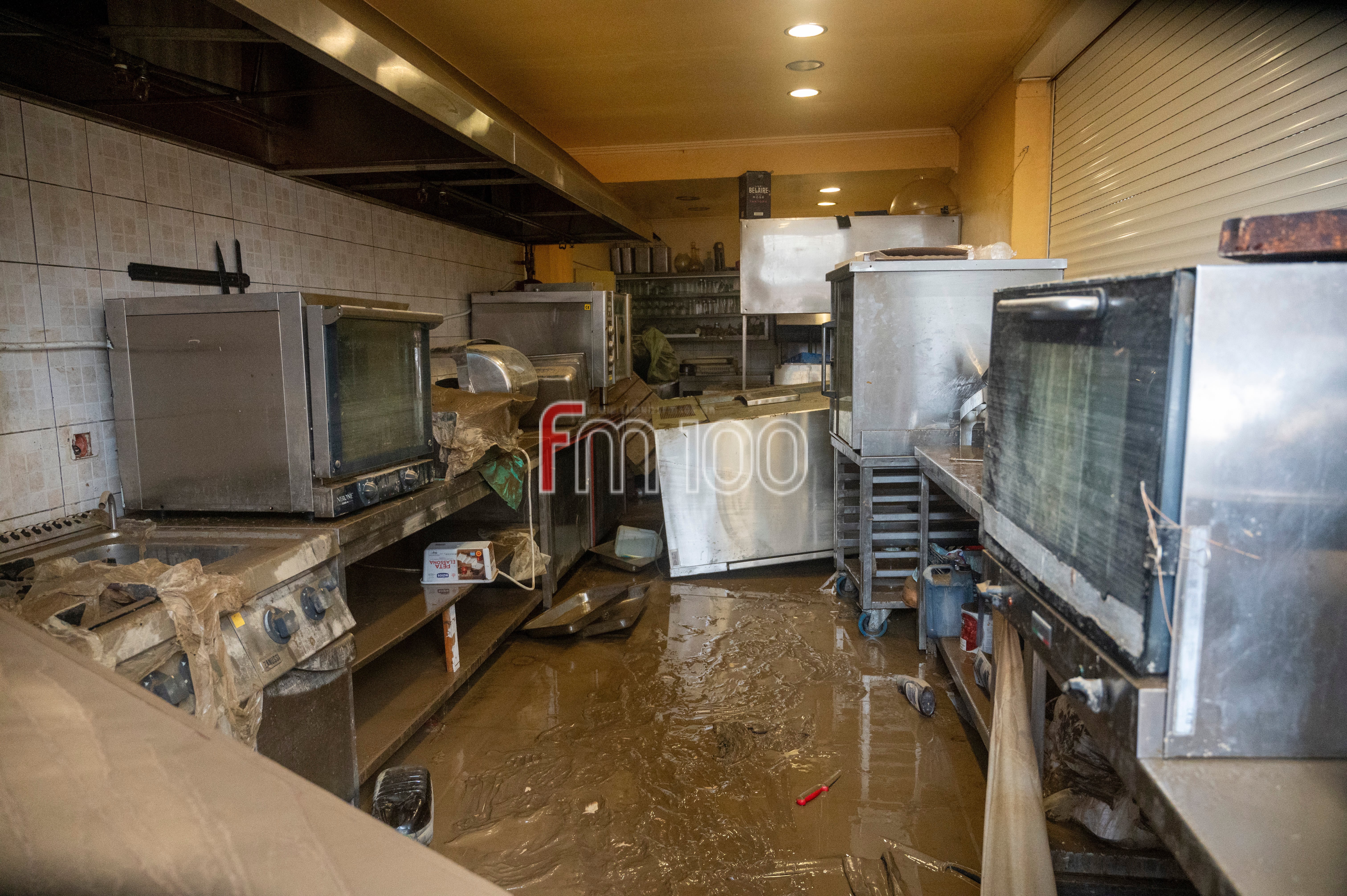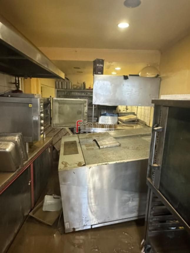 Η στάθμη του νερού έφτασε σε ύψος 1,75 μέτρων, καταστρέφοντας ολόκληρη την κατασκευή, από τον εξοπλισμό την κουζίνα, τα ψυγεία, τους φούρνους, μέχρι ολόκληρη τη δομή του χώρου.