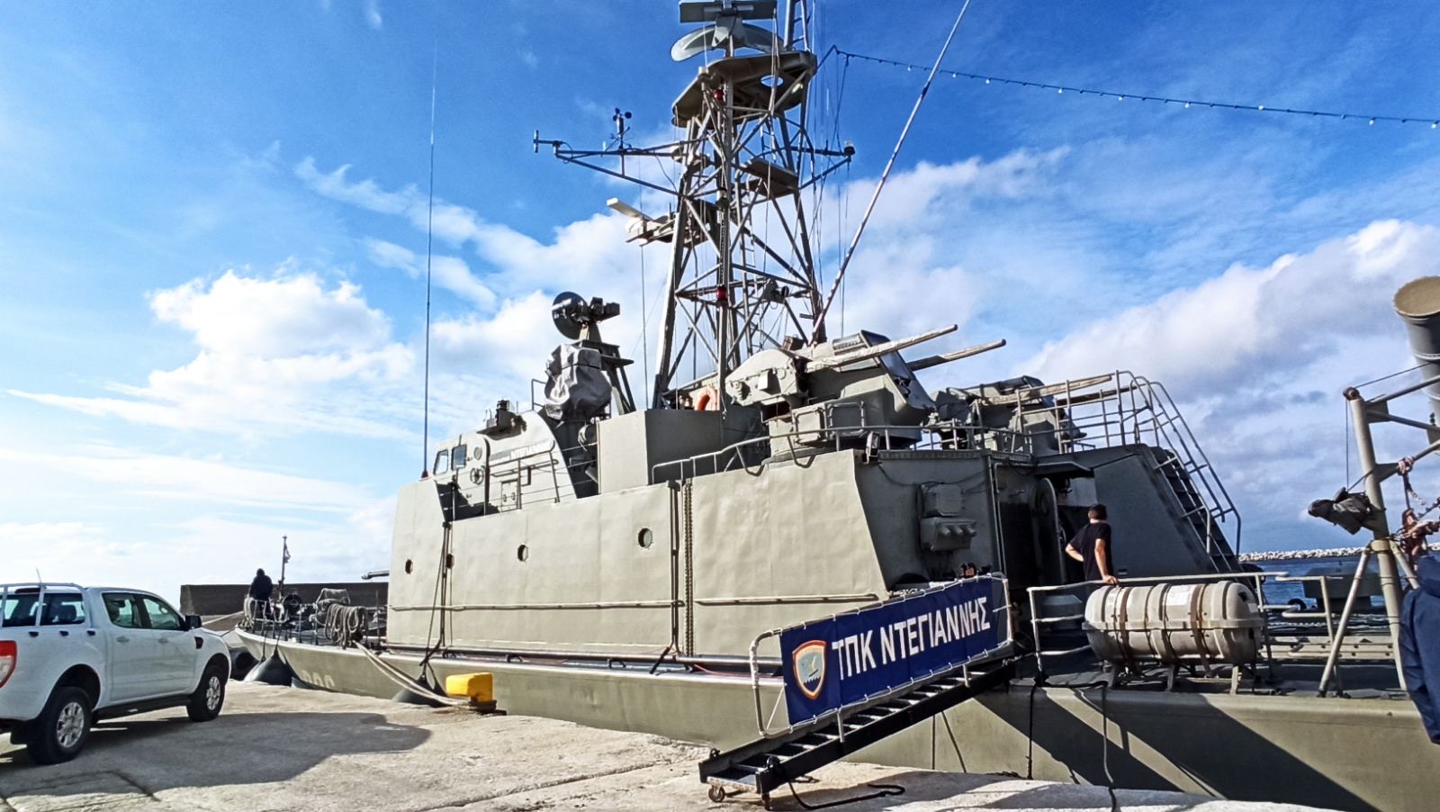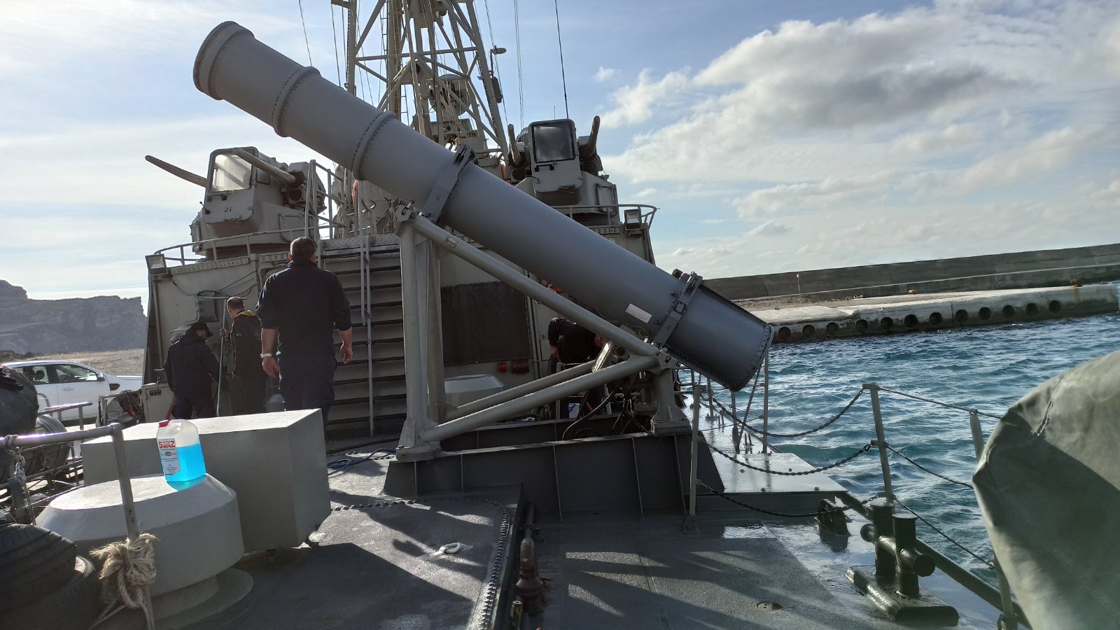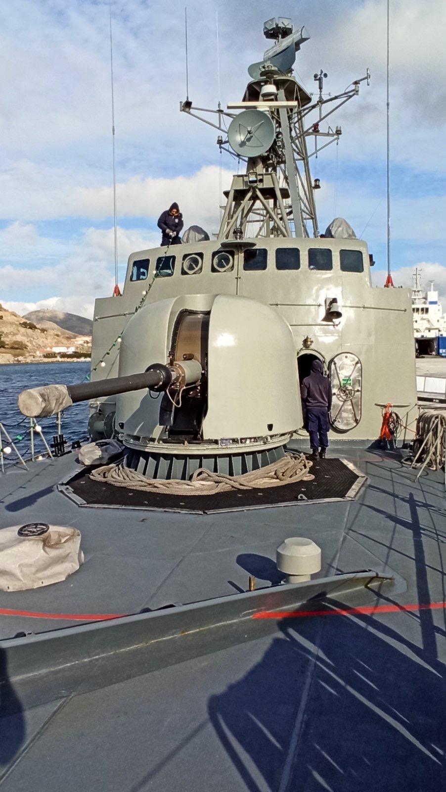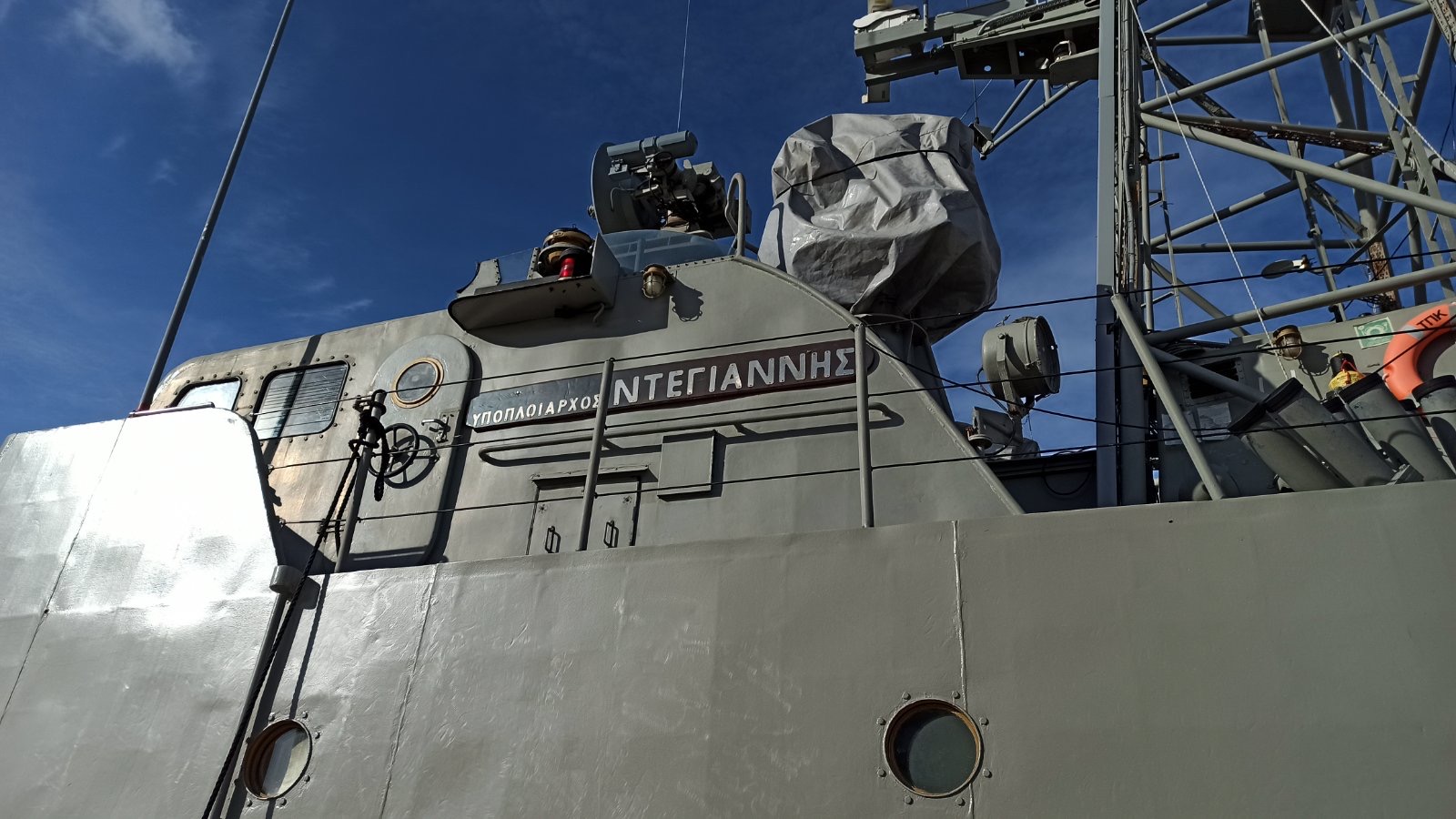 Ανεβήκαμε στο σκάφος σήμερα το μεσημέρι και είδαμε από κοντά τη γέφυρα, τον εξοπλισμό και τα οπλικά συστήματα του πλοίου.