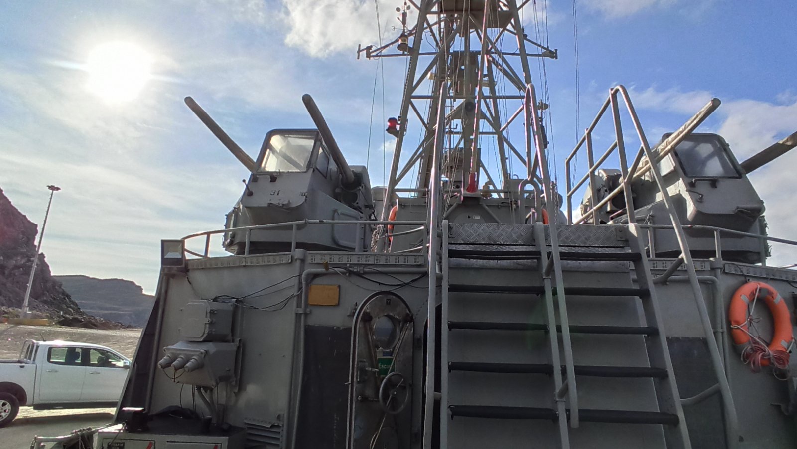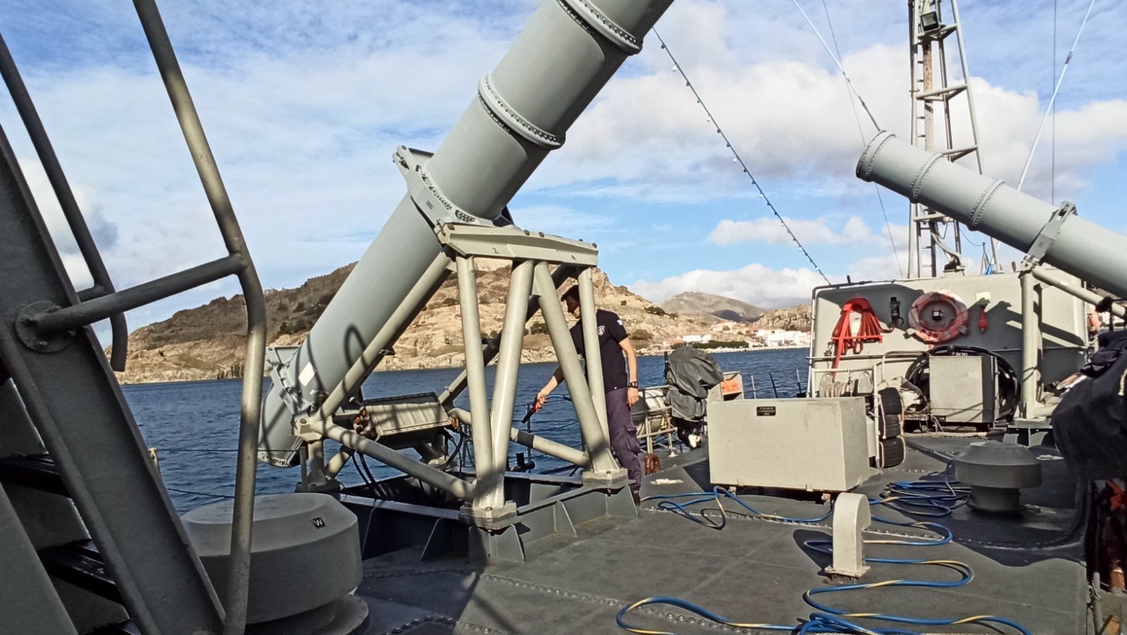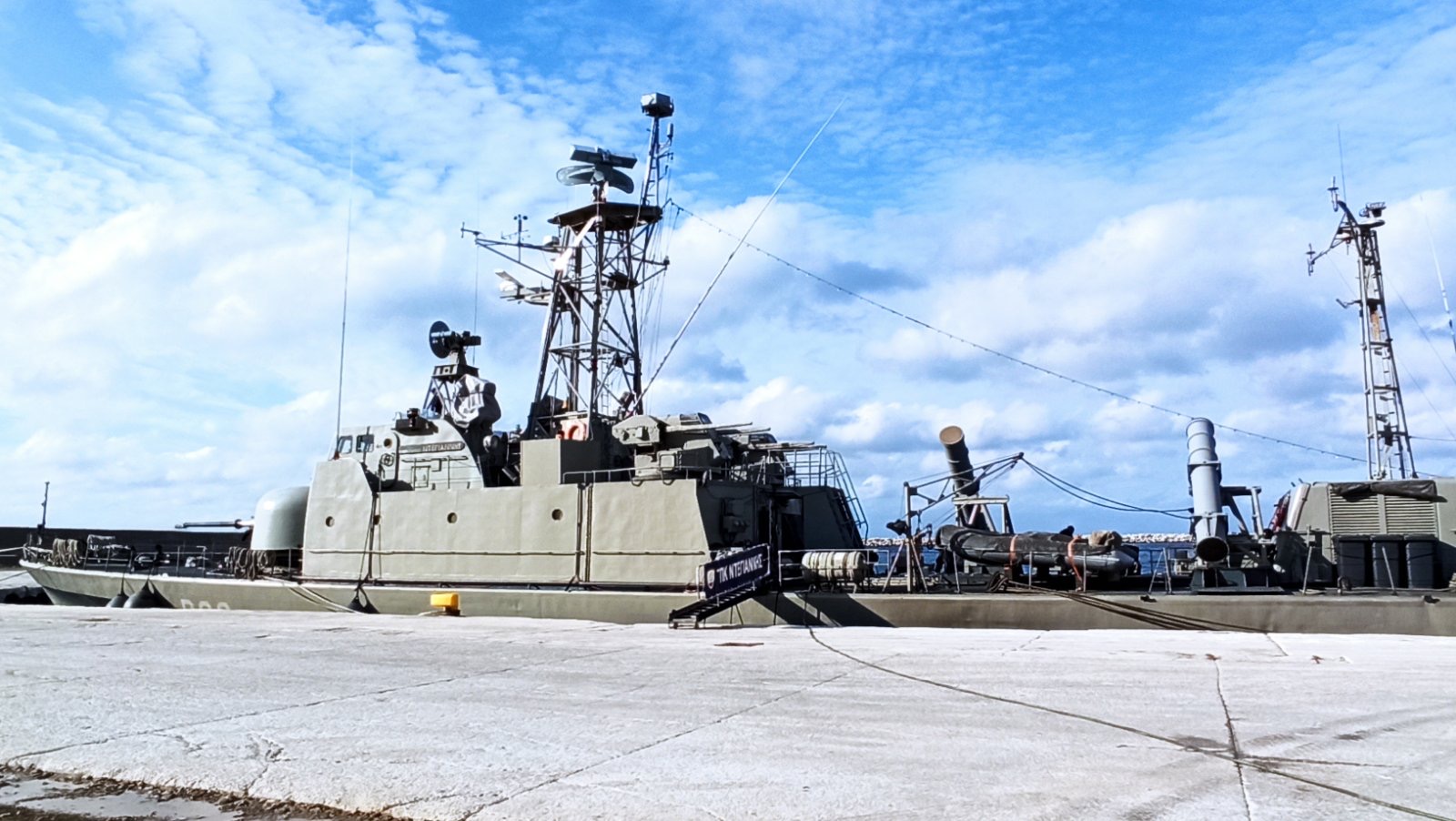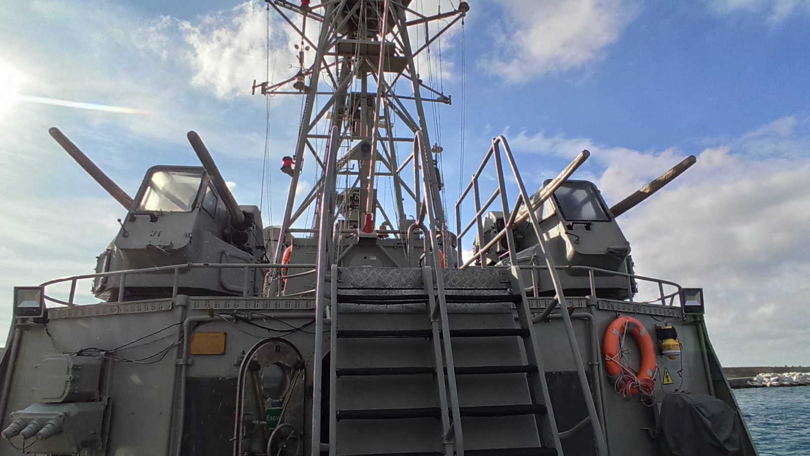 Ανεβήκαμε στο σκάφος σήμερα το μεσημέρι και είδαμε από κοντά τη γέφυρα, τον εξοπλισμό και τα οπλικά συστήματα του πλοίου.