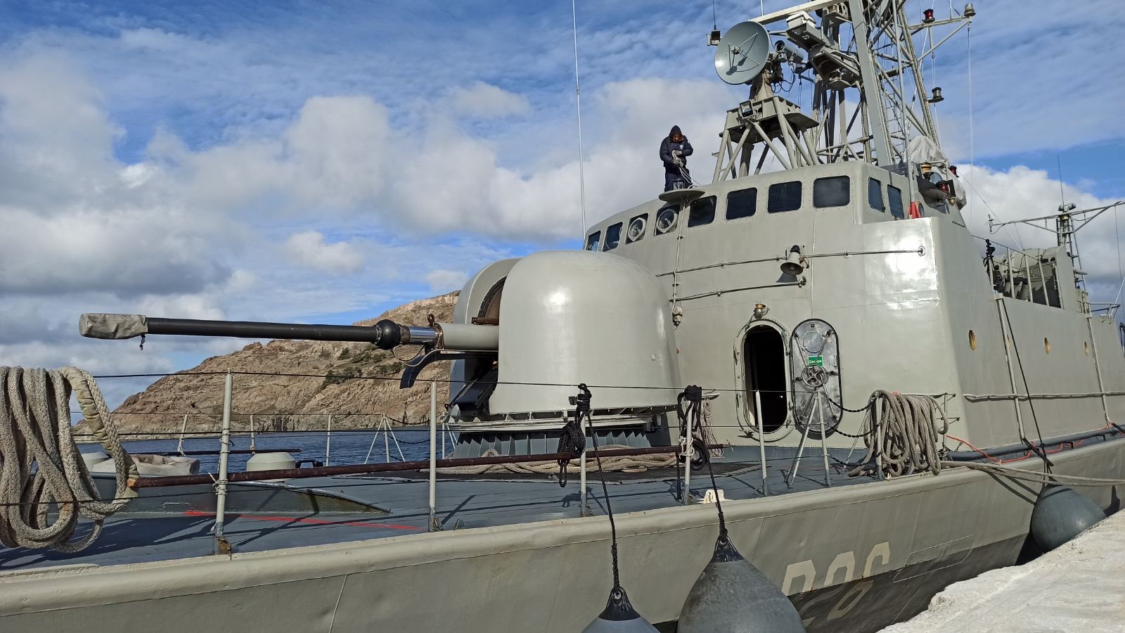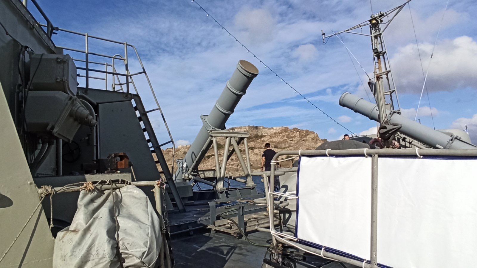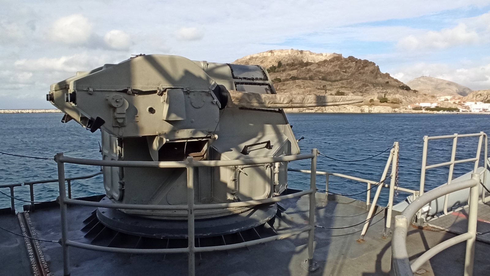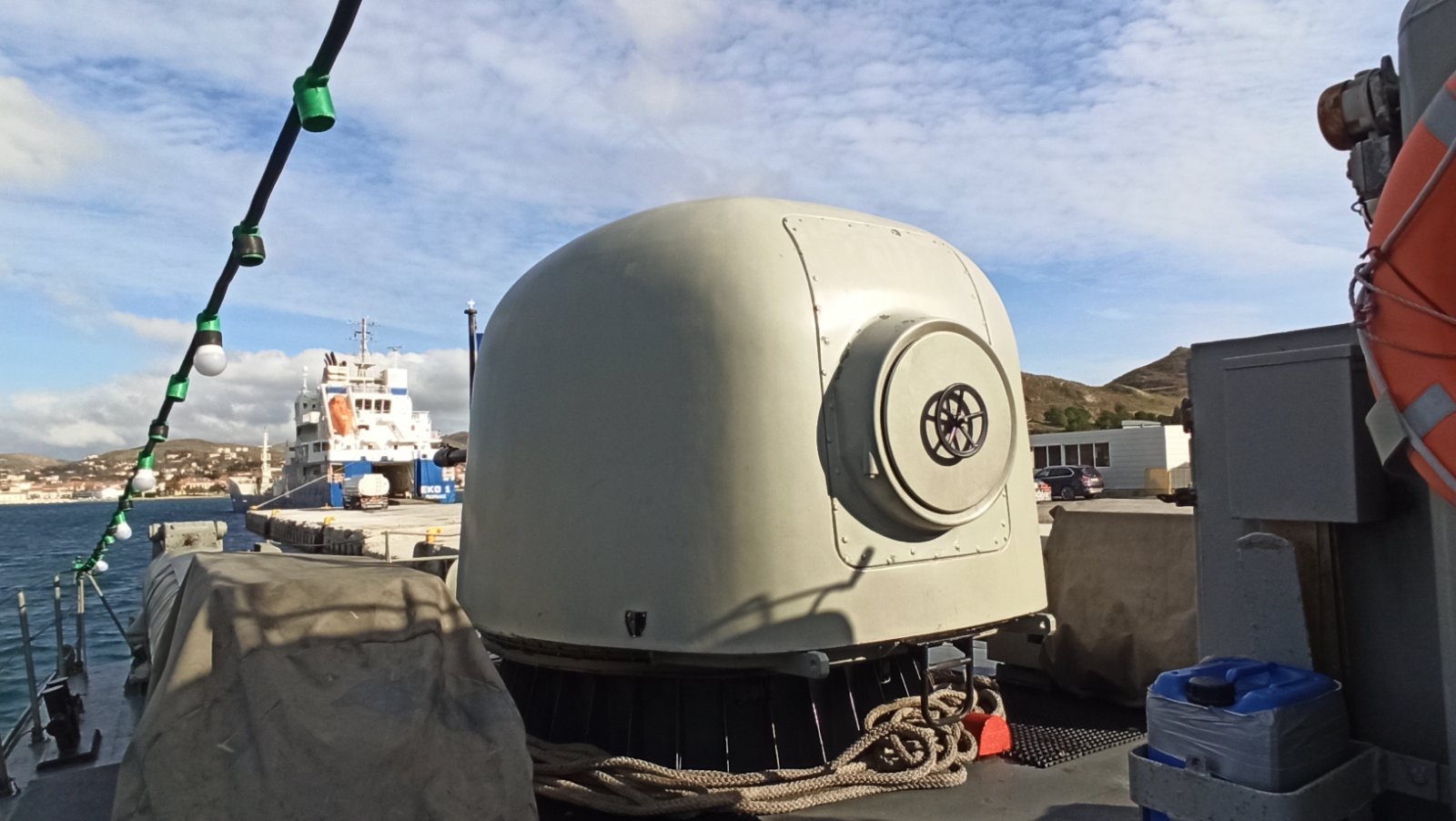 Ανεβήκαμε στο σκάφος σήμερα το μεσημέρι και είδαμε από κοντά τη γέφυρα, τον εξοπλισμό και τα οπλικά συστήματα του πλοίου.