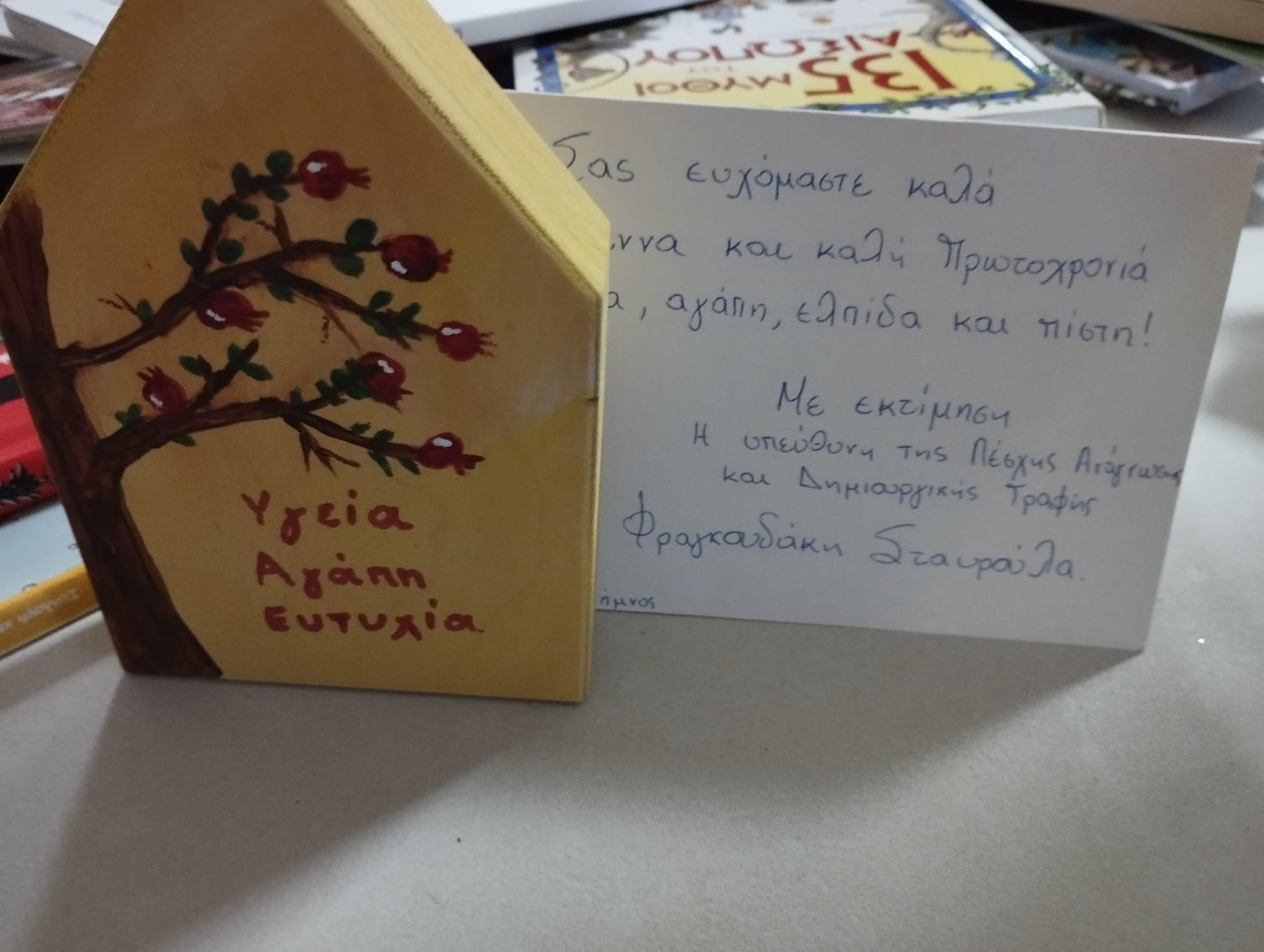 Στο πλαίσιο της δράσης αυτής, παραδόθηκαν βιβλία, χειροποίητες δημιουργίες και ευχές γραμμένες από τα παιδιά της Λέσχης, ενισχύοντας τη σύνδεση της λογοτεχνίας με την καρδιά και το πνεύμα.