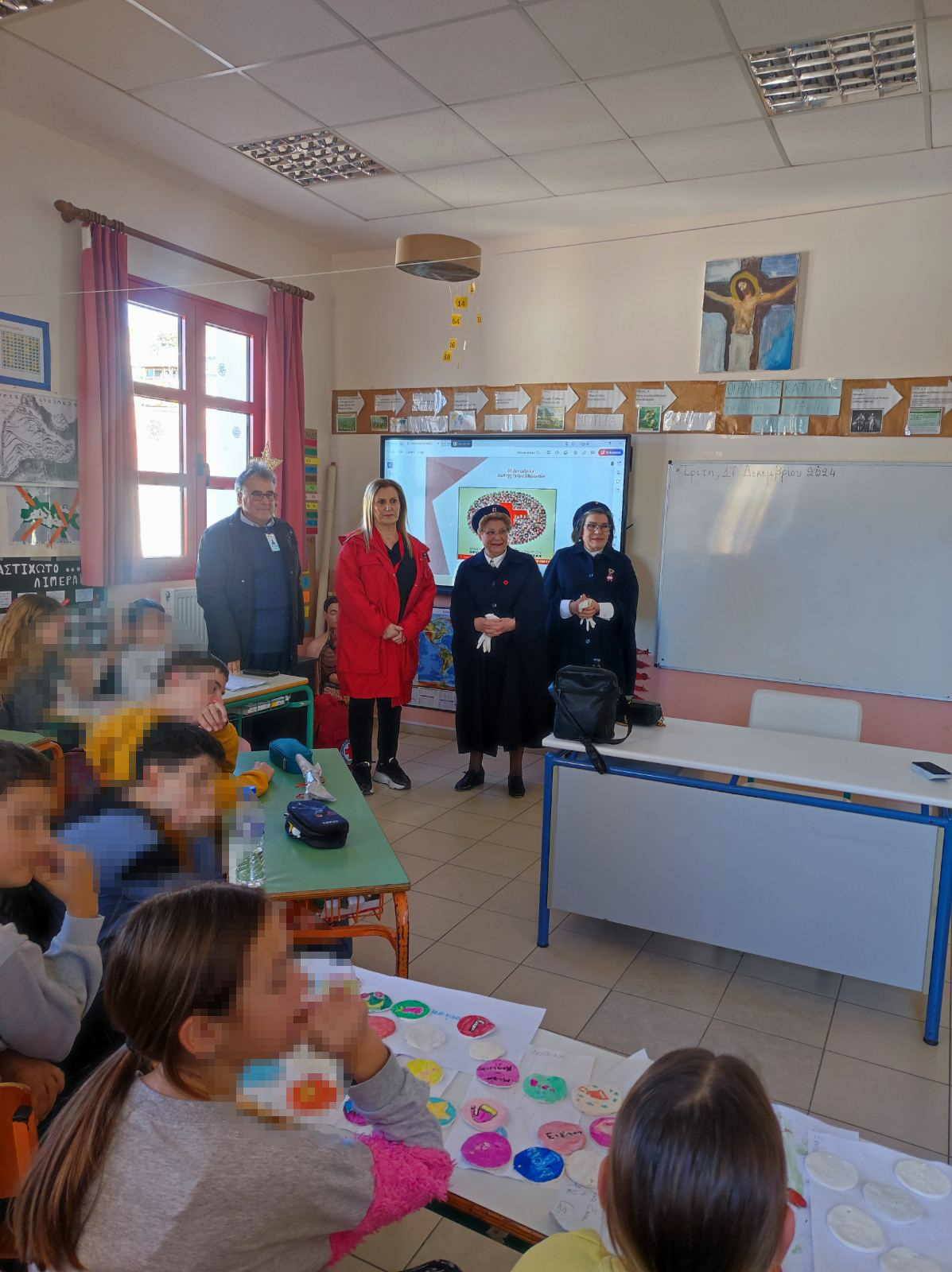 Η παρουσίαση στο διαδραστικό πίνακα του σχολείου, έγινε από την Αντιπρόεδρο του ΠΣ και Παιδίατρο κ. Ελένη Φαρμάκη, παρουσία του Προέδρου κ. Δημητρίου Αχιλαδέλλη και ένστολων Εθελοντών του Τομέα Υγείας ΕΕΣ.