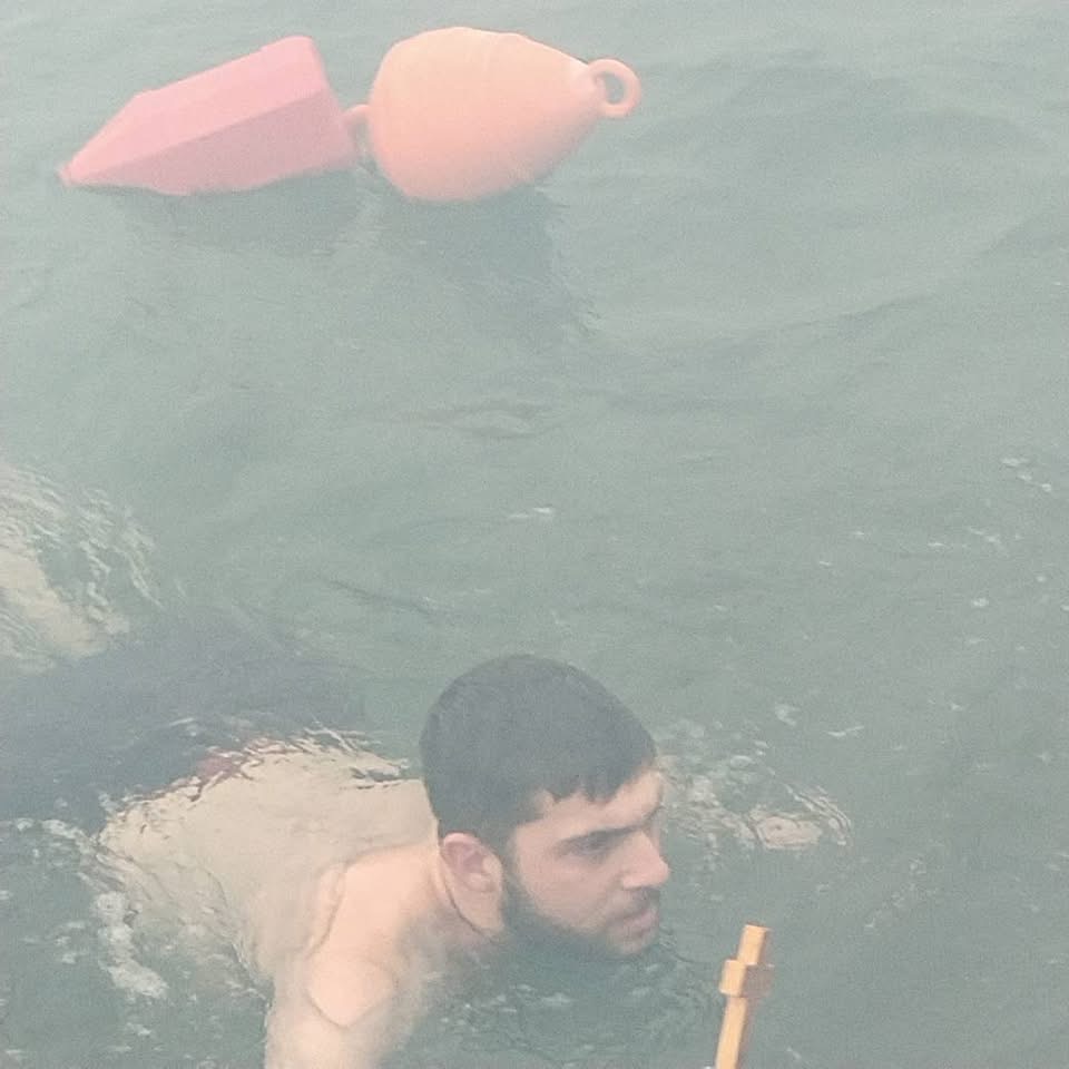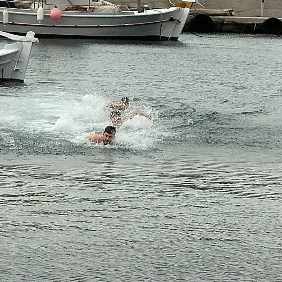 Τον Σταυρό ανέσυρε από τα κρύα νερά, σε μια όχι τόσο πολύ κρύα ημέρα, ο Παύλος Πετρέλης, με τη συμμετοχή των Γιάννη Καρατζά και Παρασκευά Στρογγυλού.