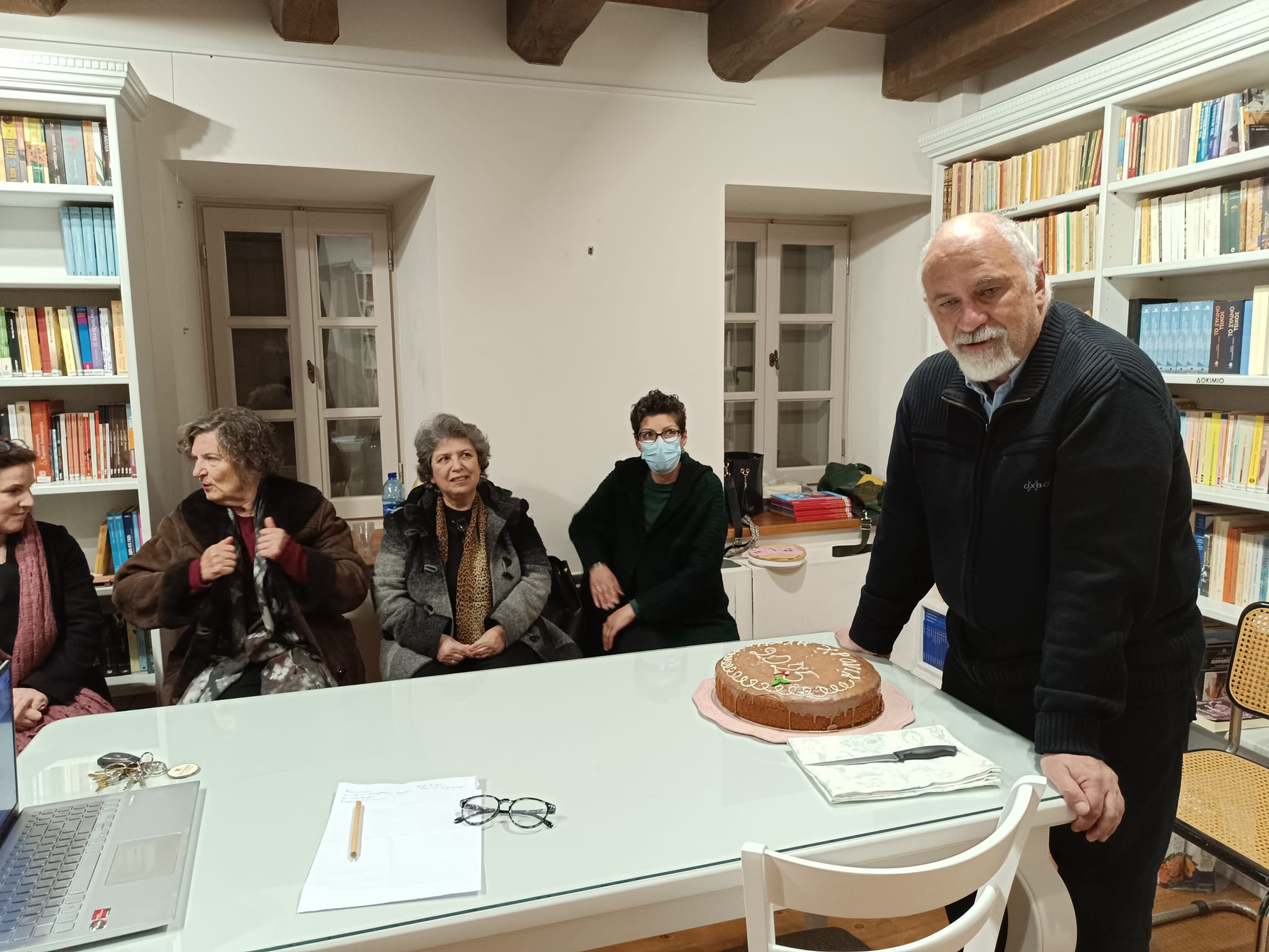 Η πρώτη συνάντηση για το νέο έτος, στην οποία η Λέσχη έκοψε και τη βασιλόπιτά της, έγινε την Κυριακή 19 Ιανουαρίου, στη βιβλιοθήκη της Μαρίας Λαμπαδαρίδου Πόθου, στο Σαχτούρειο, σε ένα ζεστό και εγκάρδιο κλίμα. Την πρώτη αυτή συνάντηση τίμησε με την παρουσία του ο Αντιδήμαρχος Πολιτισμού κ. Δημήτρης Μπουλώτης, ο οποίος συνεχάρη τα μέλη για την προσπάθειά τους και ευχήθηκε για το νέο έτος.