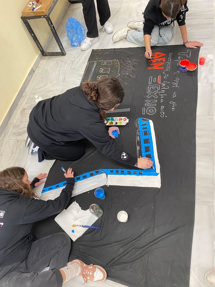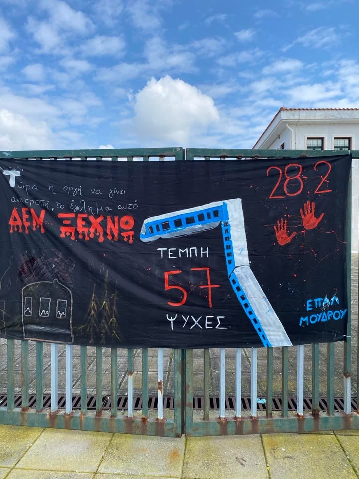 Στο πλαίσιο της πρωτοβουλίας τους, δημιούργησαν ένα συμβολικό πανό με μηνύματα μνήμης, λέξεις και σύμβολα που αποδίδουν τον πόνο και παράλληλα την ανάγκη για δικαιοσύνη και μεγαλύτερη ασφάλεια στα μέσα μαζικής μεταφοράς.