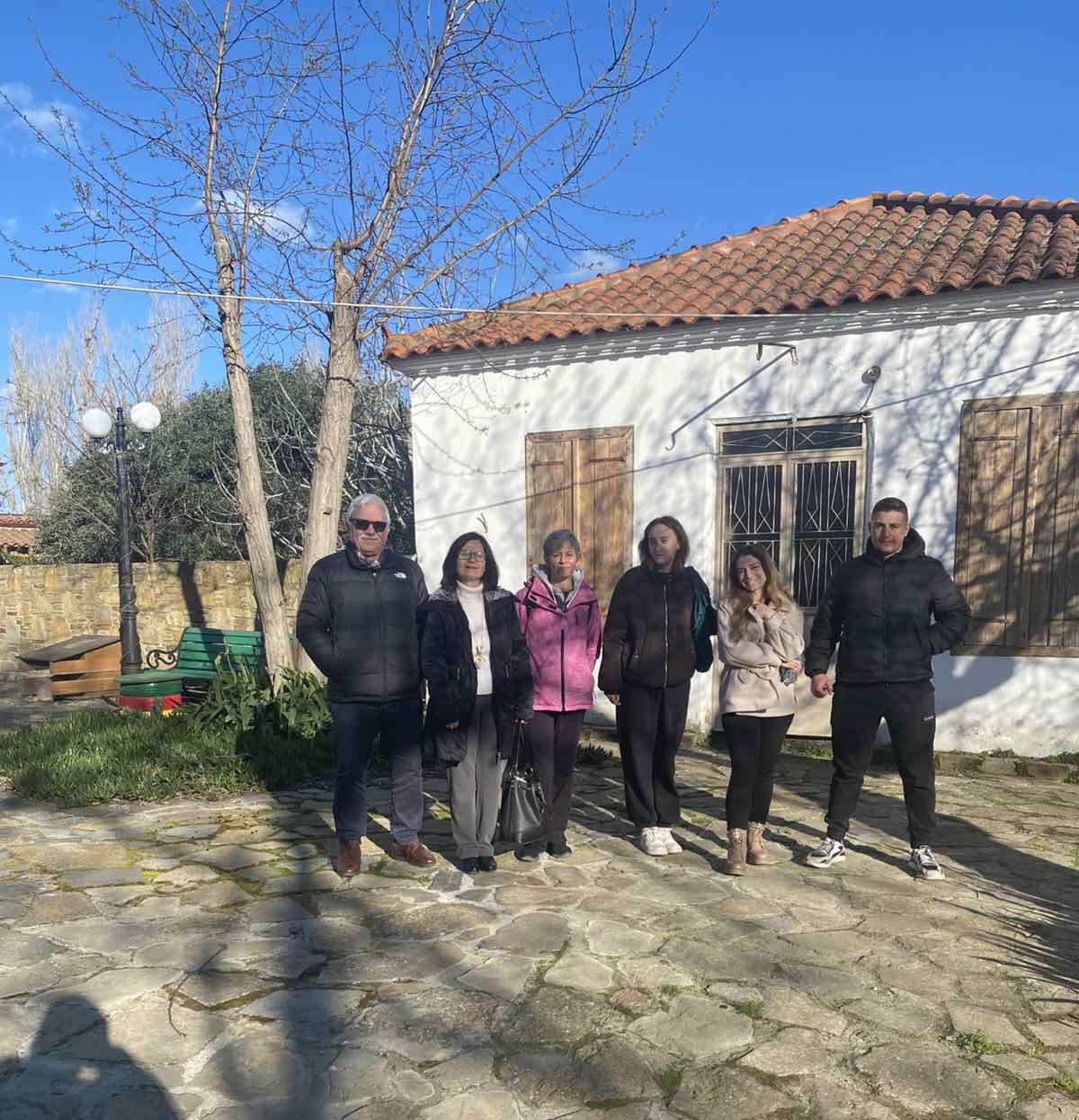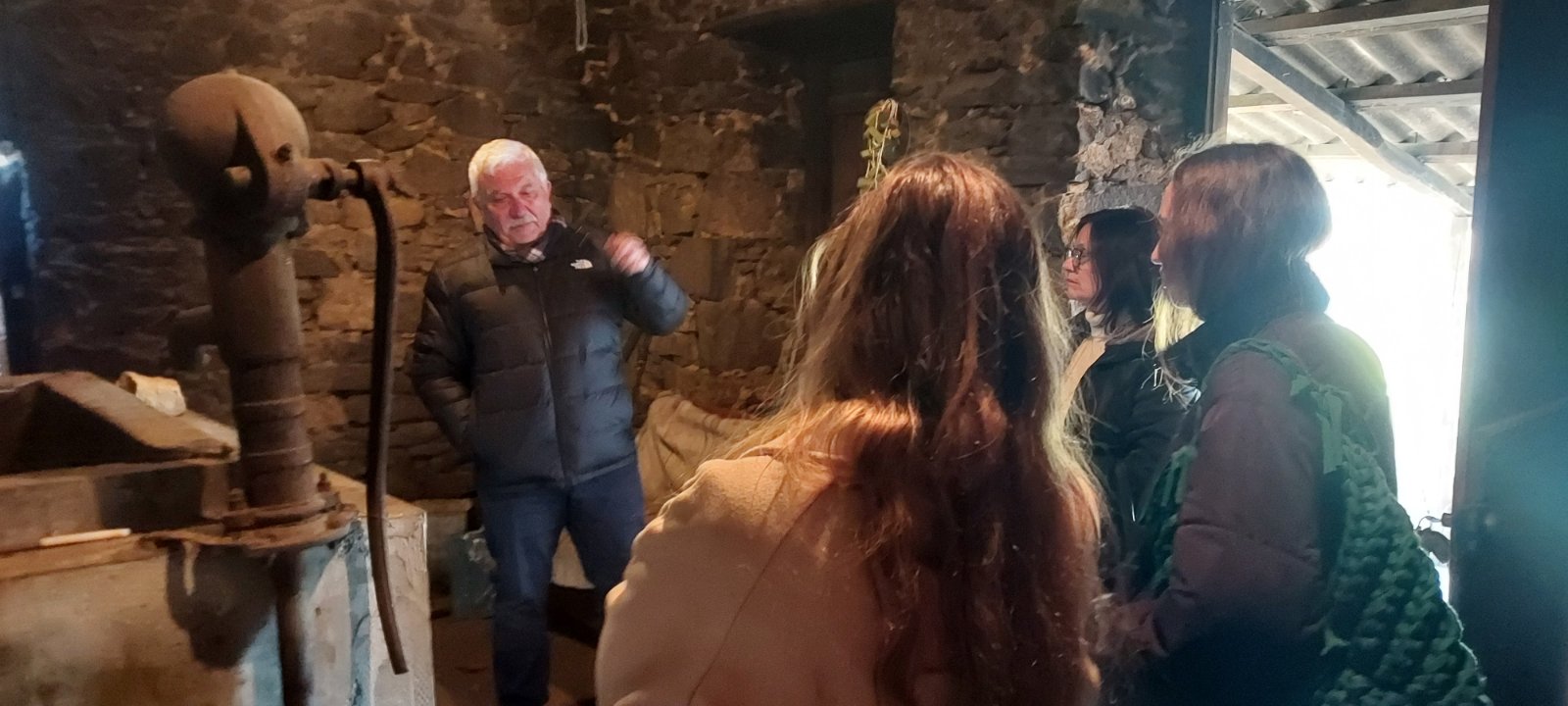 Τους εξήγησε βήμα βήμα τα στάδια της απόσταξης για την παραγωγή τσίπουρου με τον παραδοσιακό τρόπο, και τους ξενάγησε σε όλους τους χώρους όπου διατηρούνται οι μνήμες από την αγροτική και κοινωνική ζωή της Λημνιακής υπαίθρου.