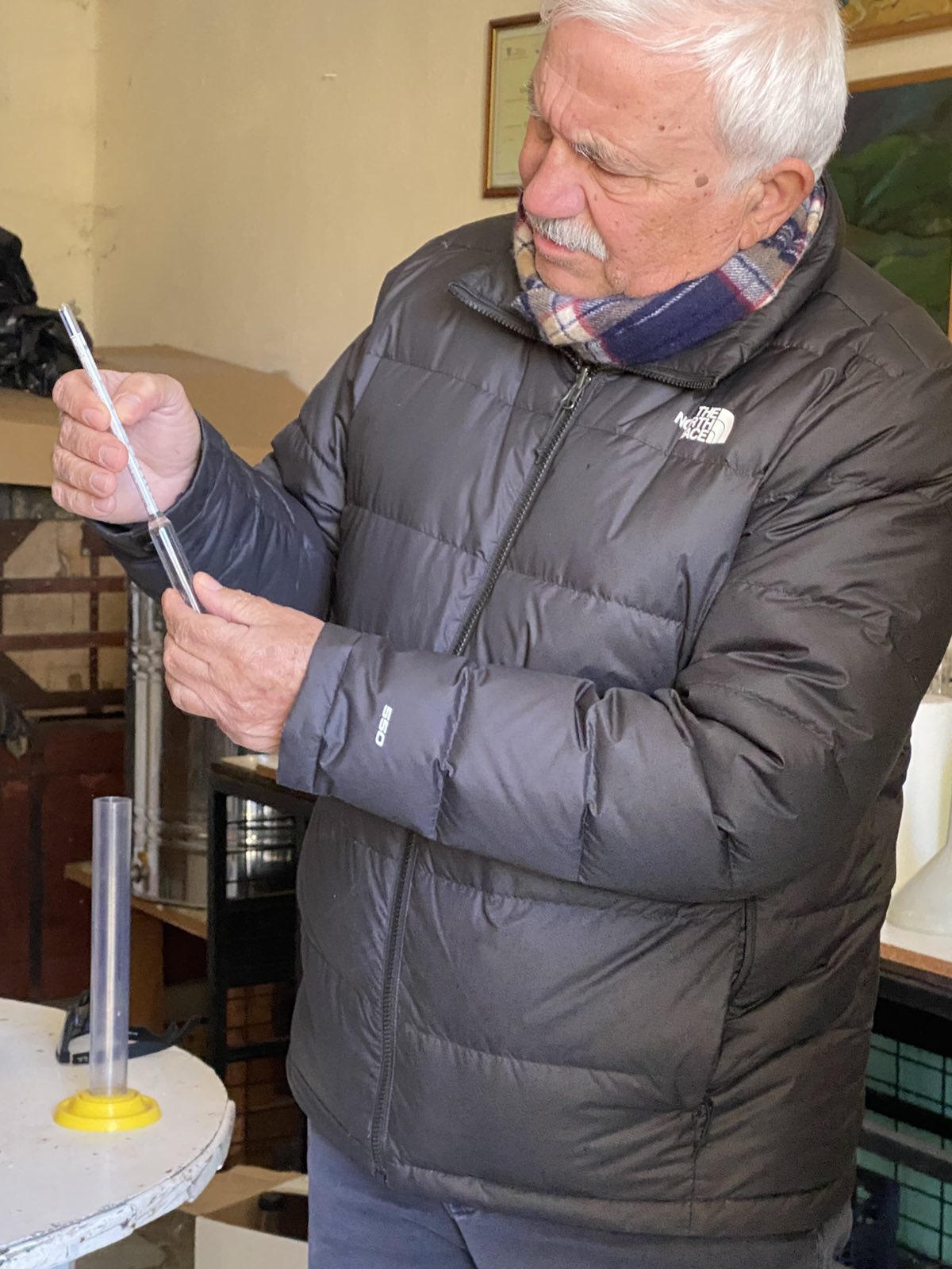 Ο κ.Κρεμμύδας οινοποιός και αποσταγματοποιός τρίτης γενιάς, τους μύησε στα μυστικα αυτής της παλαιότατης τέχνης αλλά και οικονομικοκοινωνικής δραστηριότητας που υπόκειται πλέον σε αυστηρή νομοθεσία αλλά χαίρει και μεγάλης αναγνώρισης από το κοινό.