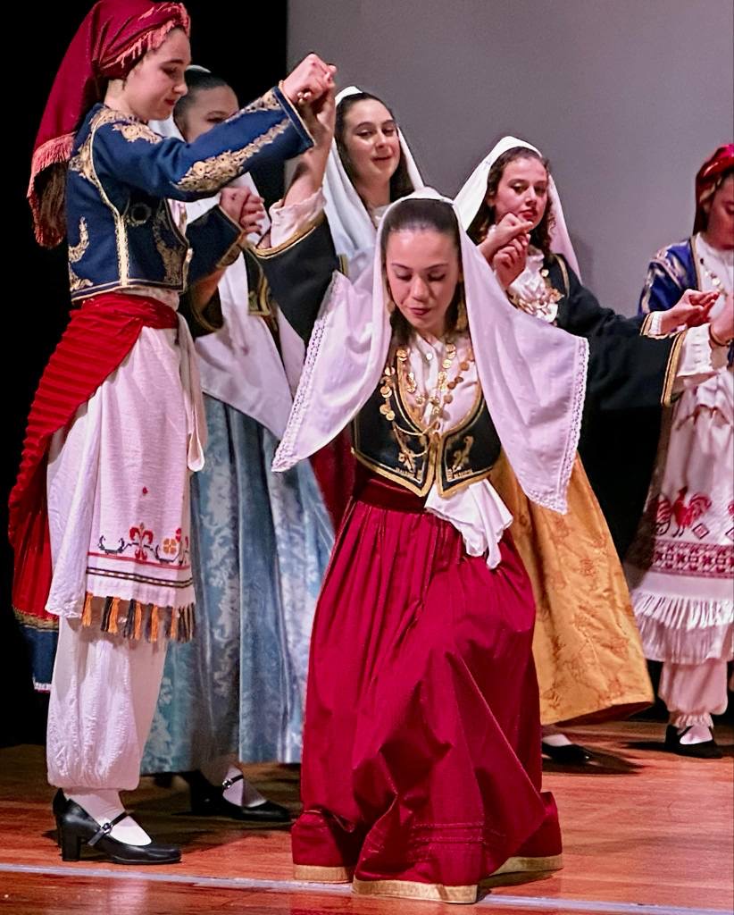 Τα κορίτσια του εφηβικού τμήματος Κρητικών χορών έκλεψαν τις εντυπώσεις με τη χάρη και την τεχνική τους απόδοση σε μια περιοχή ιδιαίτερης χορευτικής δυσκολίας όπως η Κρήτη.