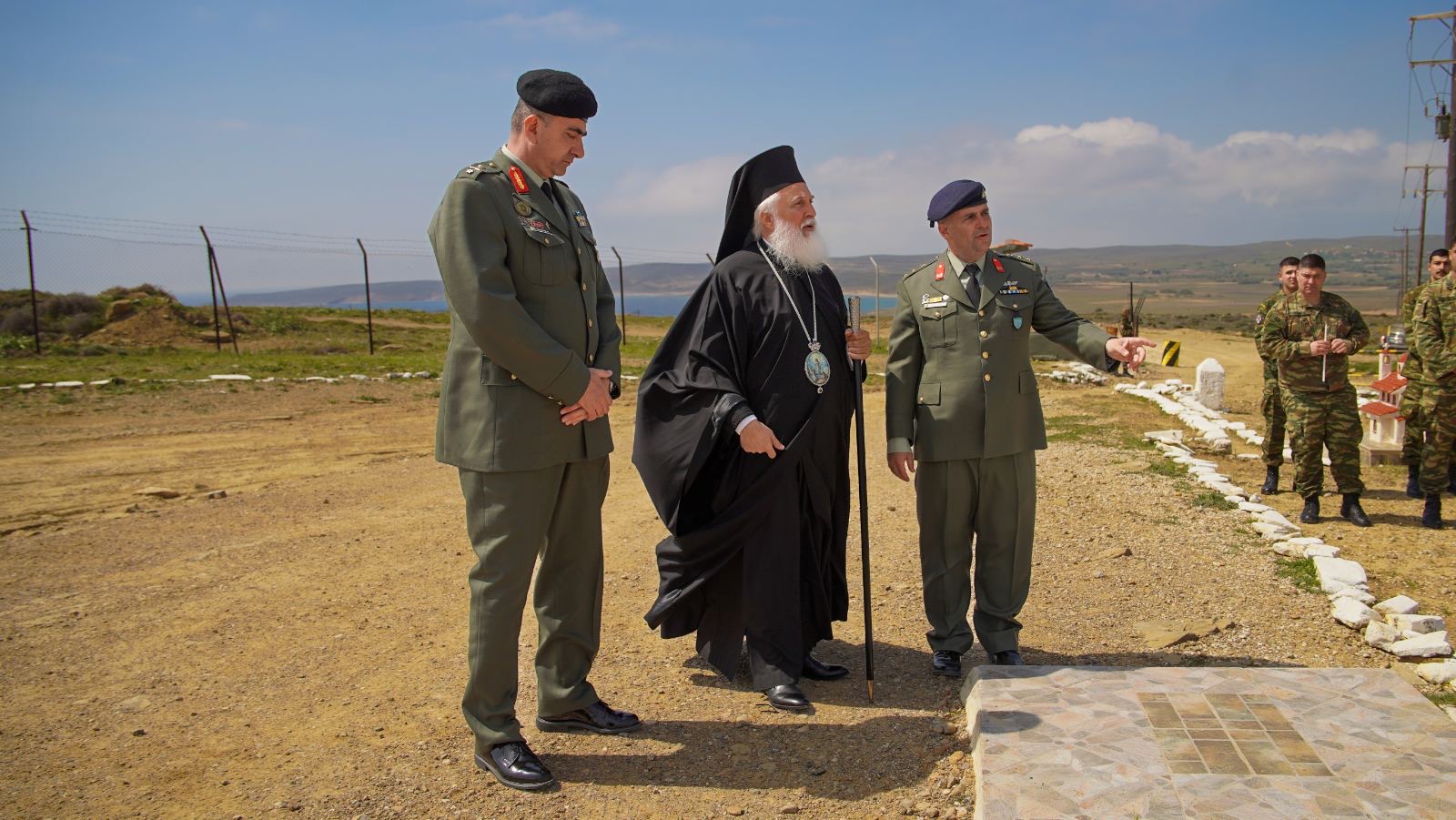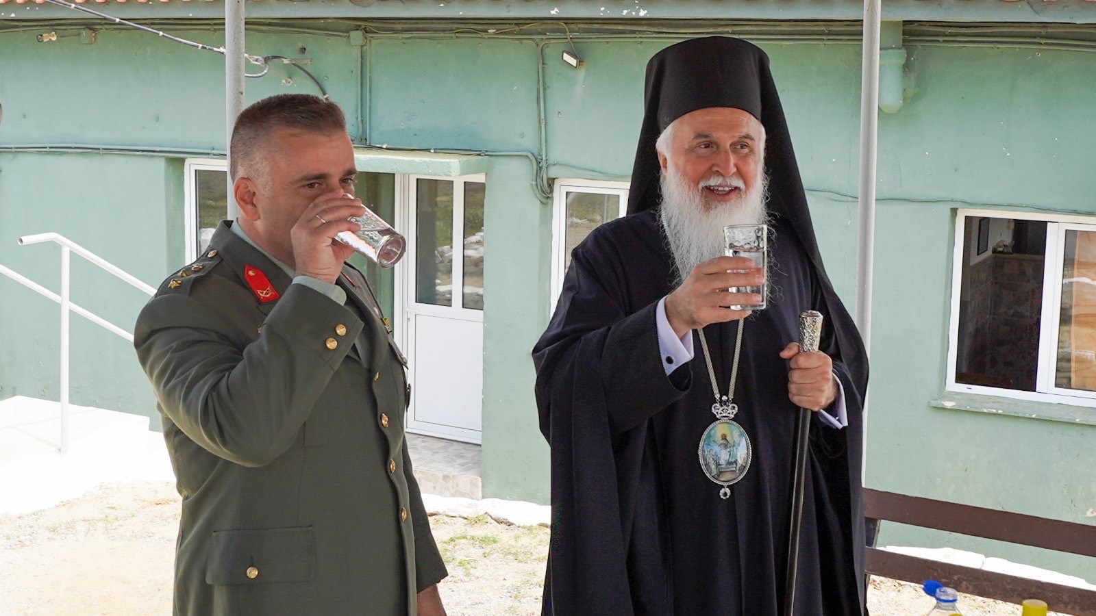 Η επίσκεψη ολοκληρώθηκε μέσα σε κλίμα συγκίνησης, αφού με τον Στρατιωτικό Ιερέα π. Νικόλαο Μπάντρα τελέστηκε μικρή ακολουθία της Ανάστασης για τους ακρίτες φαντάρους.
