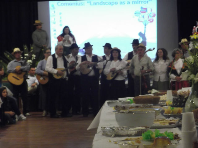 Σύμφωνα με το πρόγραμμα της συνάντησης, μετά από την επίσημη υποδοχή που επιφύλαξαν στις ξένες αποστολές μαθητές, διδακτικό και πολιτικό προσωπικό του σχολείου Escola Basica e Secundaria Sao Roque do Pico, οι μαθητές παρουσίασαν την εργασία που είχαν προετοιμάσει με θέμα: «Τοπικά έθιμα και παραδόσεις» σε όλους τους συμμετέχοντες, καθηγητές και μαθητές.