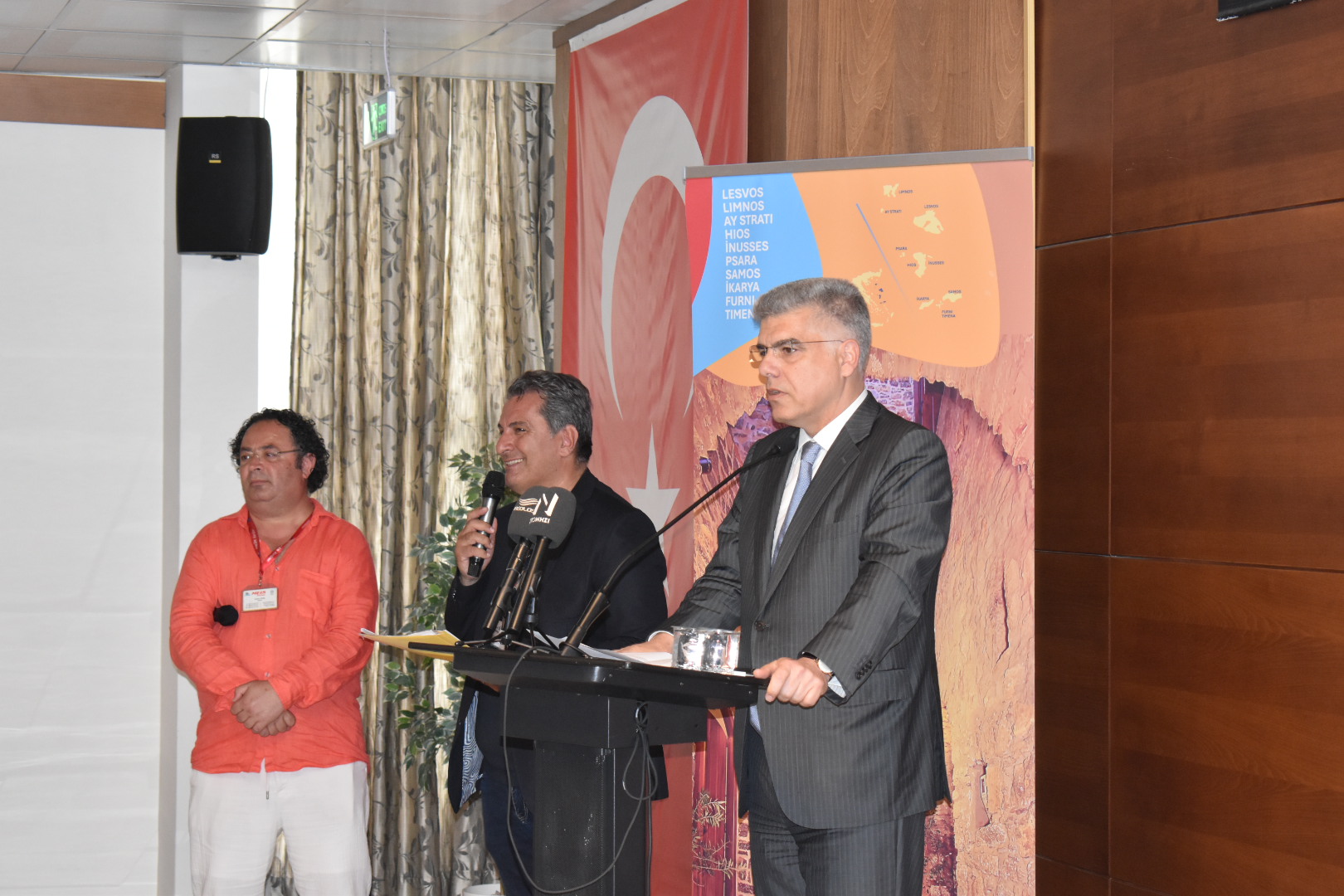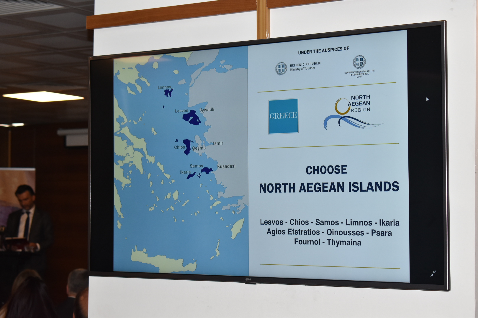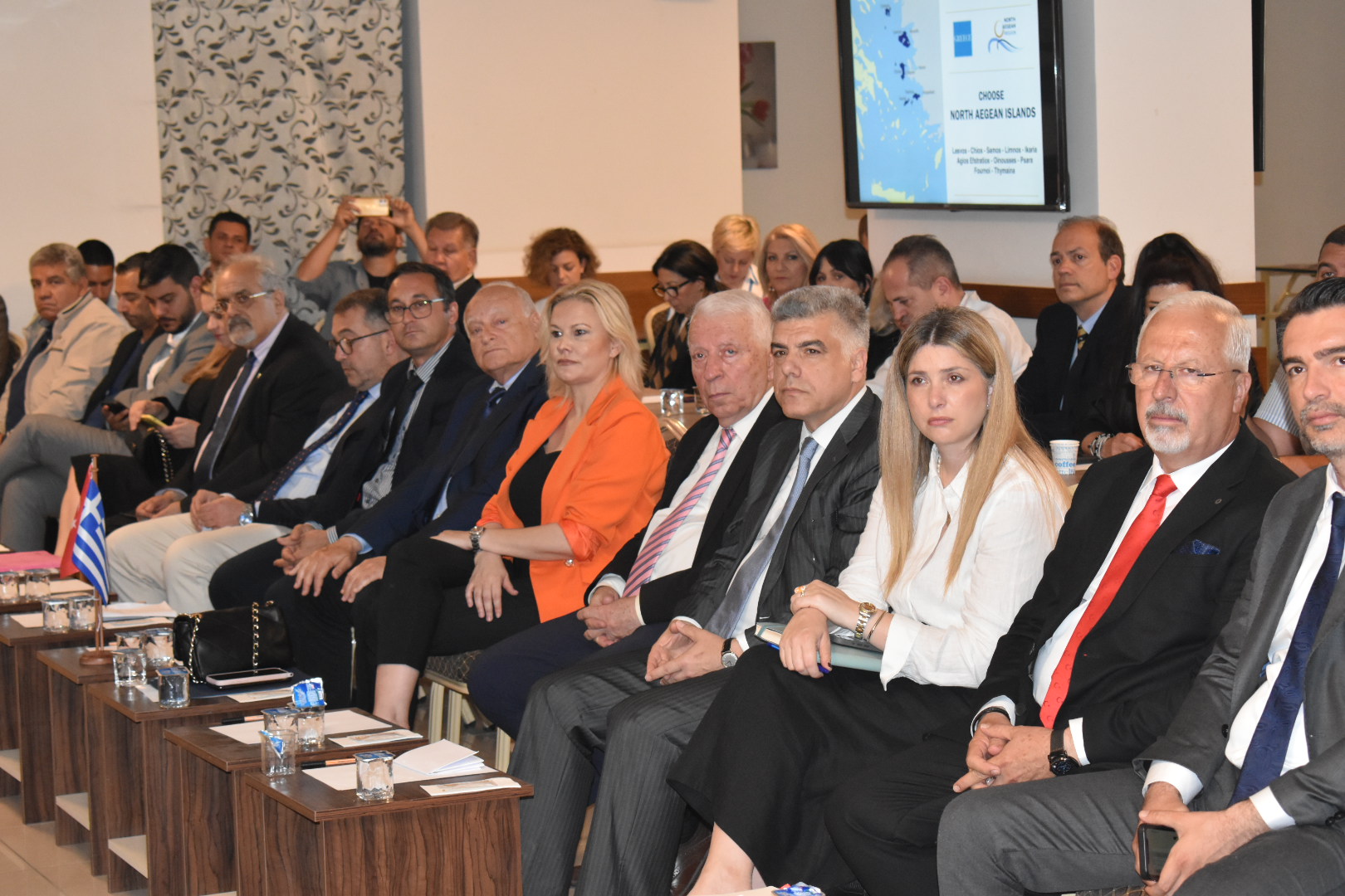 Με επικεφαλής τον Περιφερειάρχη Κωνσταντίνο Μουτζούρη, παρουσία της Γενικής Γραμματέως Τουρισμού, Βάσιας Κουτσούκου και του Έλληνα Πρόξενου στην Σμύρνη Αλέξανδρου Κώνστα, (η εκδήλωση τελούσε υπό την αιγίδα των Υπουργείων Τουρισμού και Εξωτερικών) η πολυπληθής αποστολή με την συμμετοχή εκπροσώπων από όλα τα νησιά του Βορείου Αιγαίου είχε την ευκαιρία να παρουσιάσει στο Αϊβαλί και στην Σμύρνη τα μοναδικά χαρακτηριστικά των νησιών μας και να ανοίξει δίαυλους επικοινωνίας, τουριστικών και επιχειρηματικών συνεργασιών με τους εκπροσώπους τουριστικών πρακτόρων των απέναντι παραλίων.