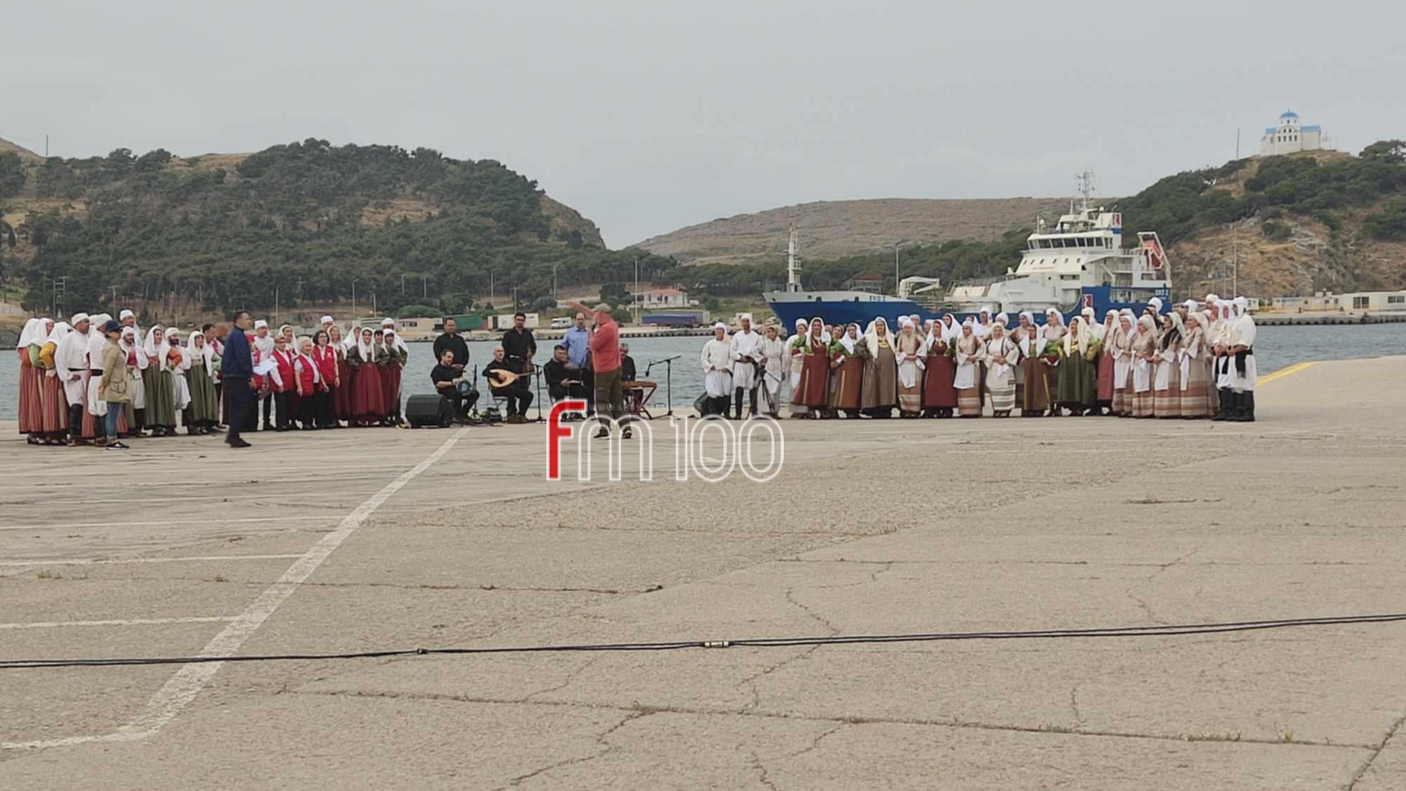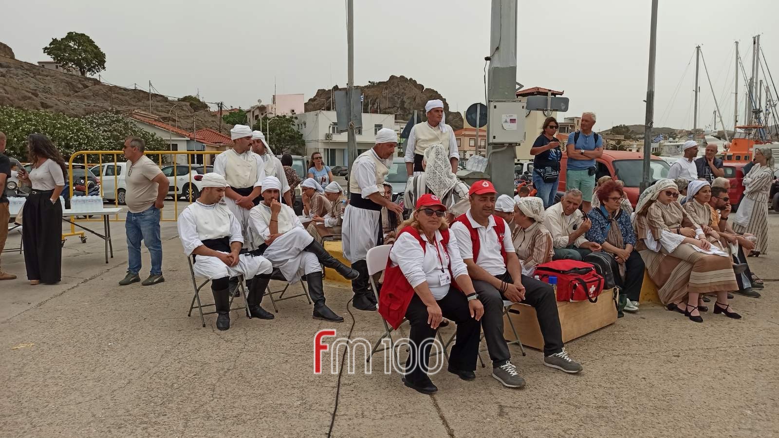 Η πλατεία του λιμανιού έχει μετατραπεί σε ένα μεγάλο λαϊκό πανηγύρι, και η παράδοση της Λήμνου βρίσκεται σε πρώτο πλάνο.