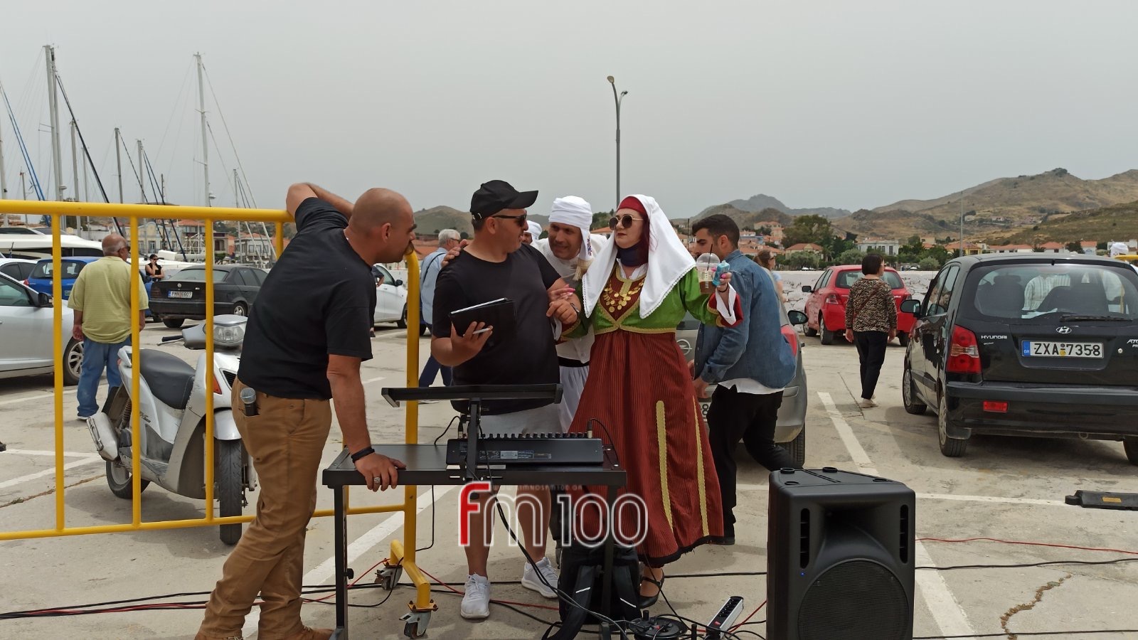 Αυτή την ώρα, στο παλιό λιμάνι της Μύρινας, η ατμόσφαιρα είναι πραγματικά γιορτινή. Χορευτικοί σύλλογοι από όλη τη Λήμνο δίνουν το «παρών» με παραδοσιακές φορεσιές και μουσικές, προσφέροντας μοναδικές εικόνες τις οποίες καταγράφουν οι κάμερες της εκπομπής.