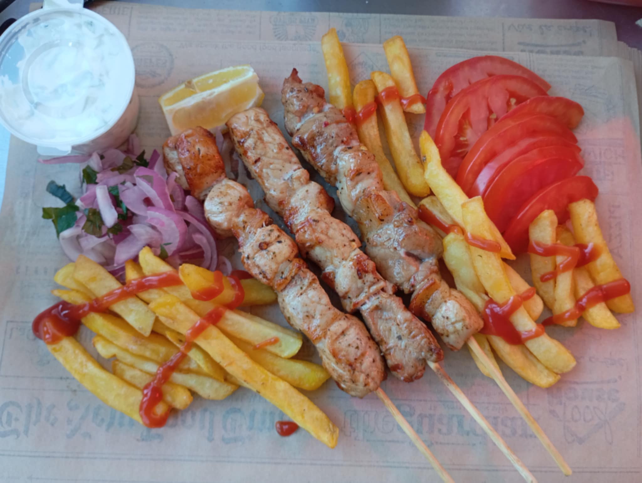 ✔ Με σουβλάκια χοιρινά & κοτόπουλο