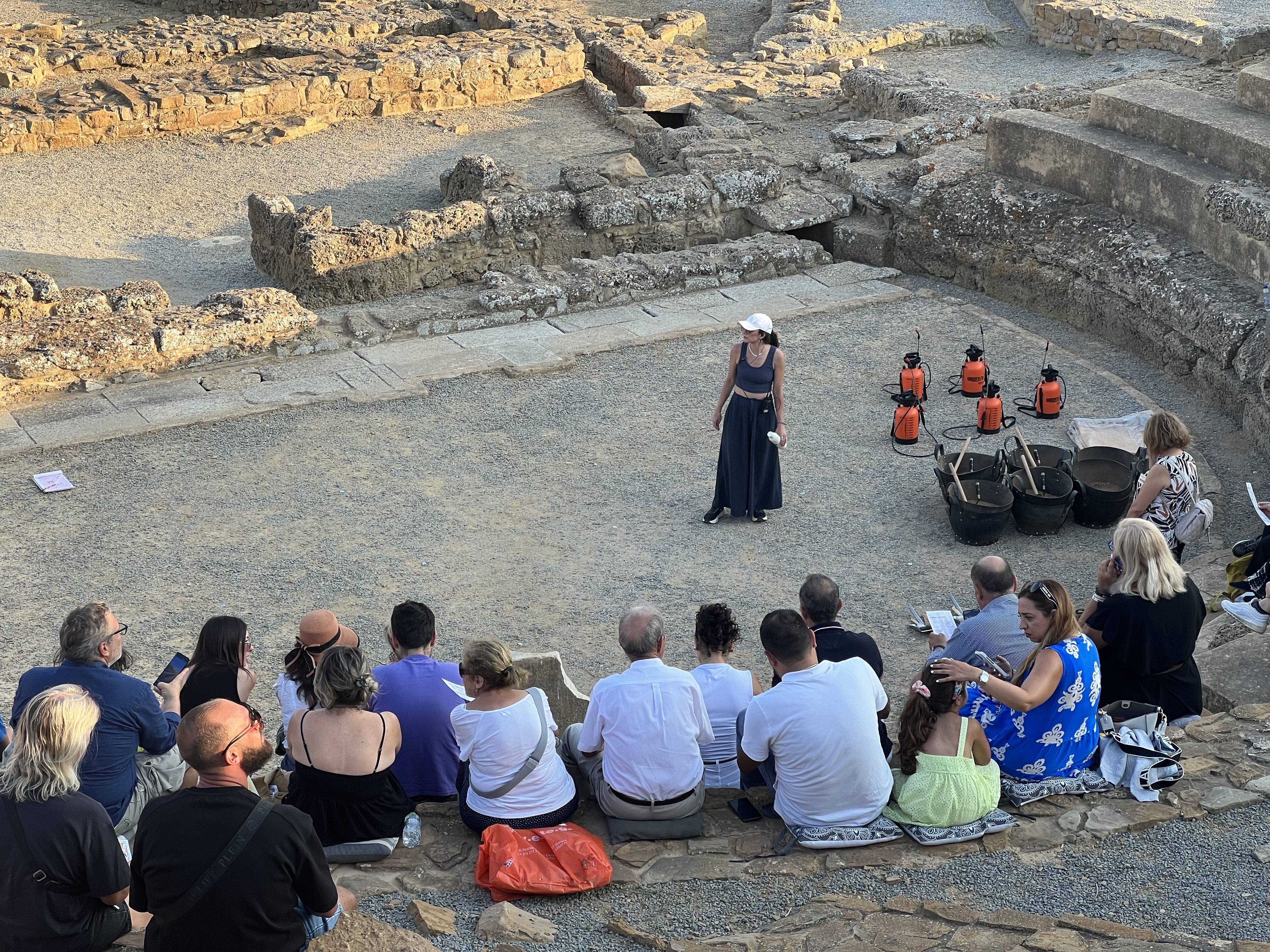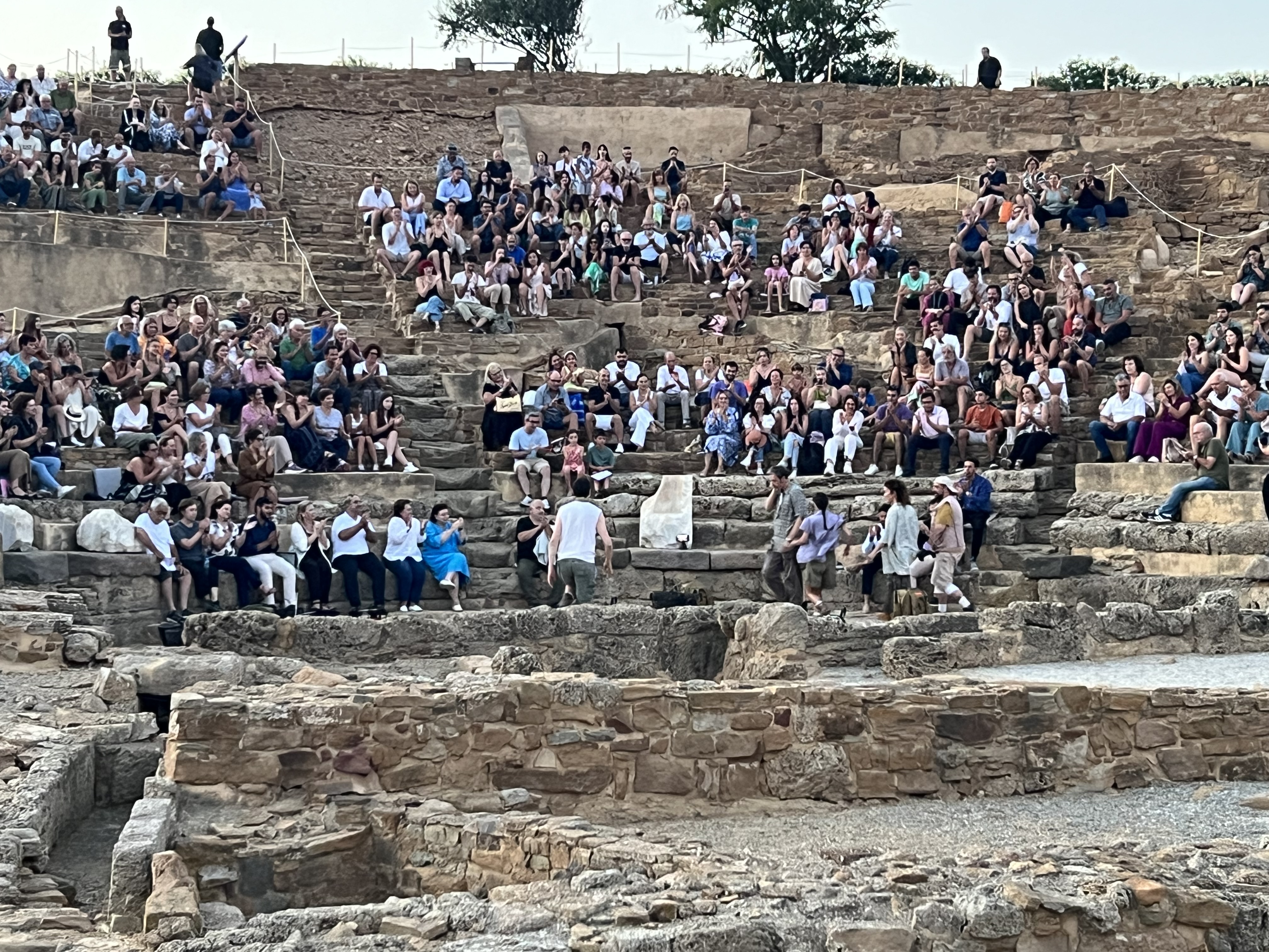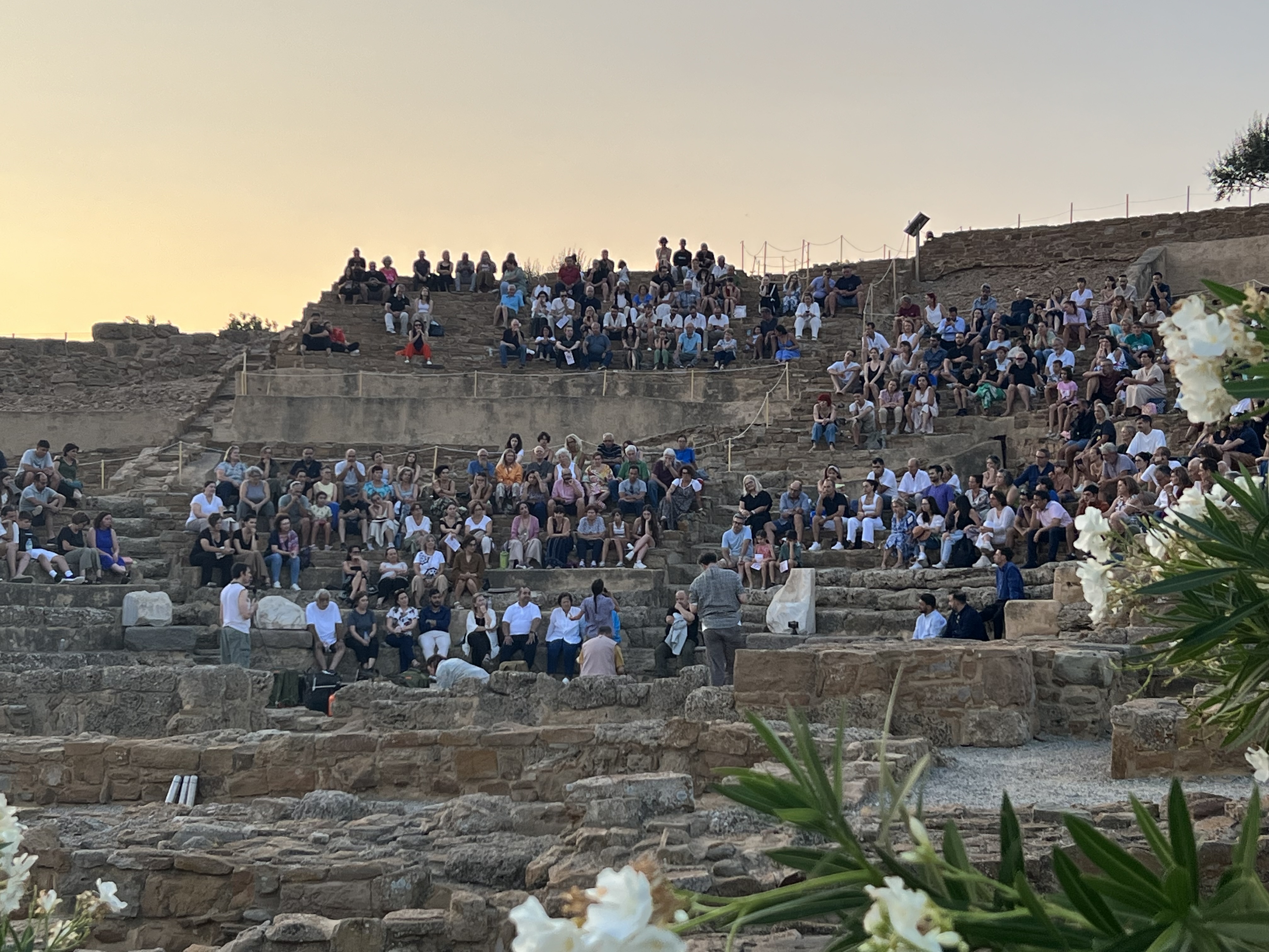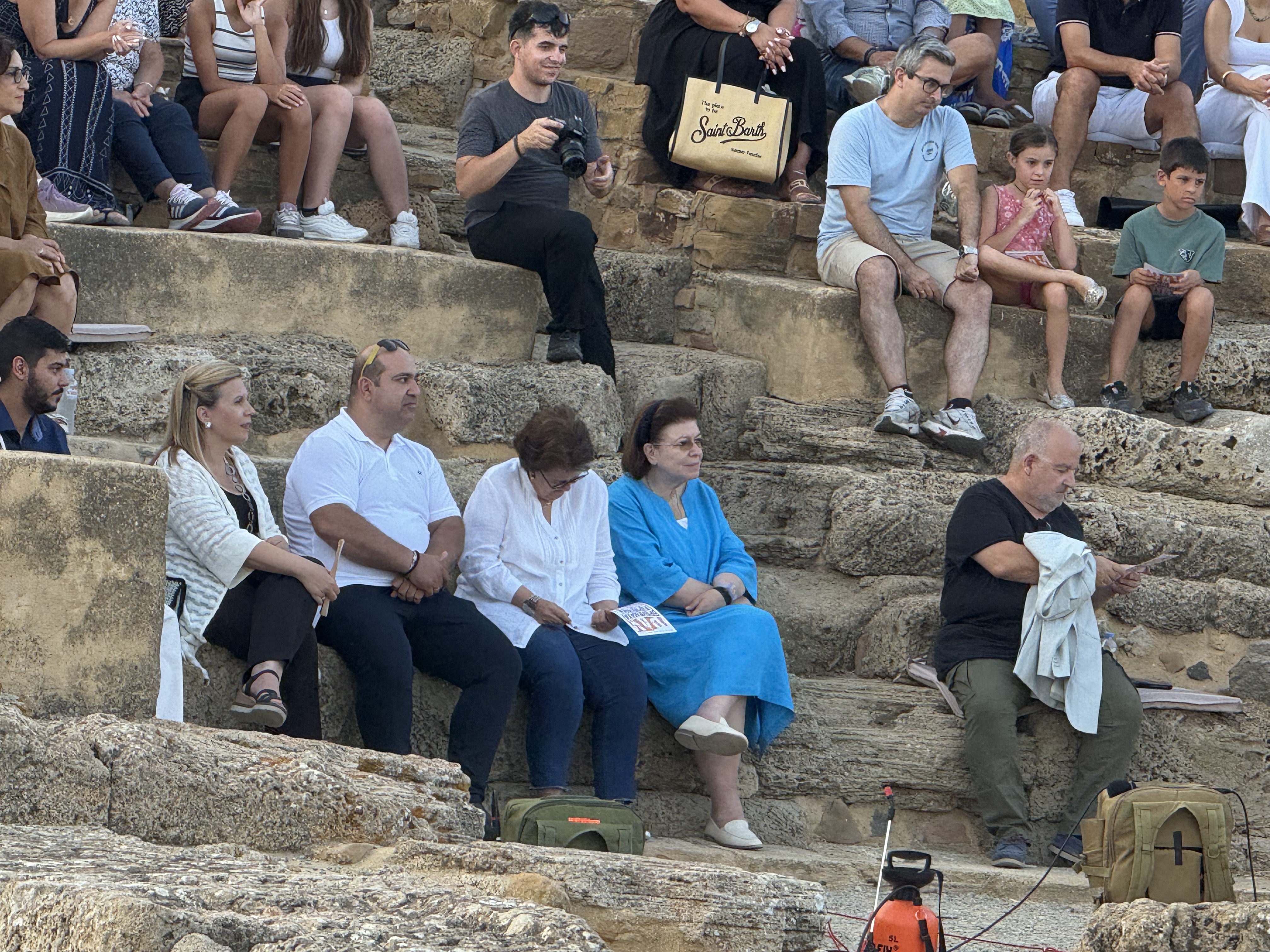 Το όλο σκηνικό, δημιούργησε και χάρισε στο κοινό μια μυσταγωγική εμπειρία στο ηλιοβασίλεμα, στο εμβληματικό αρχαίο θέατρο της Ηφαιστίας!