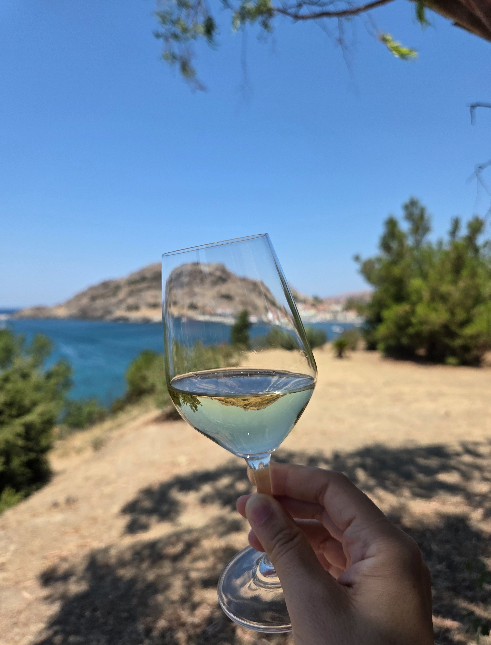 Η εμπειρία της γευσιγνωσίας συμπληρώνεται από τη μαγευτική θέα προς τη θάλασσα και το μεσαιωνικό κάστρο, δημιουργώντας το απόλυτο σκηνικό για μια μοναδική εμπειρία.